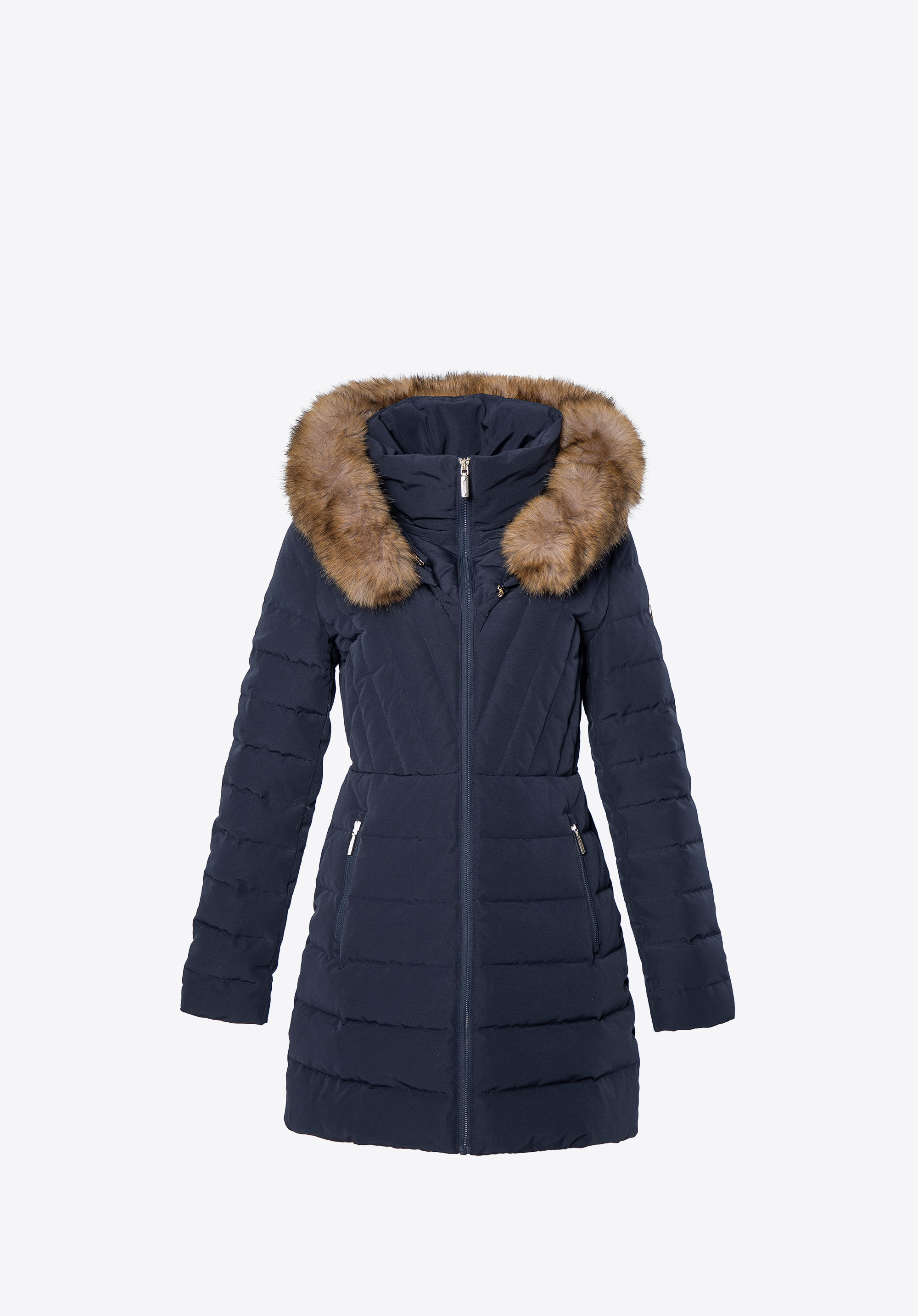 Ta damska kurtka puchowa łączy funkcjonalność z nowoczesnym krojem, który świetnie układa się na sylwetce. Wypełnienie z naturalnego puchu kaczego i pierza zapewnia wyjątkową izolację termiczną, utrzymując ciepło nawet w najzimniejsze dni, przy zachowaniu lekkości i komfortu noszenia. Kurtka wyposażona jest w praktyczne detale – solidny zamek, który skutecznie chroni przed chłodem, oraz odpinany kaptur ze ściągaczami i sztucznym futerkiem, który pozwala dopasować go do głowy i zatrzymać ciepło.