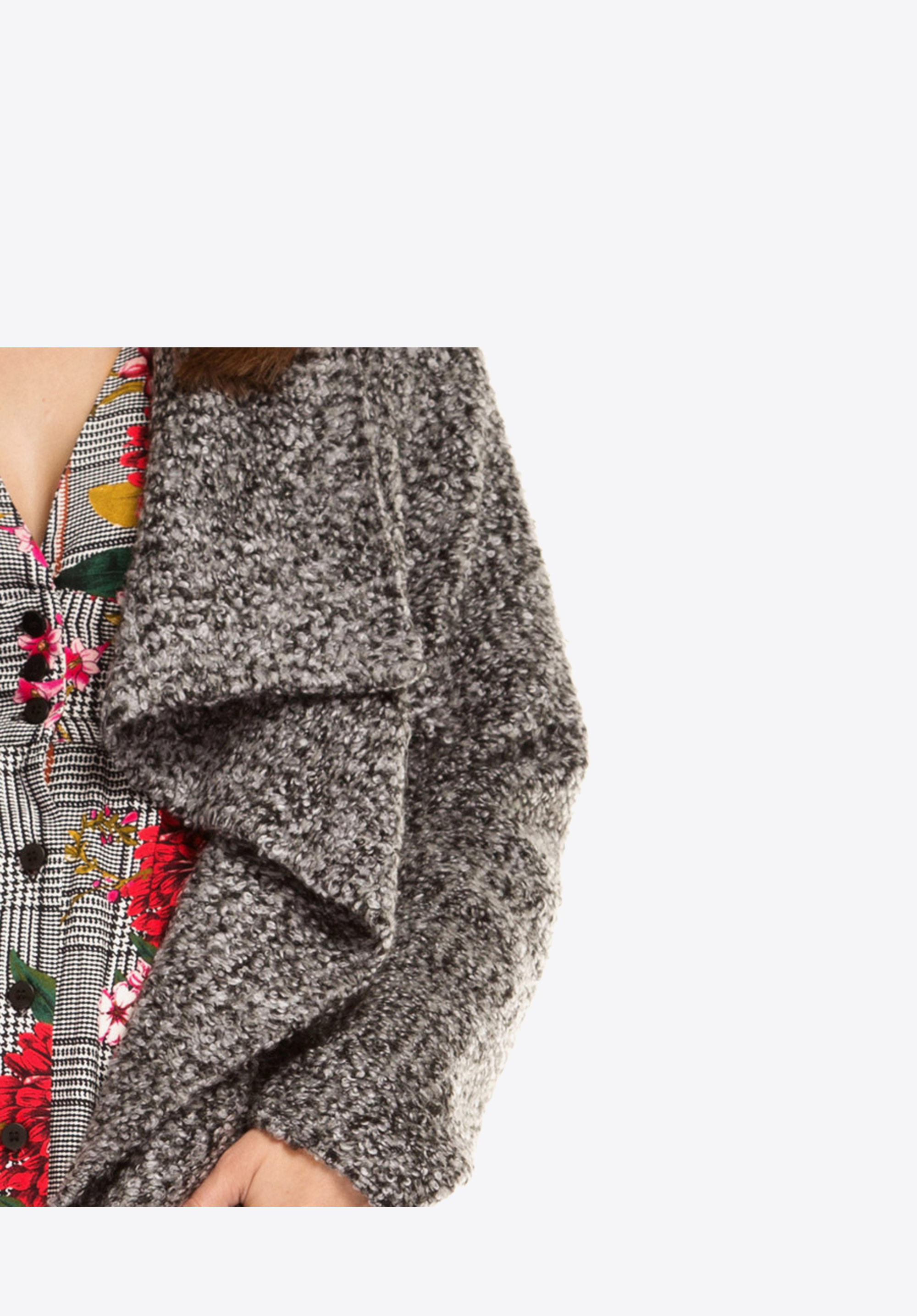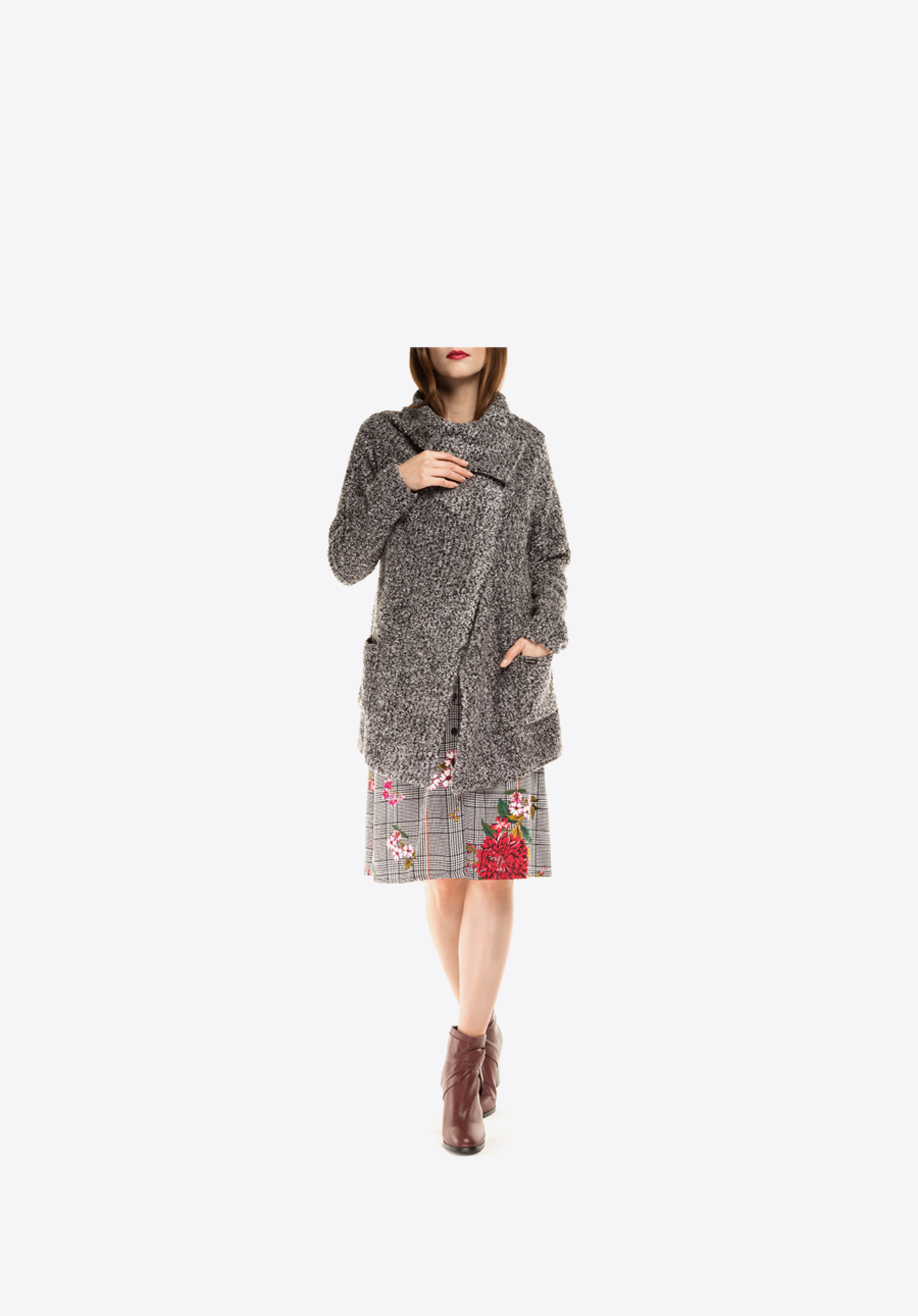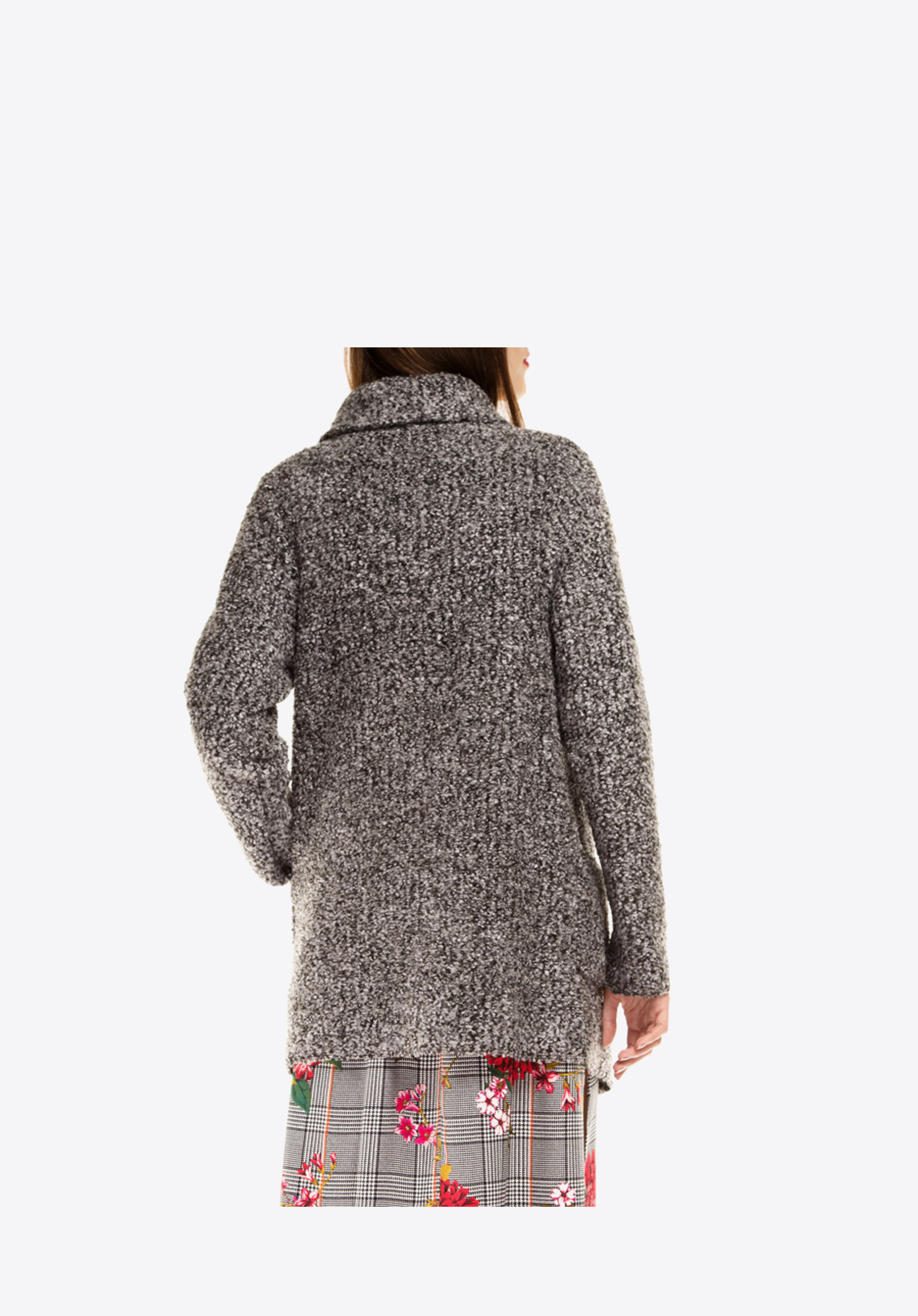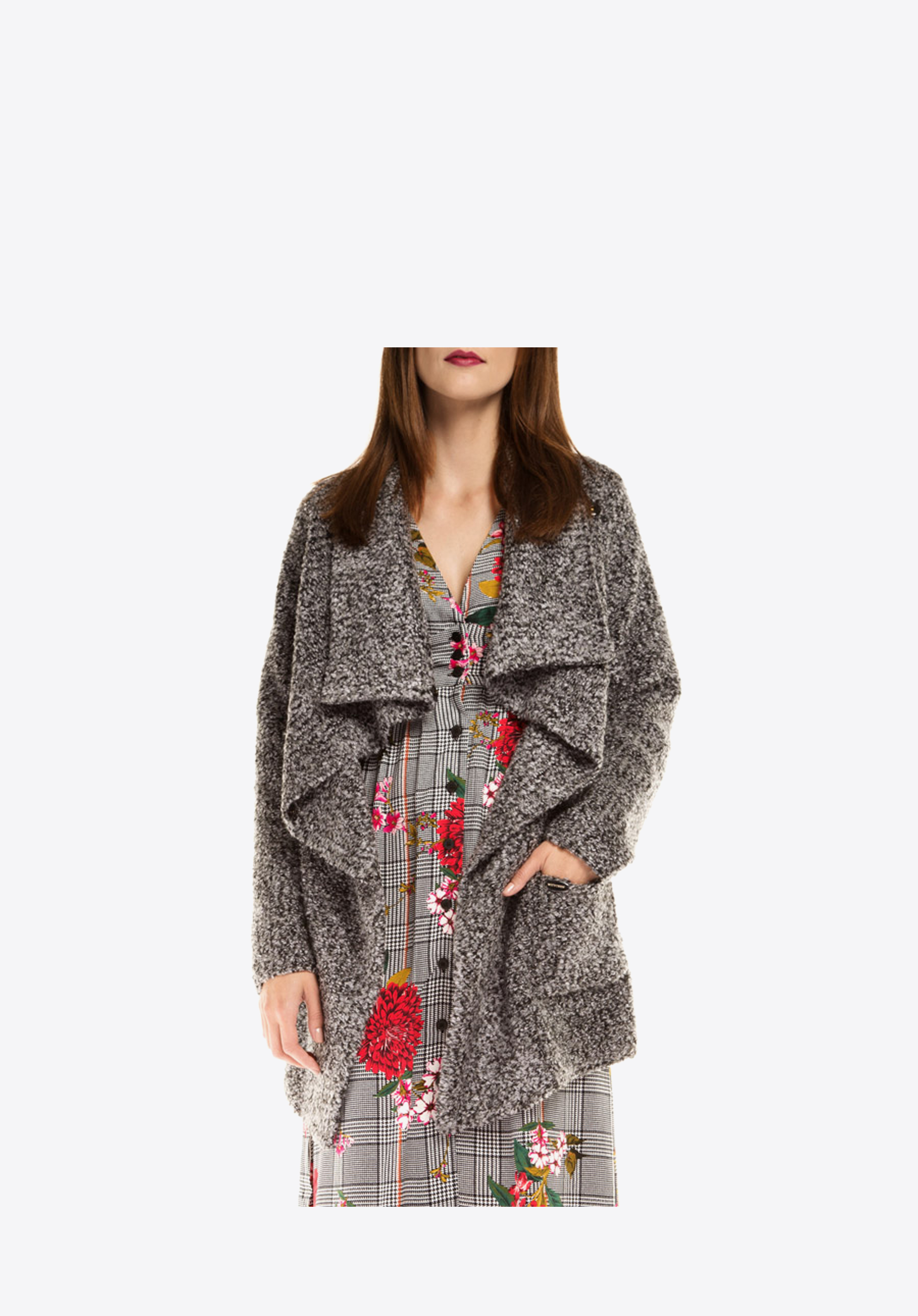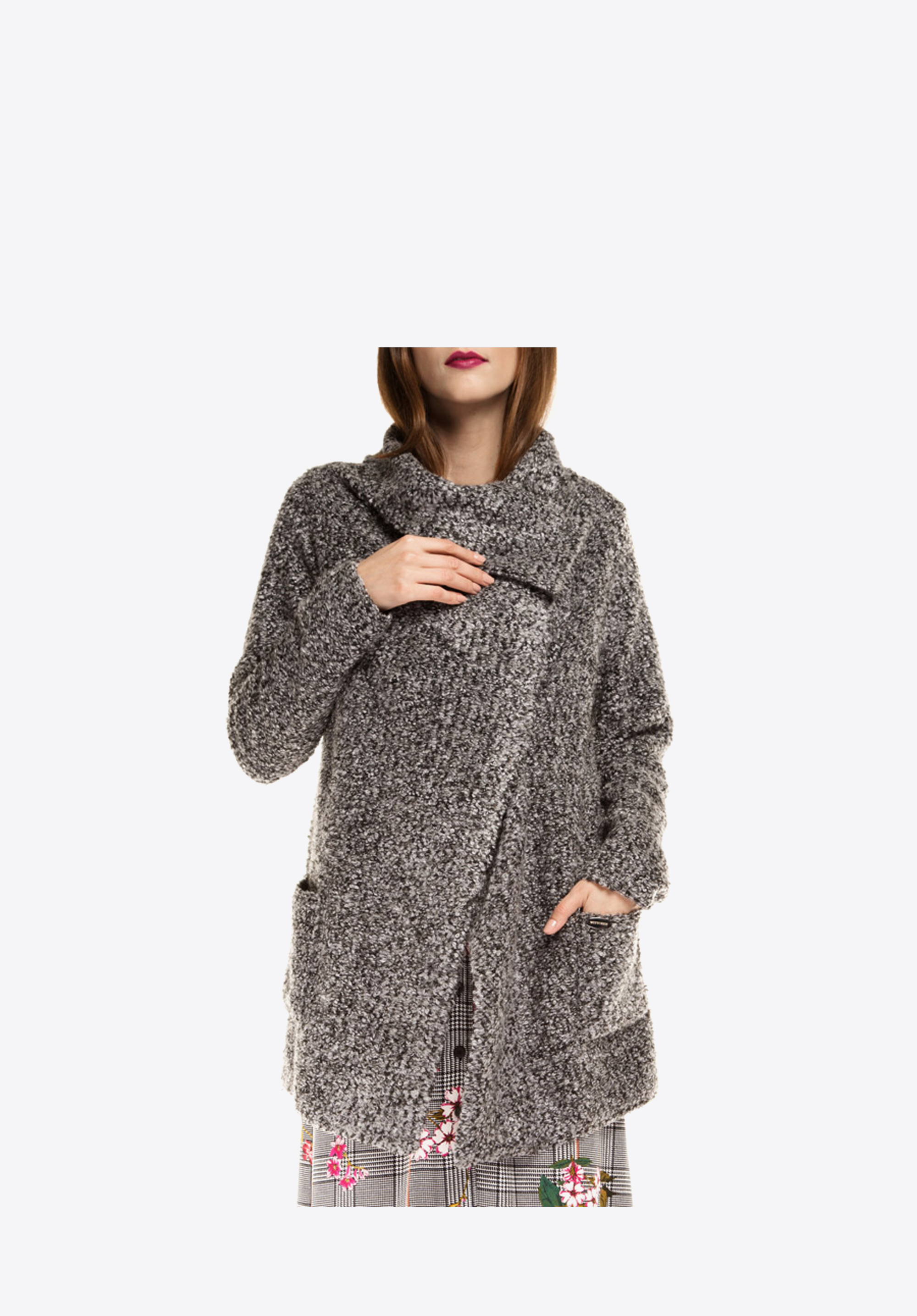 Płaszcz damski, typu narzutka, wykonany z bardzo miłego i ciepłego materiału. Luźny, nonszalancki fason sprawia, że jest on niezwykle oryginalnym okryciem wierzchnim, który ożywi każdą damską stylizację oraz doda jej casualowego charakteru. Kobiecy krój z pewnością przypadnie do gustu wielbicielkom najświeższych modowych trendów.
