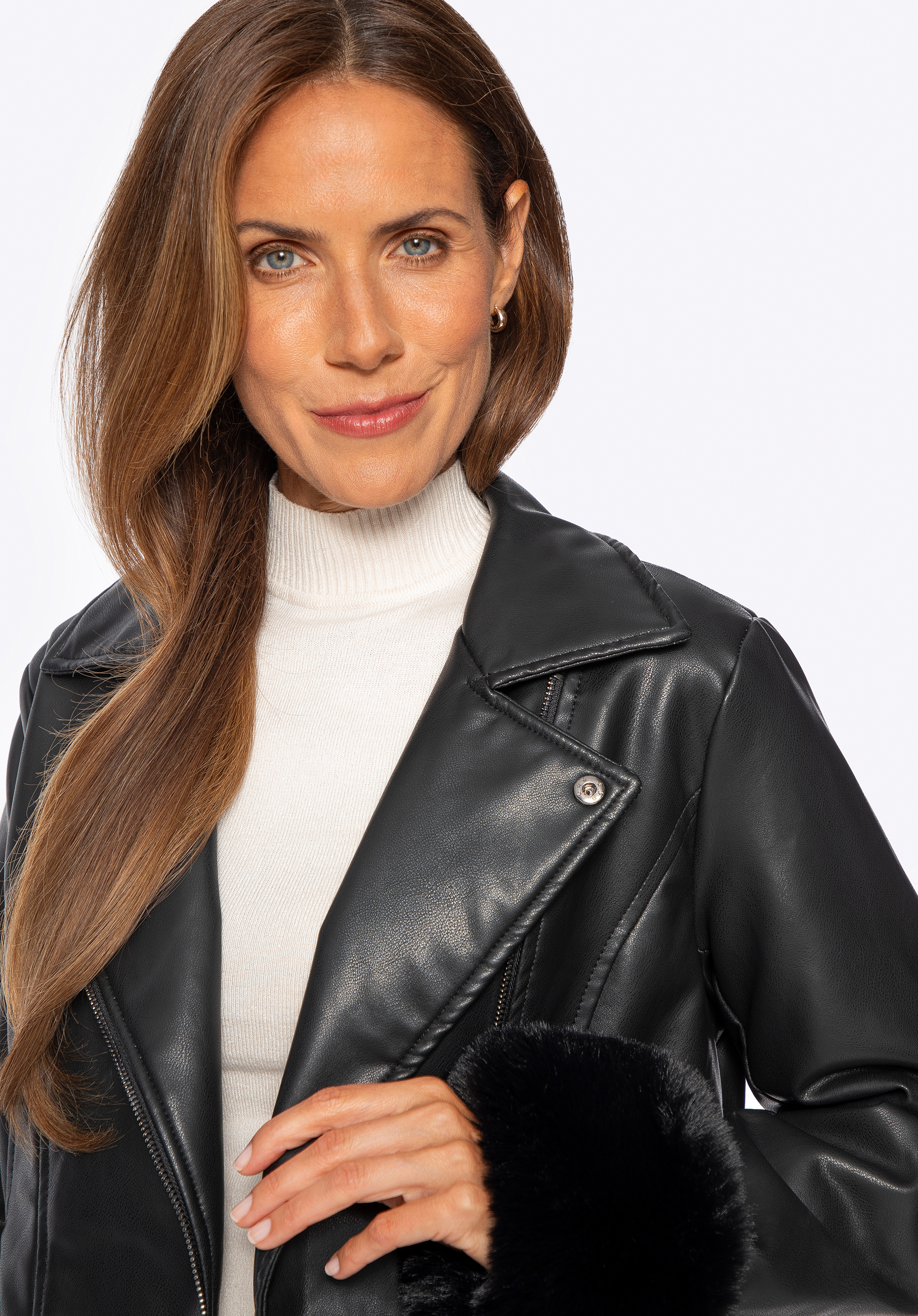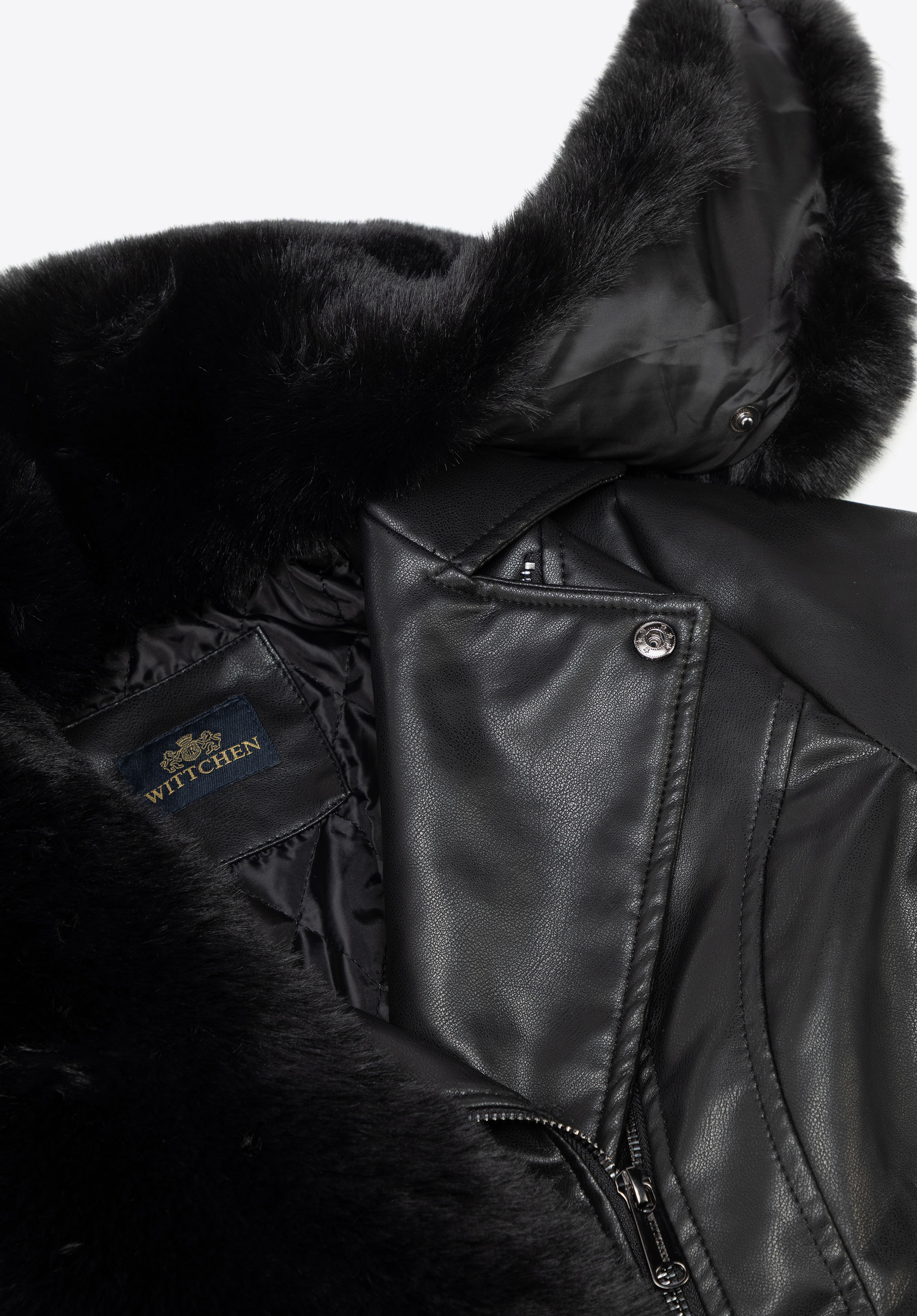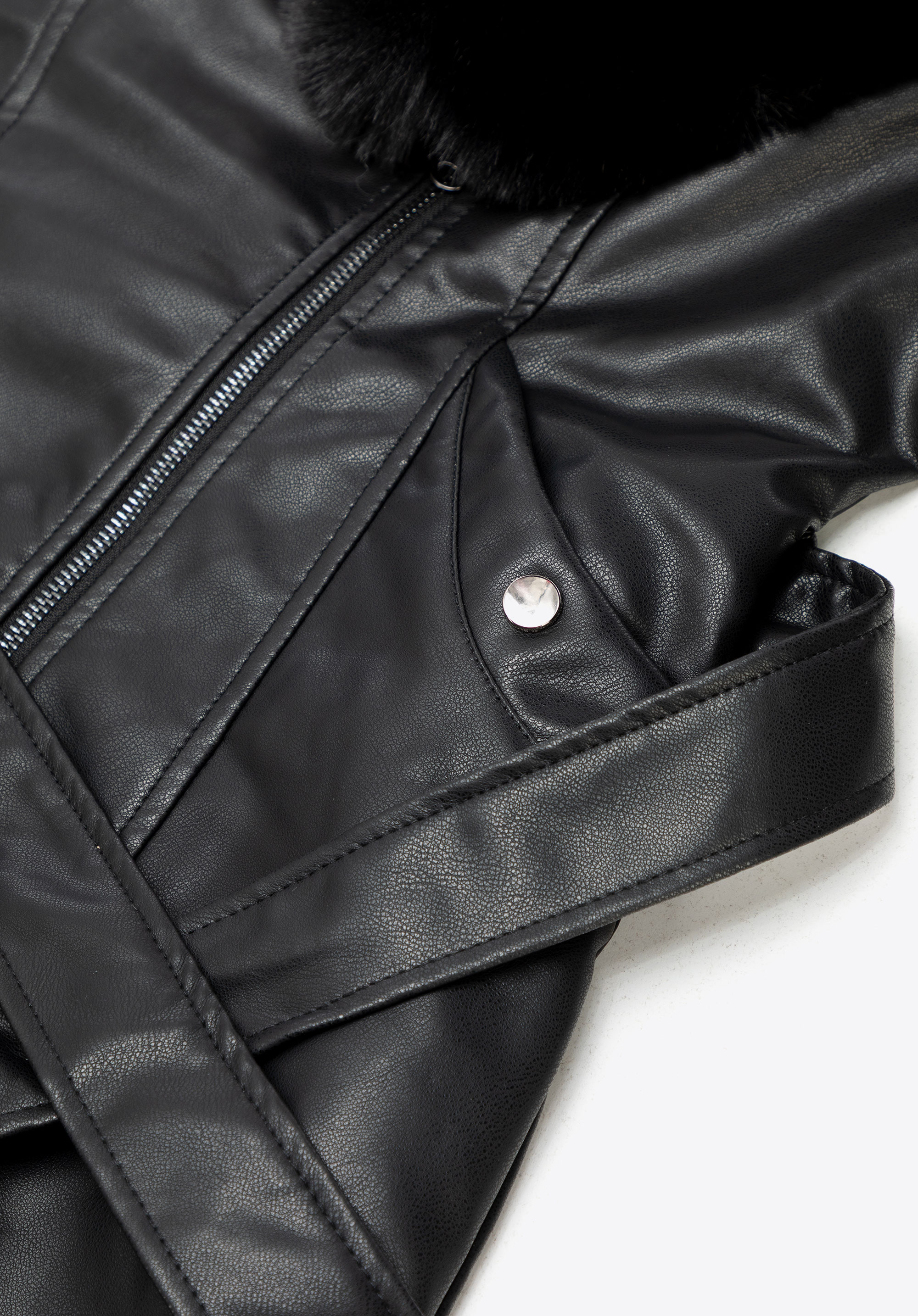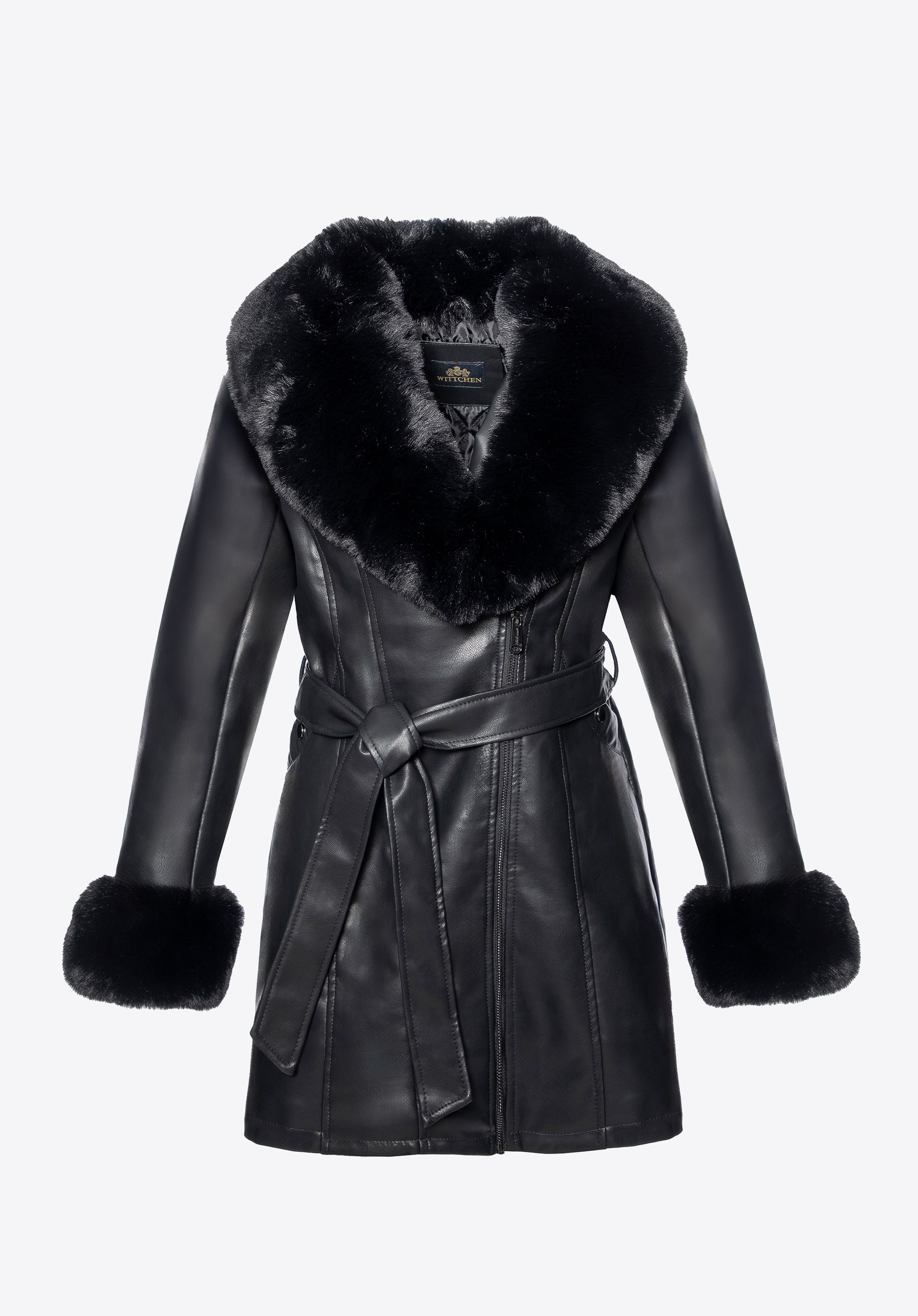 Elegancja z pazurem – płaszcz z ekoskóry z futerkiem