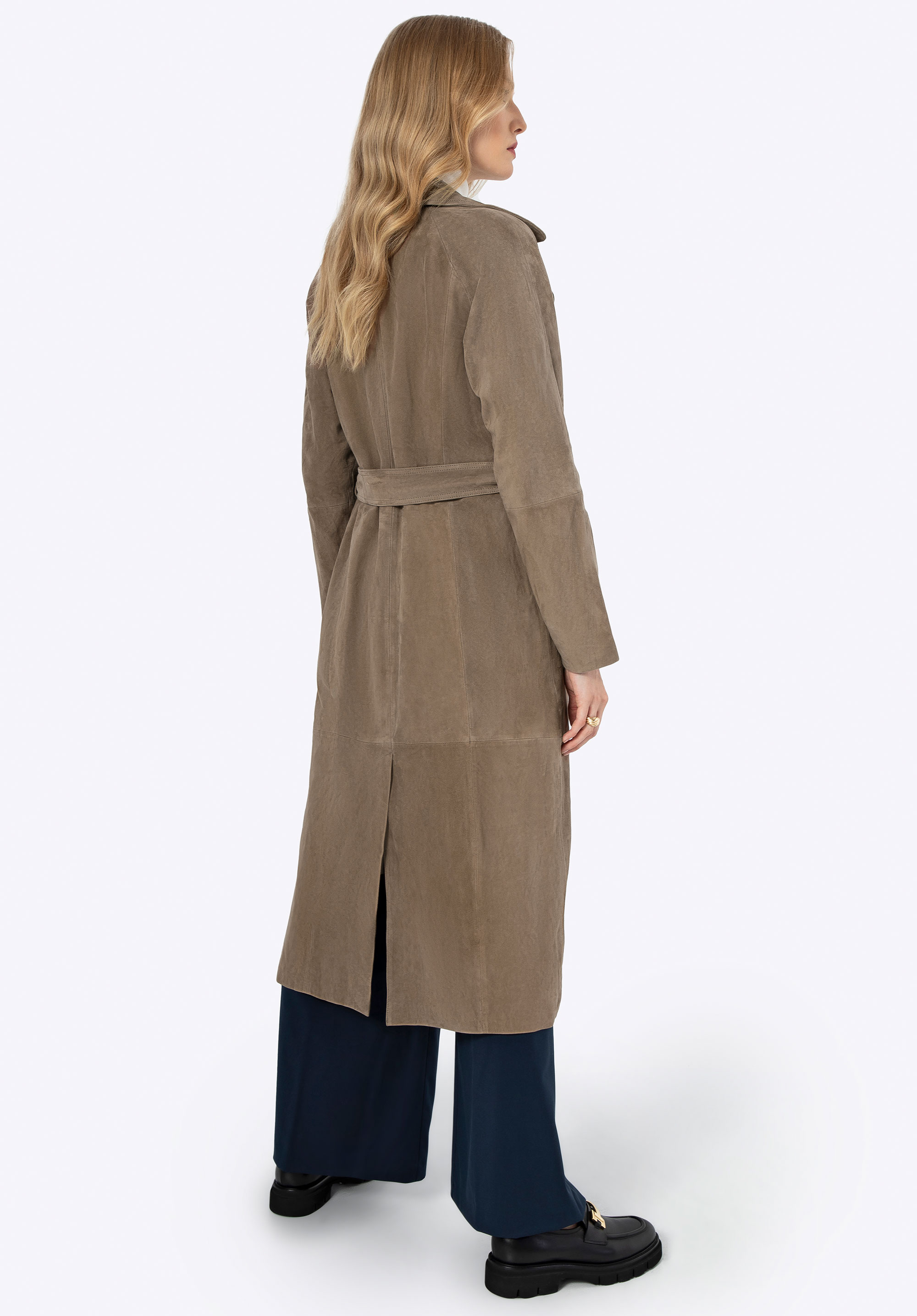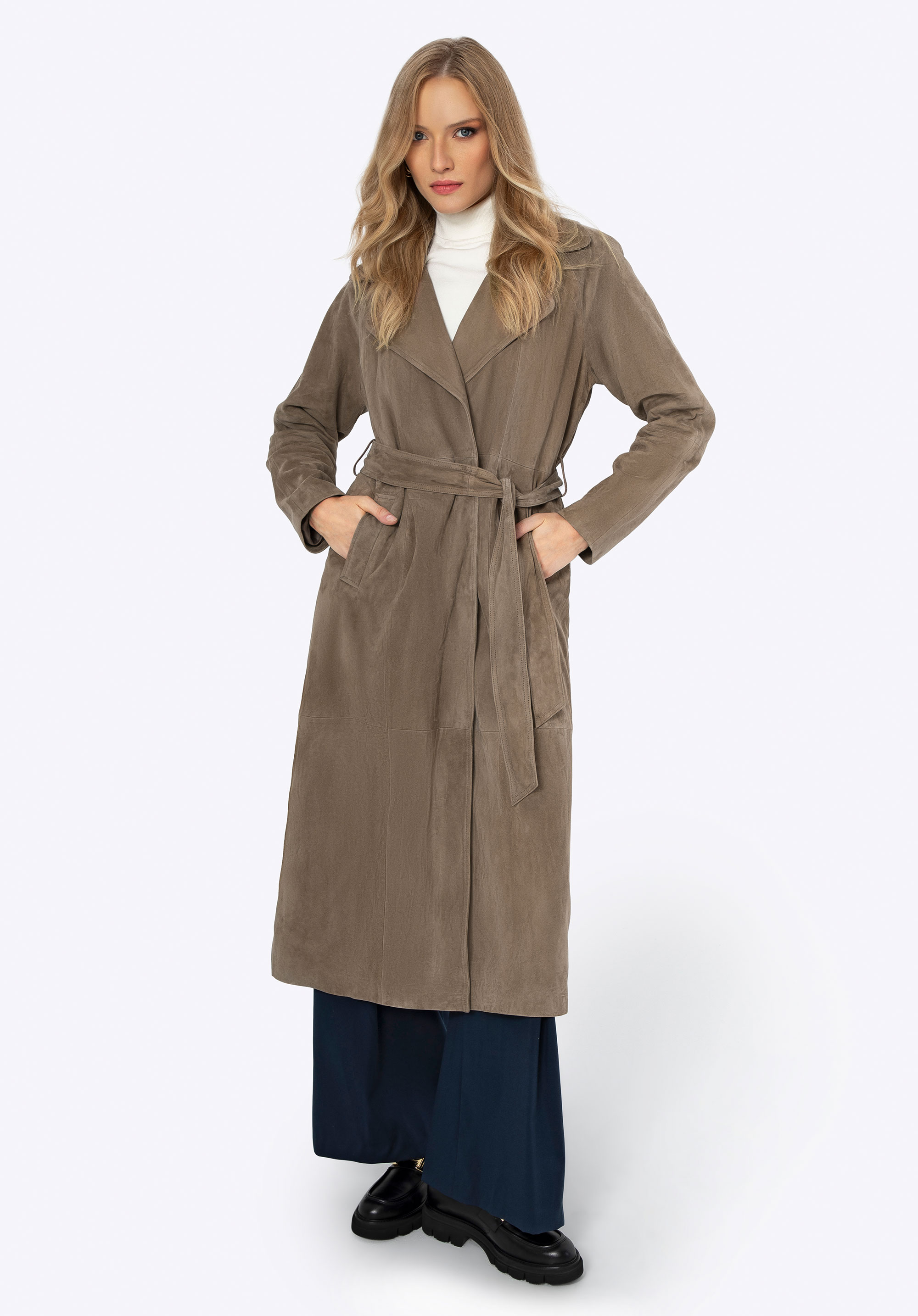 Odkryj nasz wyjątkowy płaszcz wykonany z najwyższej jakości skóry naturalnej. To esencja klasyki w nowoczesnym wydaniu, która doda szyku każdej Twojej stylizacji. Płaszcz ma prosty fason, który emanuje elegancją w swoim minimalizmie, idealny do szykownych zestawień na co dzień oraz na specjalne okazje. Ten płaszcz jest nie tylko stylowy, ale również doskonale podkreśla Twoją sylwetkę dzięki paskowi w talii. Wykładany kołnierz dodaje mu klasycznego uroku, podczas gdy dwie głębokie kieszenie zapewniają miejsce na drobiazgi, które chcesz mieć zawsze pod ręką. Dodatkowo rozporek z zakładką z tyłu sprawia, że jest niezwykle wygodny i swobodny w noszeniu.