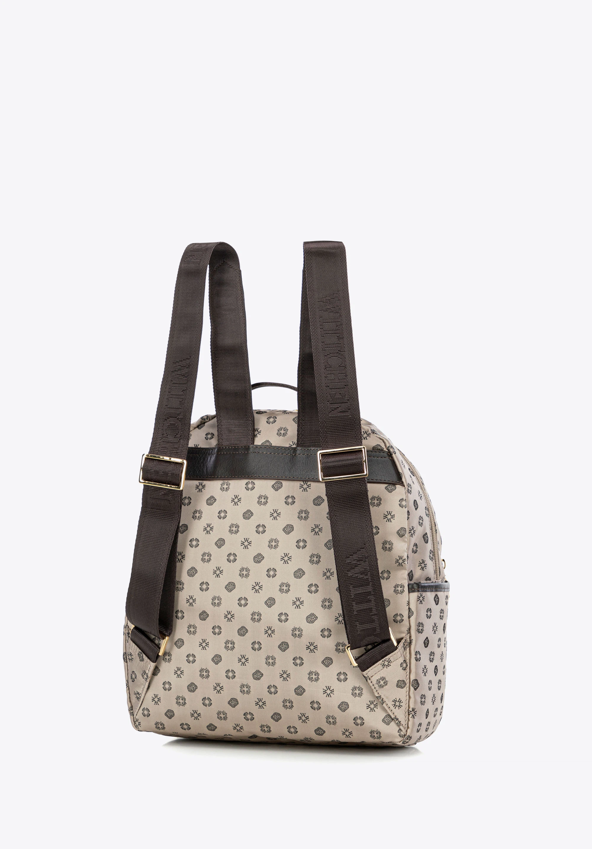 Ten plecak to kwintesencja miejskiej elegancji w każdym szczególe. Jego elegancki materiał z delikatnym połyskiem, zdobiony tłoczonymi monogramami, czyni go idealnym wyborem dla kobiety ceniącej klasykę z nowoczesnym twistem. Przykuwające uwagę detale w postaci naturalnych skórzanych wstawek jak uchwyt, szelki, wykończenia kieszonek, podkreślają luksusowy charakter, jednocześnie zapewniając trwałość i wygodę użytkowania. Plecak damski jest znakomicie zorganizowany i pomieści najpotrzebniejsze przedmioty.