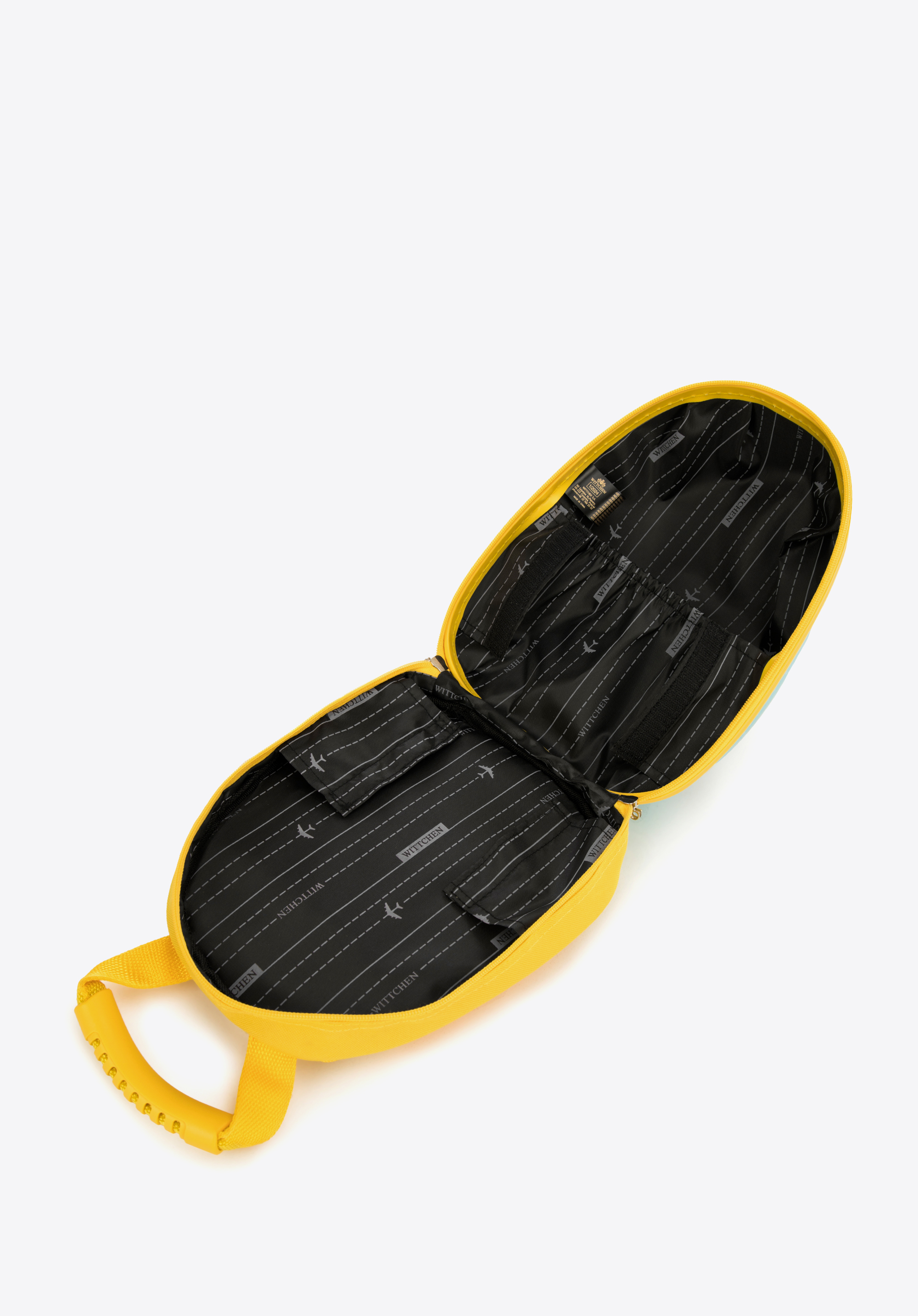 z bardzo wytrzymałego tworzywa ABS, wnętrze walizki wyścielono poliestrową podszewką. Model wyposażony w praktyczny uchwyt do przenoszenia w ręku. Dziecięce motywy na froncie sprawią, że model będzie atrakcyjnym dodatkiem dla każdego malucha.