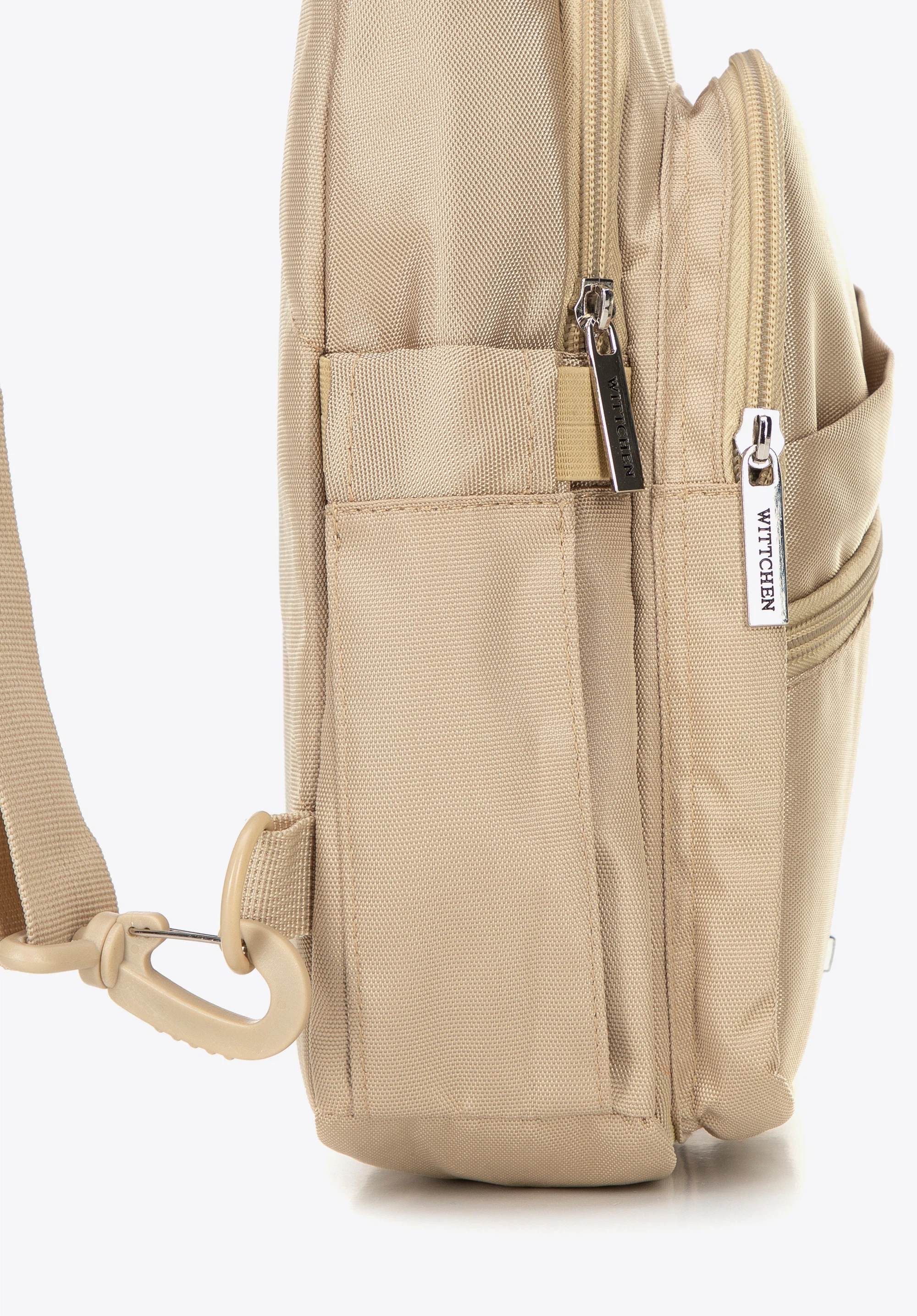 Kompaktowy i gotowy na każde wyzwanie dnia. Ten plecak na jedno ramię został wykonany z trwałego poliestru i zaprojektowany tak, by maksymalnie ułatwić organizację. Trzy frontowe kieszenie na suwak – każda mniejsza od poprzedniej – porządkują codzienne drobiazgi i dodają stylu. Regulowana szelka z możliwością przepięcia pozwala nosić plecak na dowolnym ramieniu, a kieszonka na szelce idealnie sprawdzi się na telefon lub klucze.