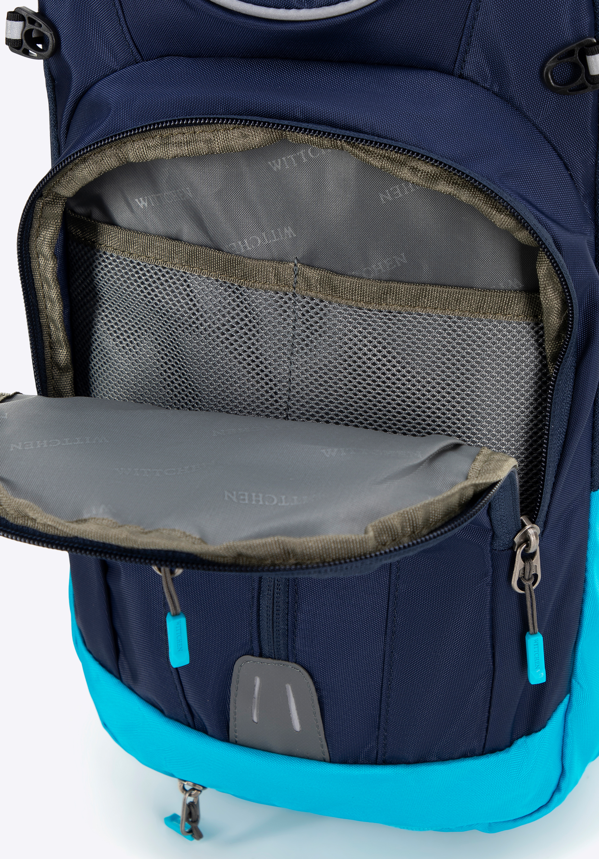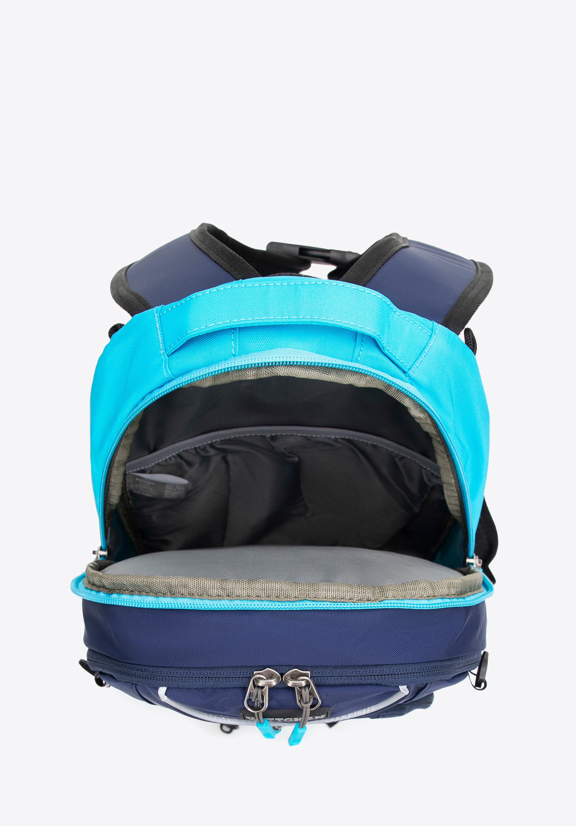 - Funkcjonalne wnętrze: Plecak wyposażono w dwie funkcjonalne komory – jedna posiada kieszeń na zamek, a druga uchwyt na bukłak – co znacznie ułatwia organizację wnętrza.