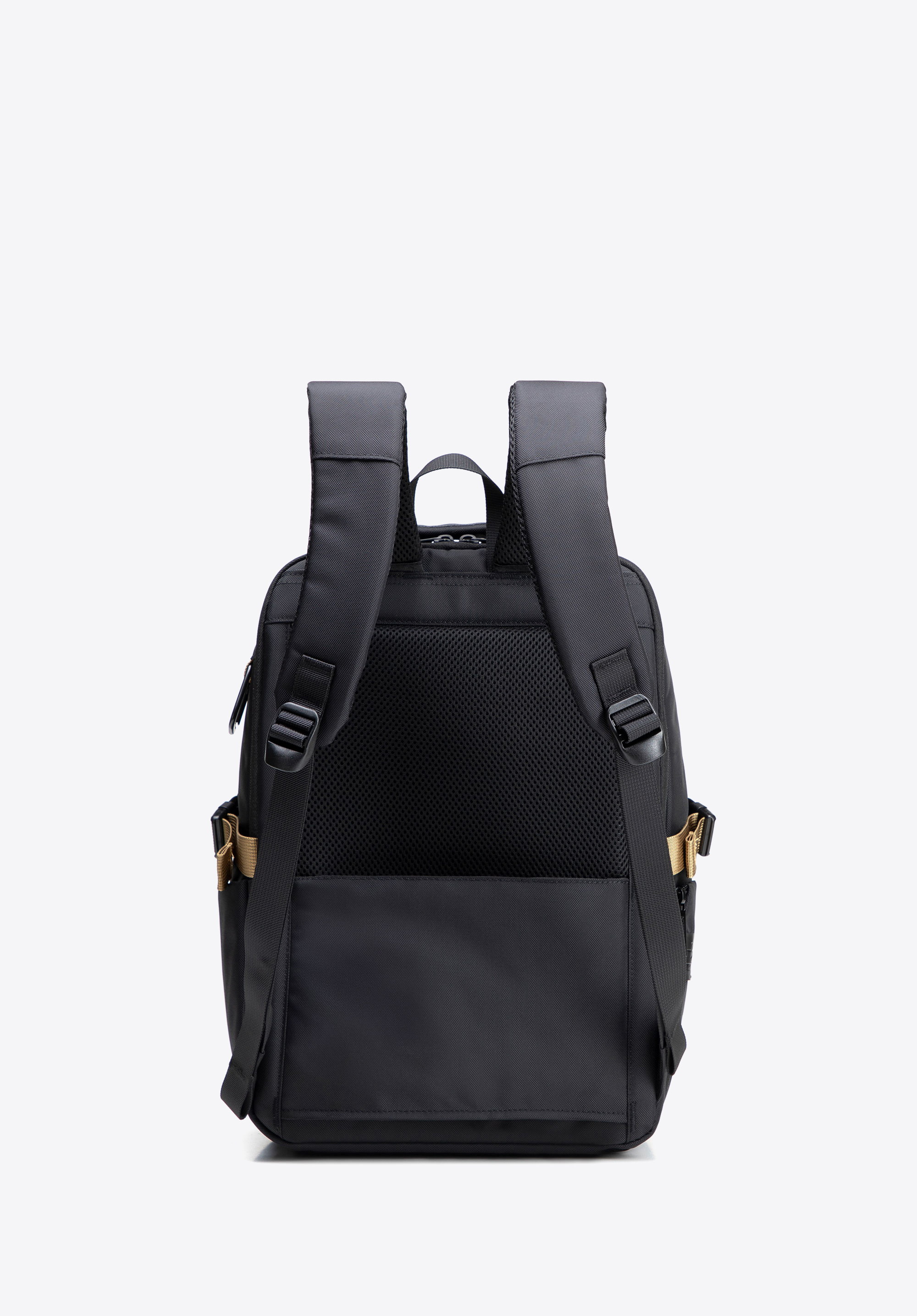 - Tylny pas na walizkę: Pozwala wygodnie zaczepić plecak na stelażu walizki, ułatwiając podróż i przemieszczanie się.