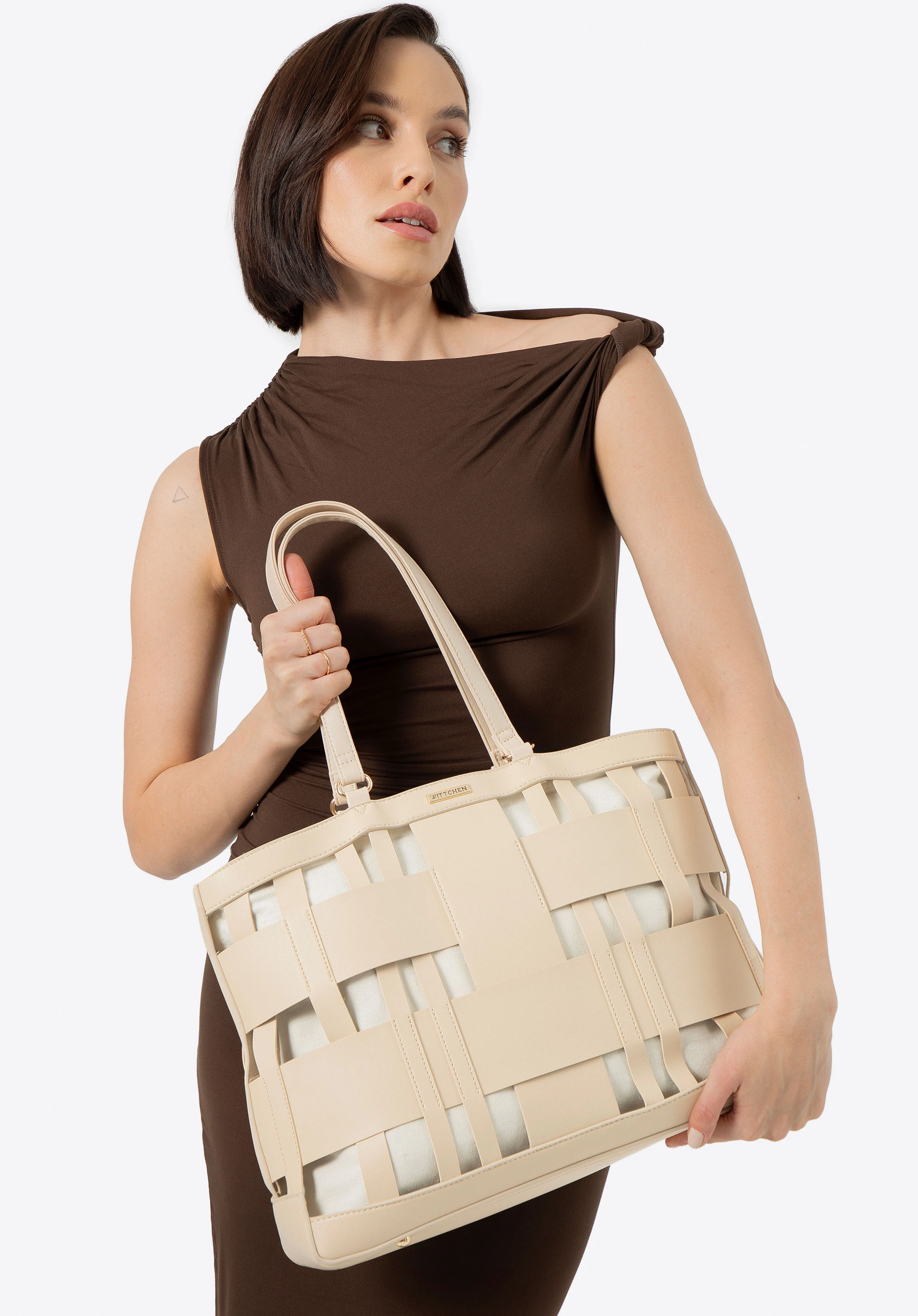 - Dwie rączki: Wygodne, solidne rączki zapewniają komfort noszenia torebki zarówno na ramieniu, jak i w ręce, dostosowując się do Twoich preferencji.