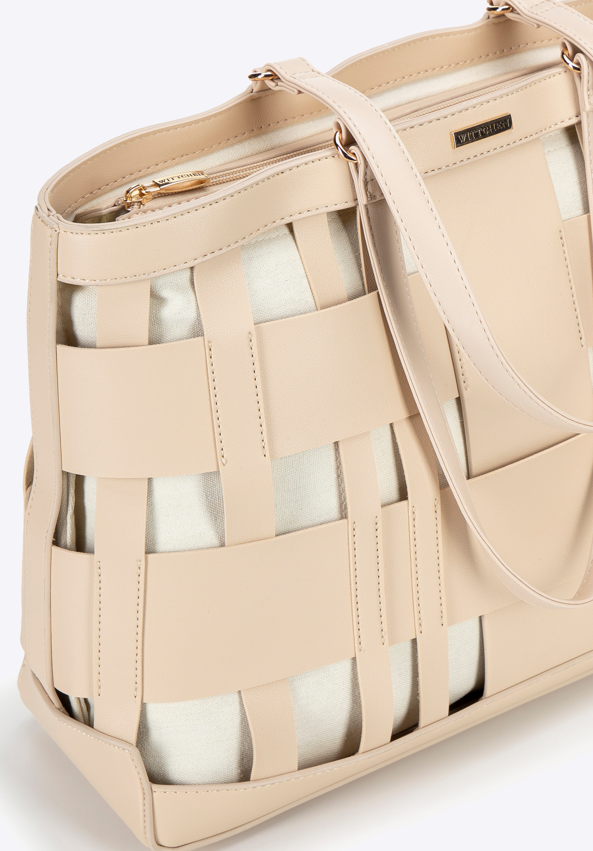 - Design: Plecionka z ekoskóry oraz kontrastowa bawełniana podszewka to modne akcenty, które dodają elegancji.