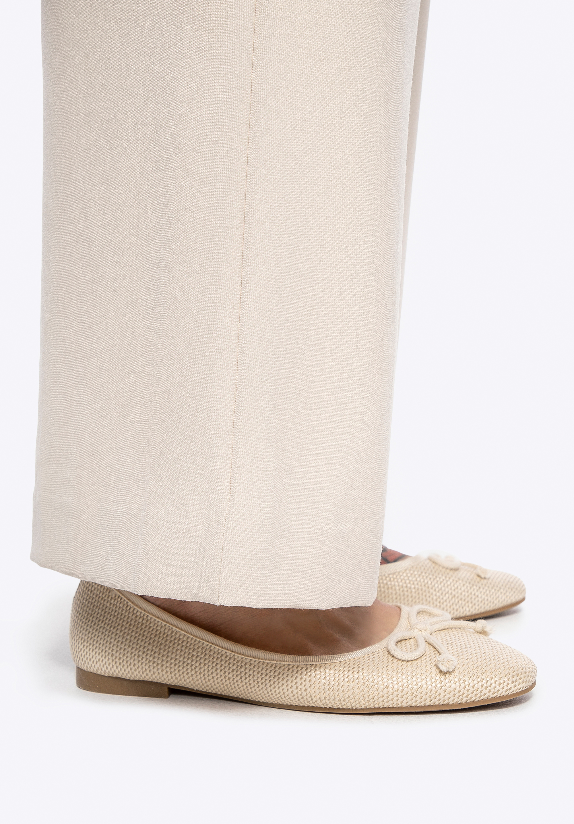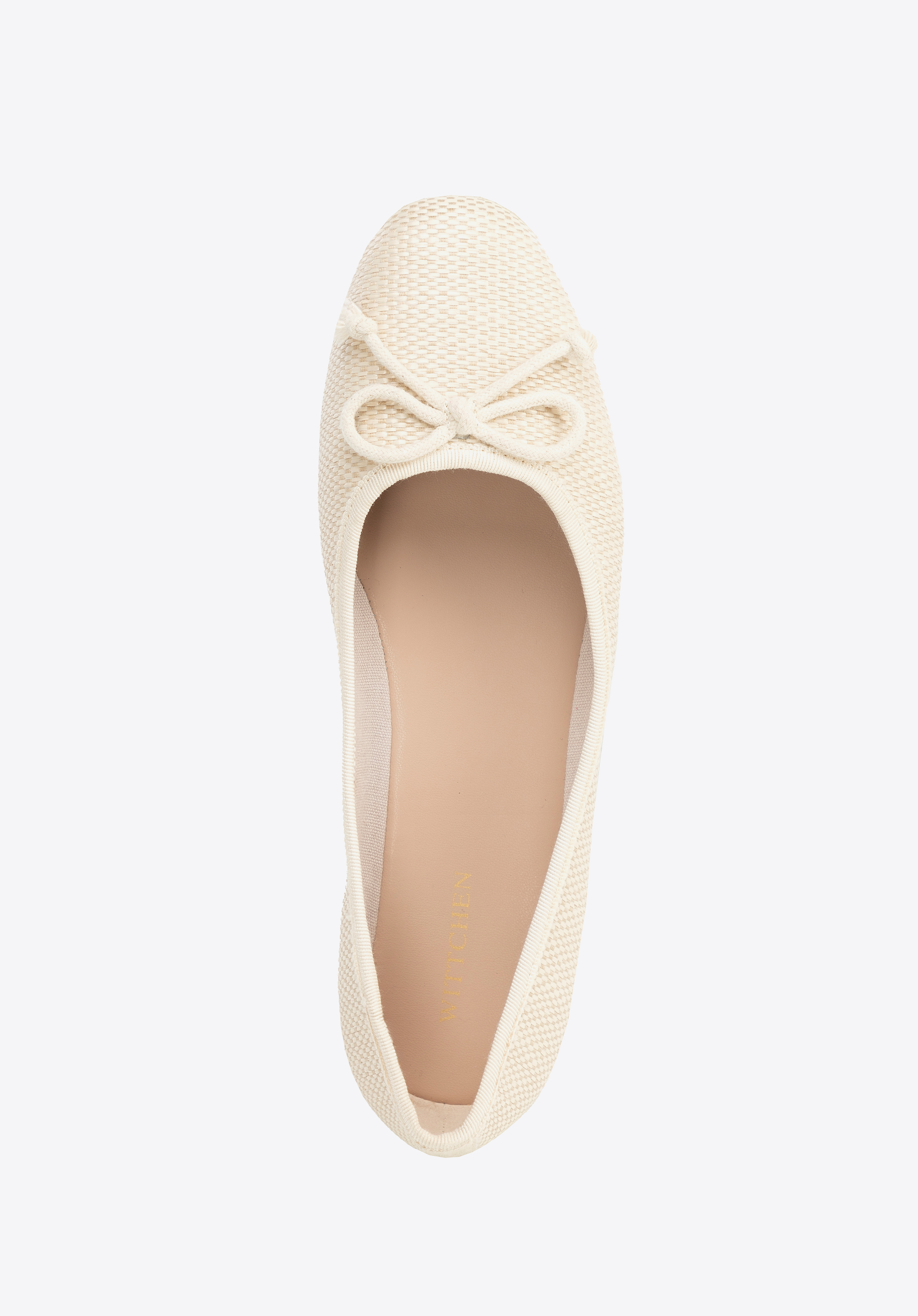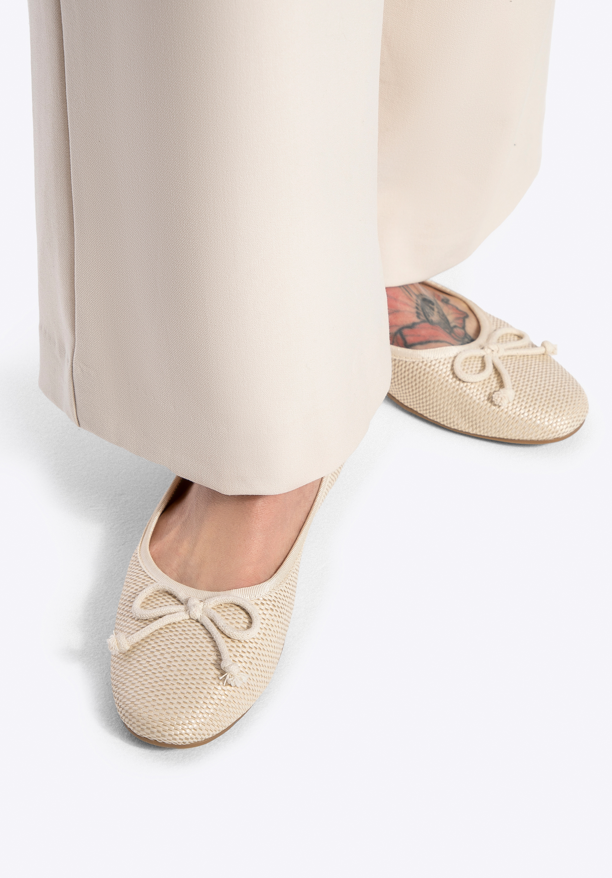 Nasza rada: Połącz baleriny z naszym kuferkiem wykonanym z tego samego materiału, aby stworzyć harmonijny zestaw na letnie dni. Świetnie wyglądają także z lnianymi sukienkami, lekkimi spódnicami czy jeansami o prostym kroju.