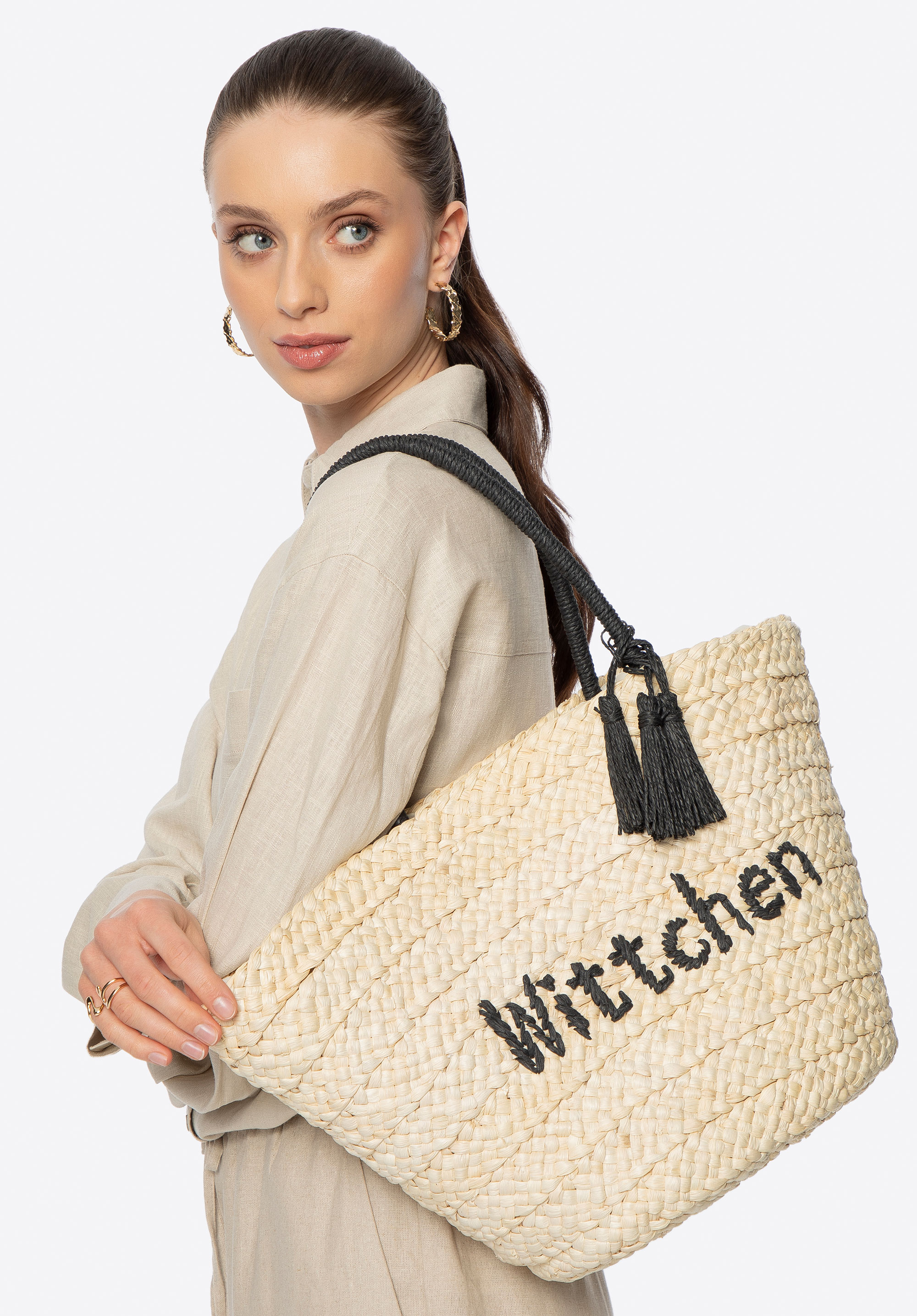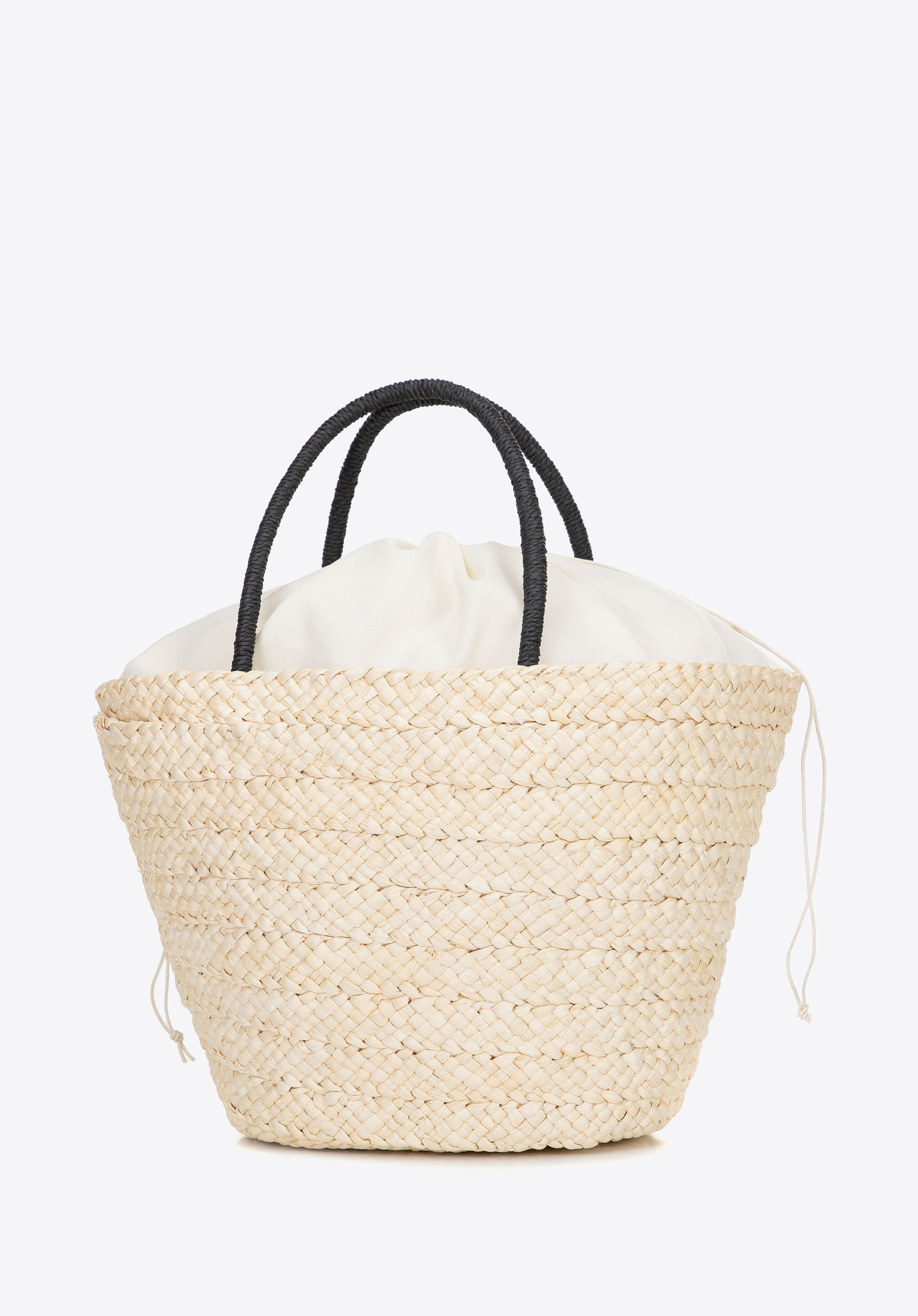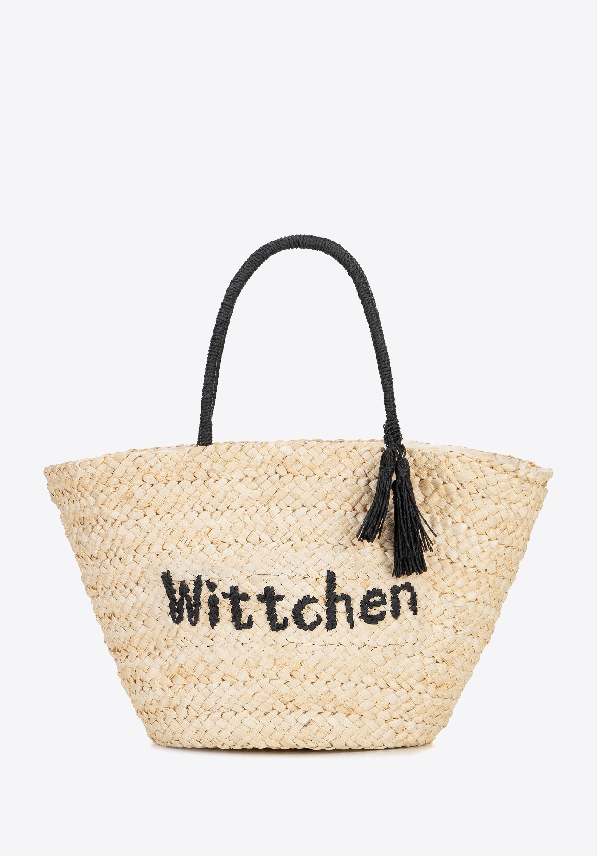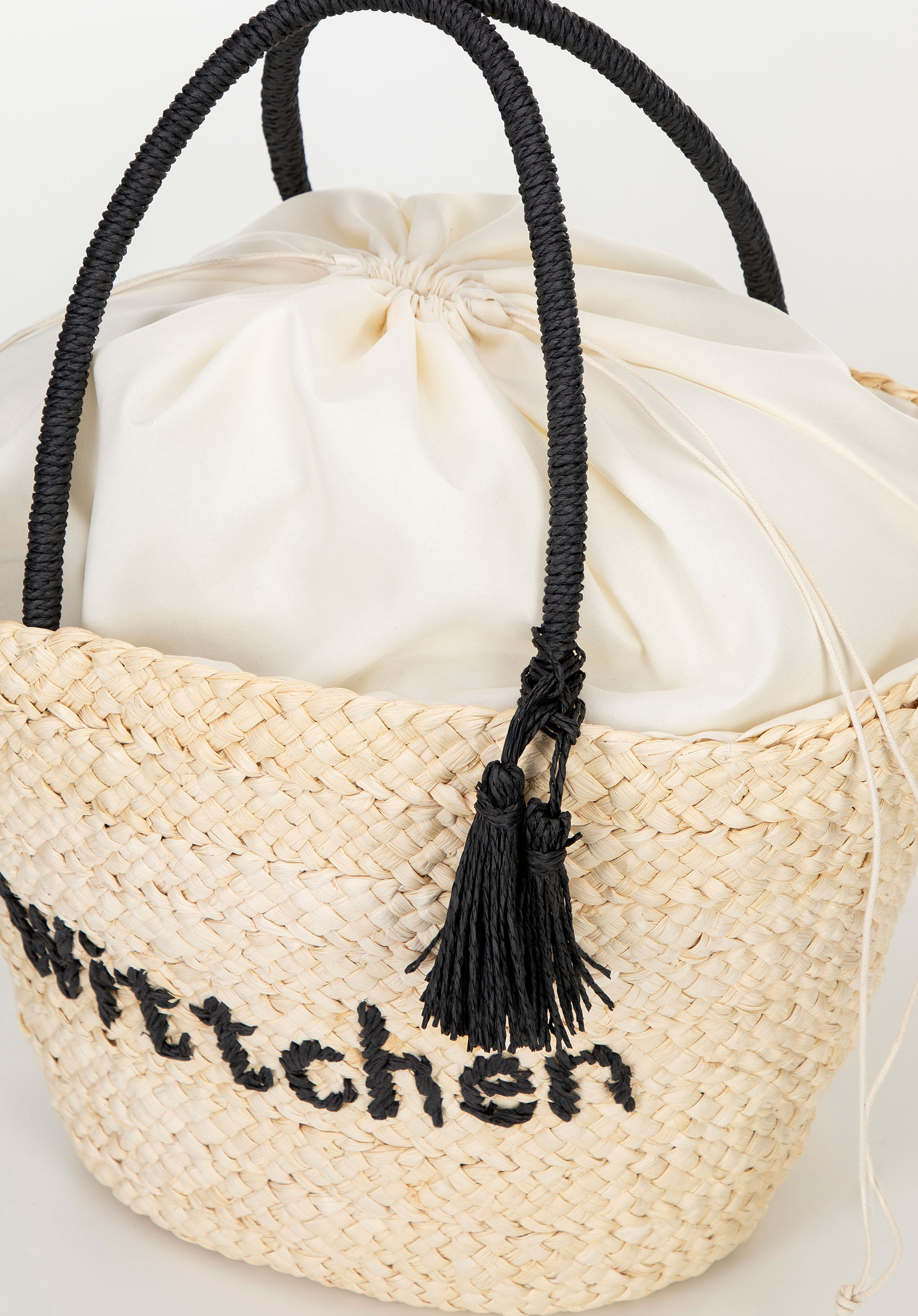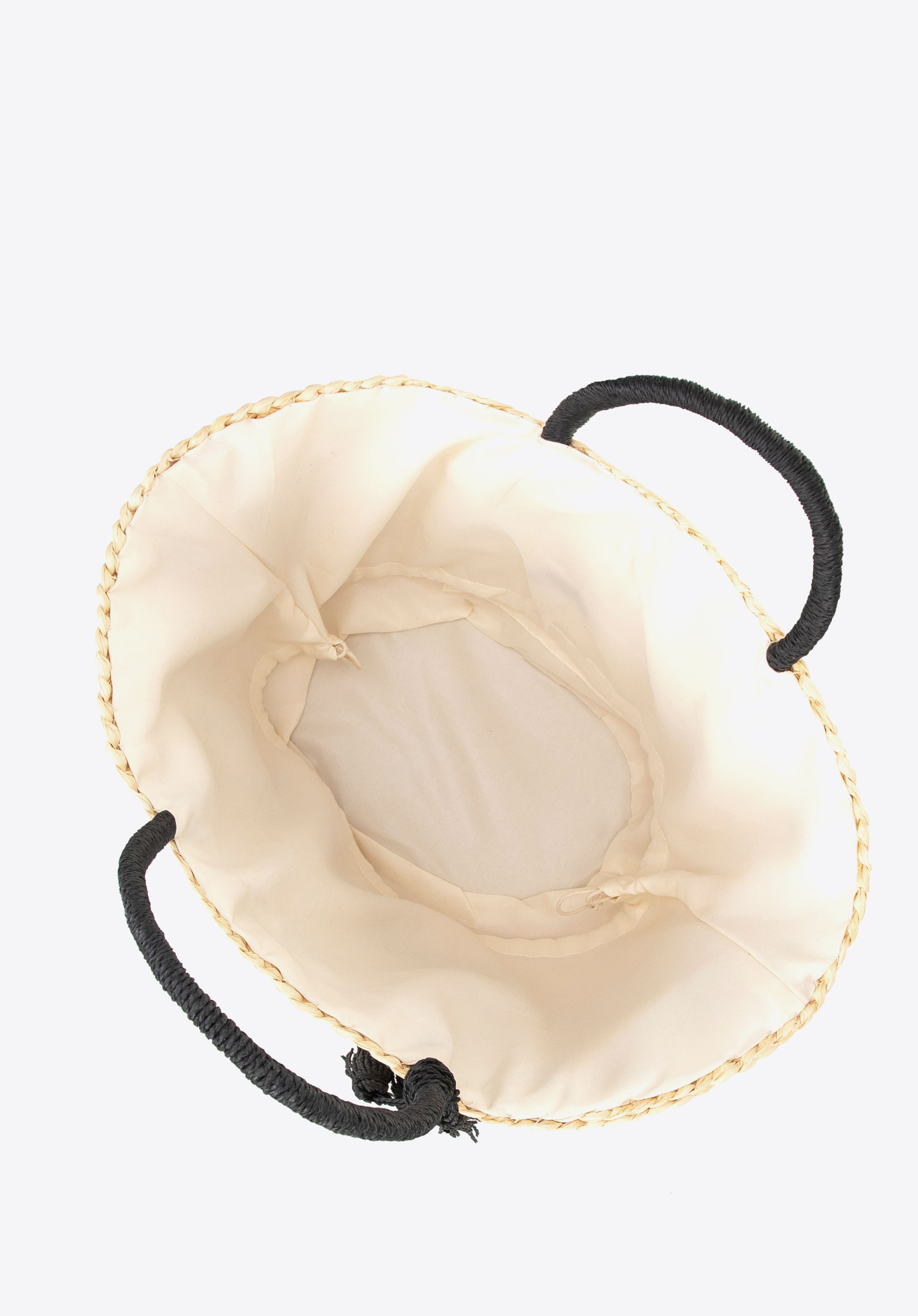 Pleciony koszyk z logo beżowo - czarny