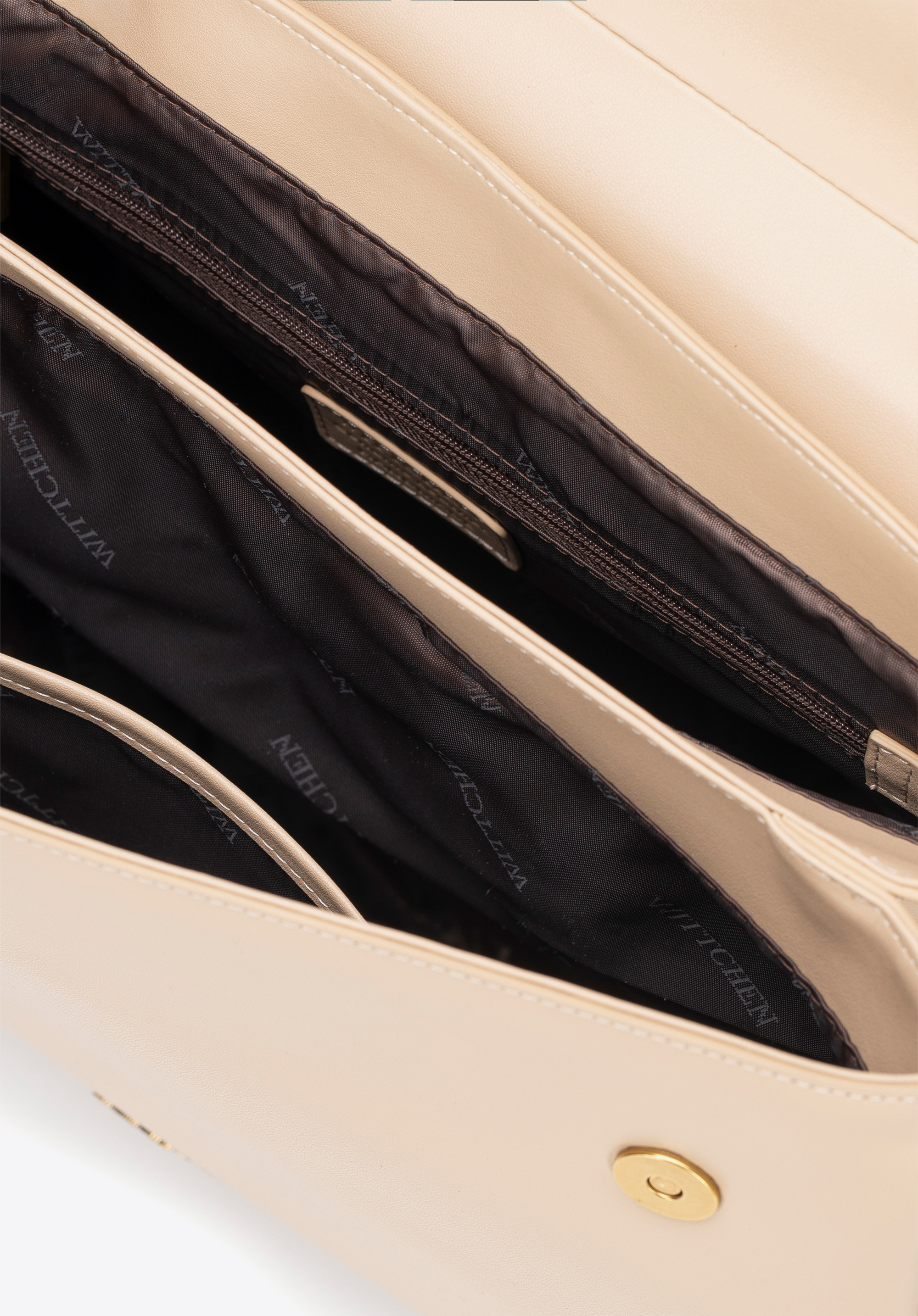 - Przemyślane wnętrze: Dwukomorowa konstrukcja oferuje dwie kieszenie, w tym jedną na zamek, co pozwala utrzymać porządek i mieć szybki dostęp do najważniejszych drobiazgów.
