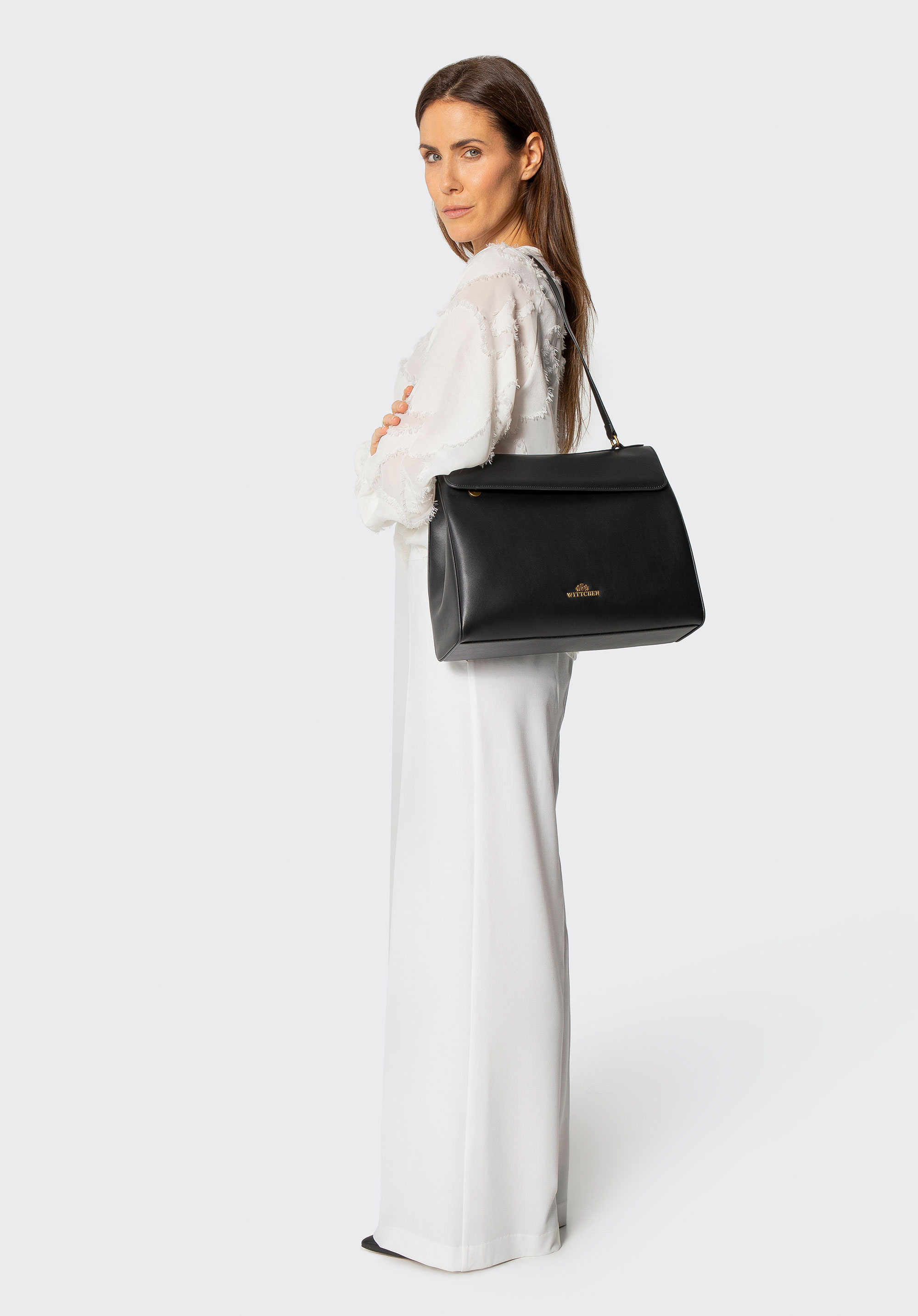 Nasza rada: Noś ją w dłoni lub przewieszoną przez ramię, łącząc z klasycznym płaszczem i dopasowanymi spodniami oraz botkami na słupku – to połączenie elegancji i miejskiego szyku. Na wieczór zestaw z sukienką i czółenkami – torebka stanie się subtelnym, a jednocześnie wyrazistym akcentem Twojej stylizacji.