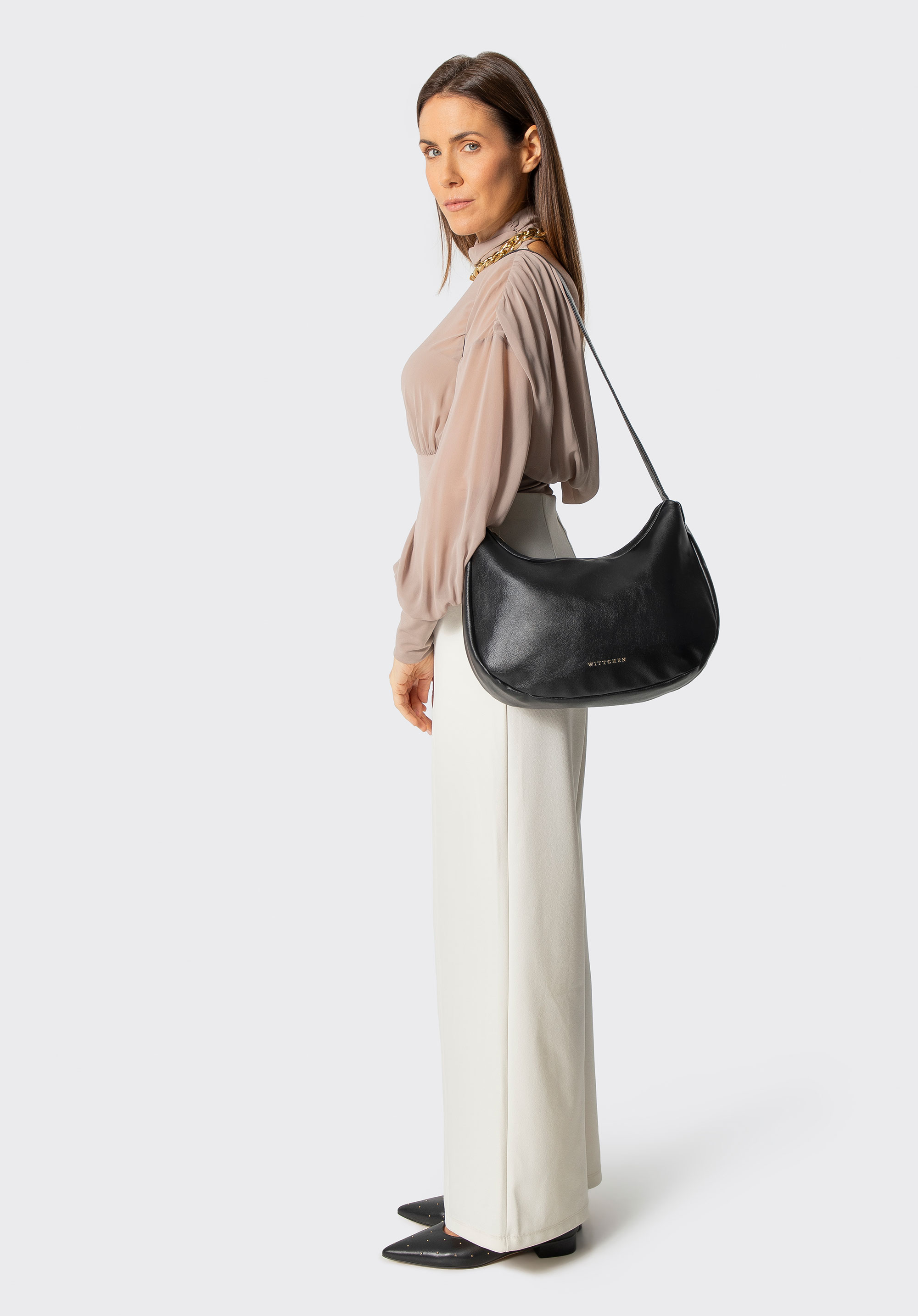Nasza rada: Noś torebkę na ramieniu, wykorzystując regulowany pasek, aby dopasować ją do swojego stylu i potrzeb. Sprawdzi się świetnie w zestawieniu z jeansami i swetrem, casualową sukienką czy lekką kurtką, dodając każdej stylizacji nowoczesnego charakteru.