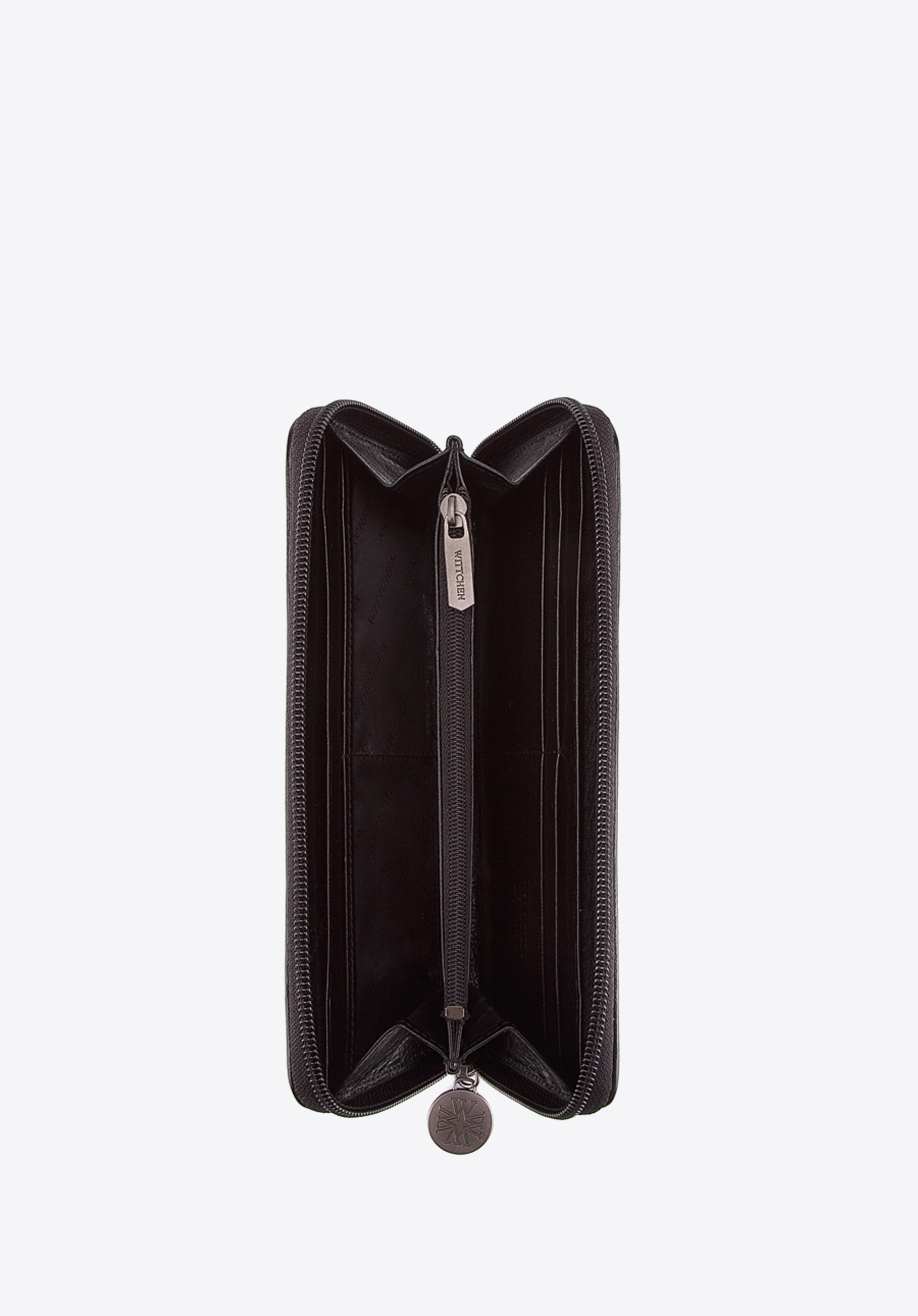 Elegancki portfel damski wykonany ze skóry lakierowanej to doskonałe dopełnienie kobiecej stylizacji. Dobrze rozplanowane wnętrze oraz wygodne zamknięcie czynią ten model wyjątkowo komfortowym w użytkowaniu. Szlachetny połysk podkreśla urok portfela.
