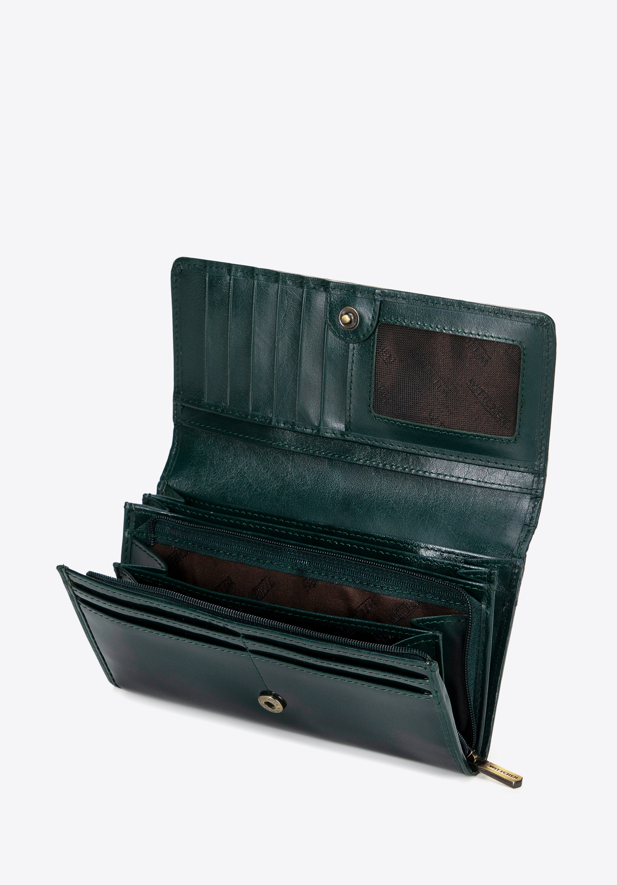 - 2 kieszenie na banknoty: Przestronność, która pozwala na łatwą organizację gotówki, w tym różnych walut.