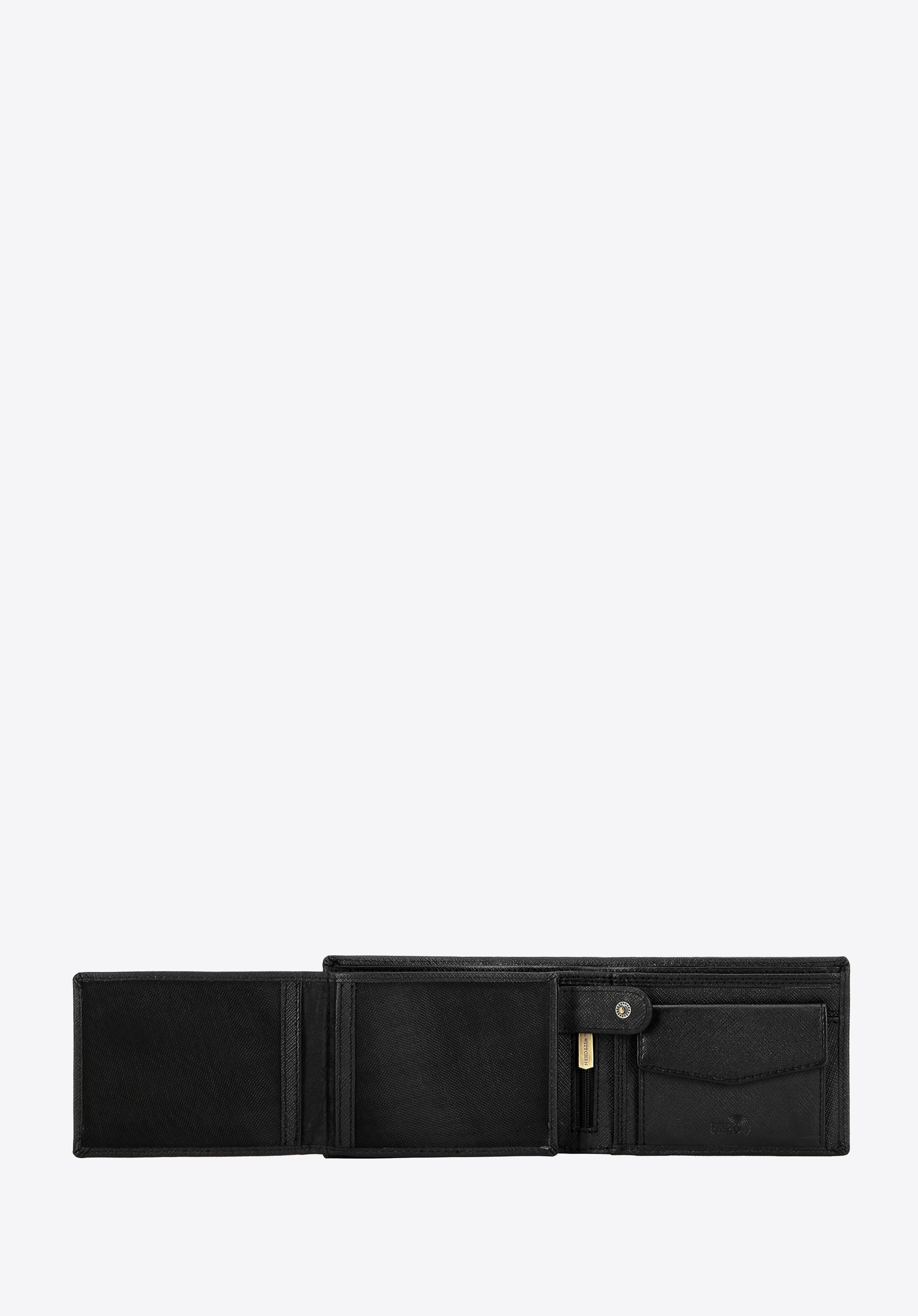 - Funkcjonalna organizacja przestrzeni: Portfel pomieści dowód rejestracyjny, a także posiada dwie kieszenie na banknoty oraz miejsce na bilon zapinane na napę.