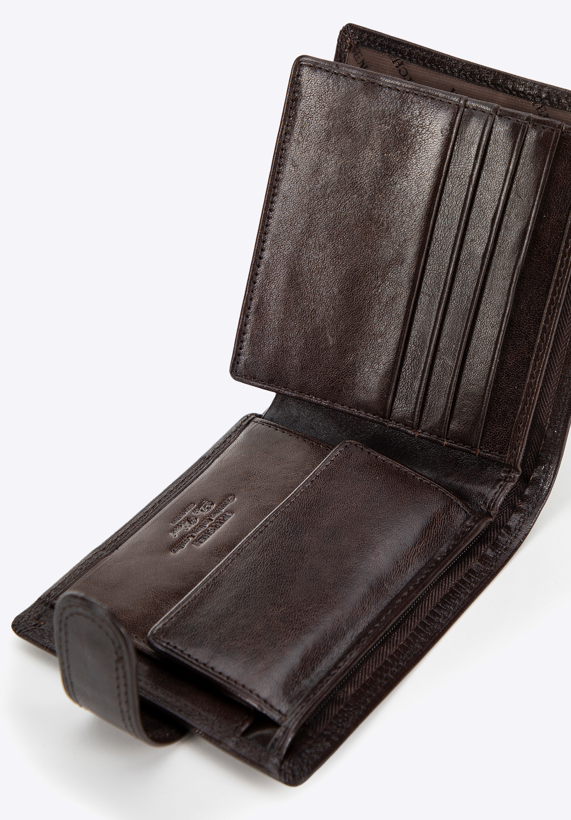 - Materiał: Wykonany z naturalnej skóry, portfel charakteryzuje się trwałością i elegancją.