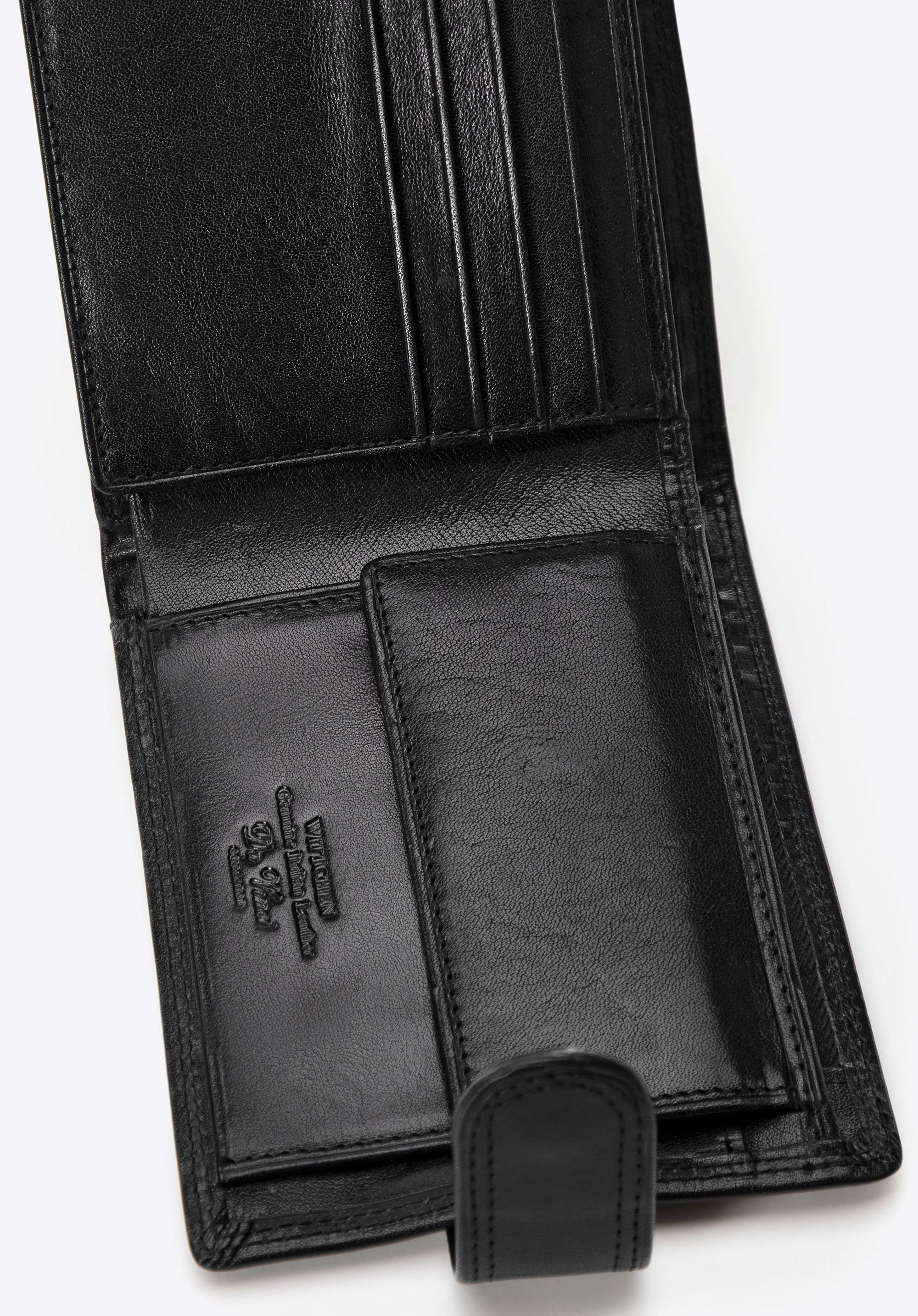 - Materiał: Wykonany z naturalnej skóry, portfel charakteryzuje się trwałością i elegancją.