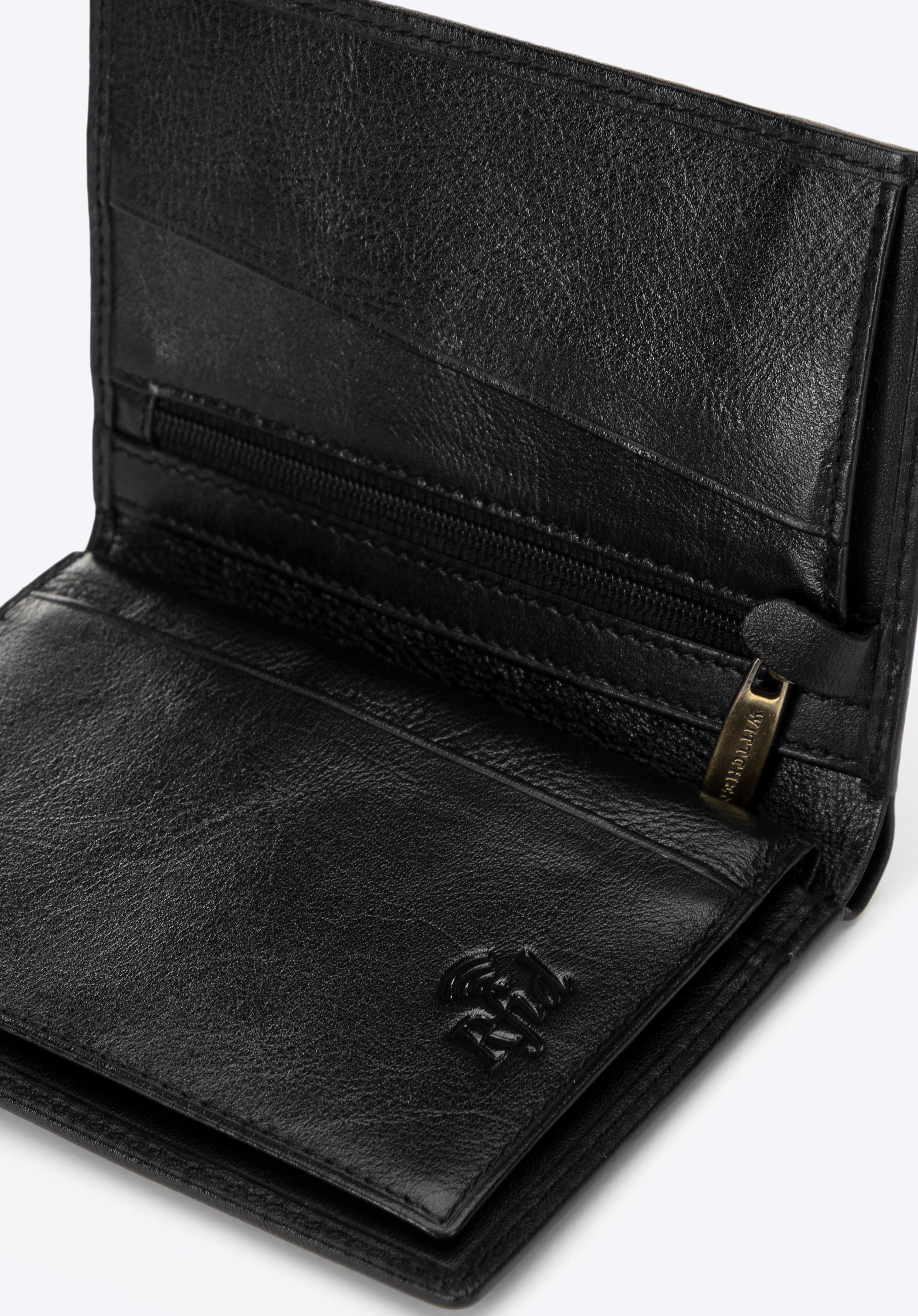- Funkcjonalność: Miejsce na bilon, kieszeń na banknoty oraz 4 kieszenie na karty kredytowe zapewniają doskonałą organizację.