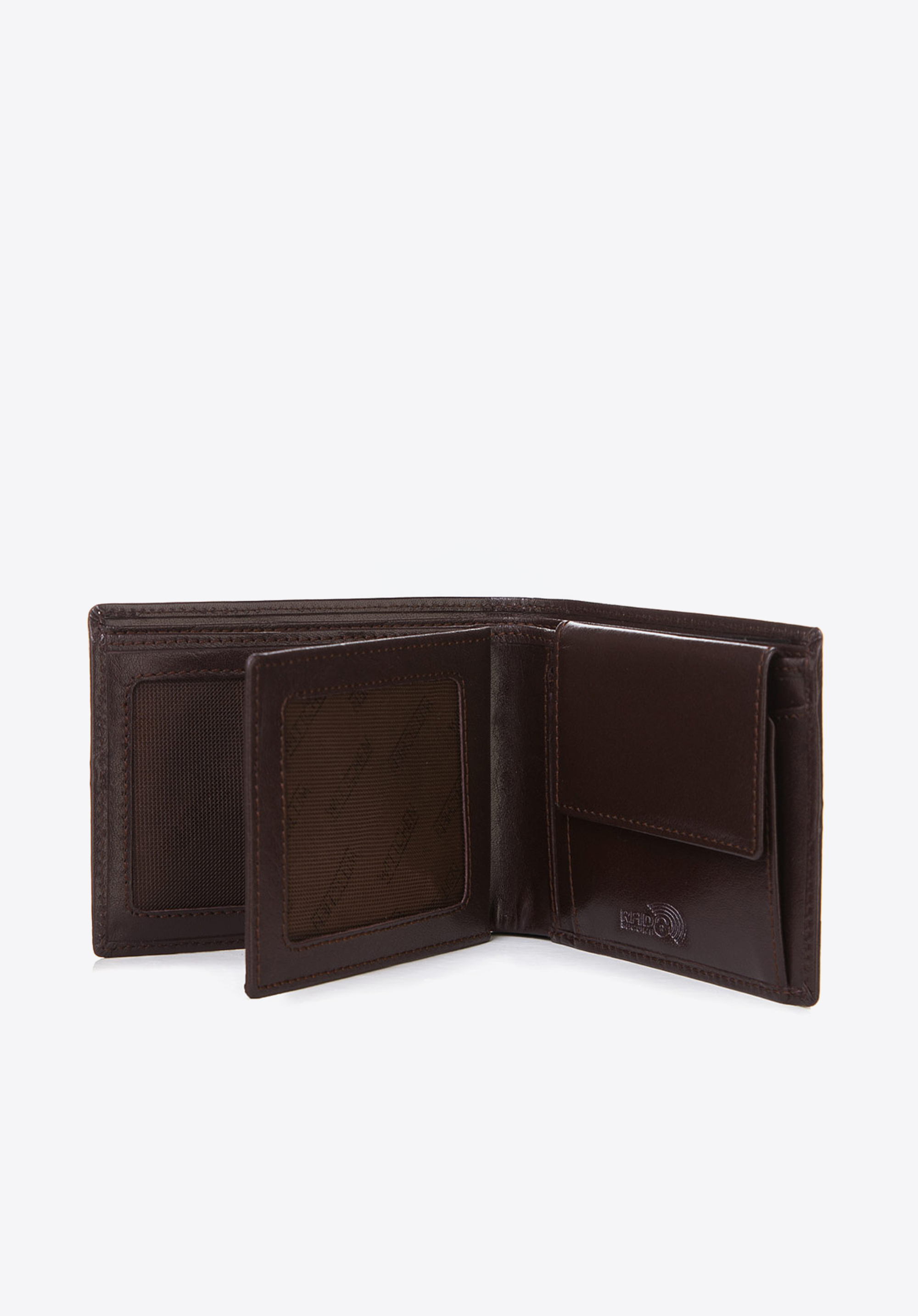 Brązowy portfel skórzany to wybór na co dzień i do garnituru, kiedy cenisz klasykę w kompaktowej formie i lubisz mieć dokumenty pod ręką. Skóra z wyrazistą fakturą, herb tłoczony w materiale oraz ochrona RFID porządkują karty, gotówkę i bilon, dbając także o bezpieczeństwo danych.