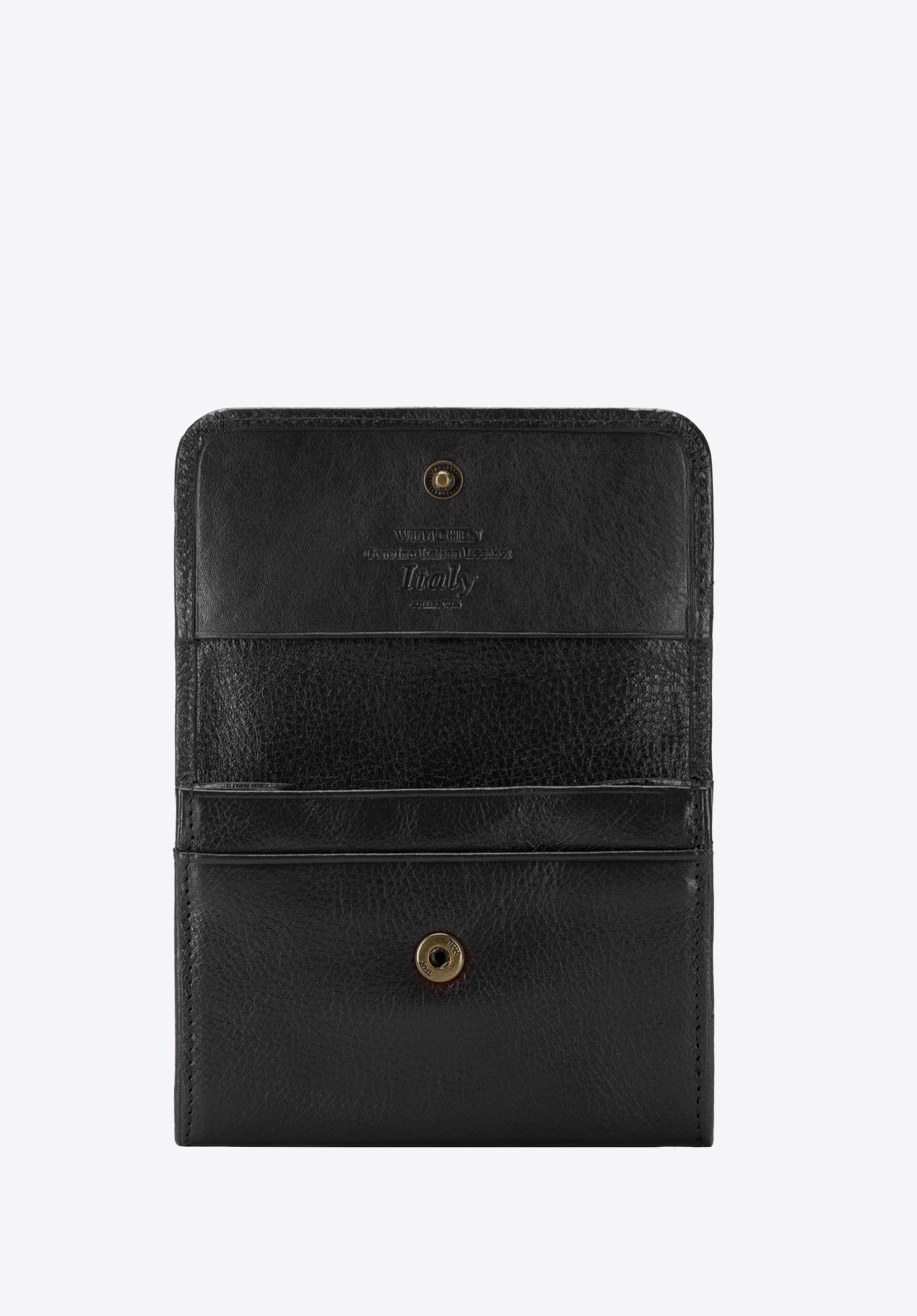 Mały portfel o orientacji poziomej. Bardzo odporny na zarysowania, wykonany z najwyższej jakości skóry naturalnej. Ergonomiczna konstrukcja portfela zapinana na zatrzask posiada wnętrze obszyte podszewką anty-RFID. Doskonale zaprojektowany model stanowi ochronę dla cennej zawartości.