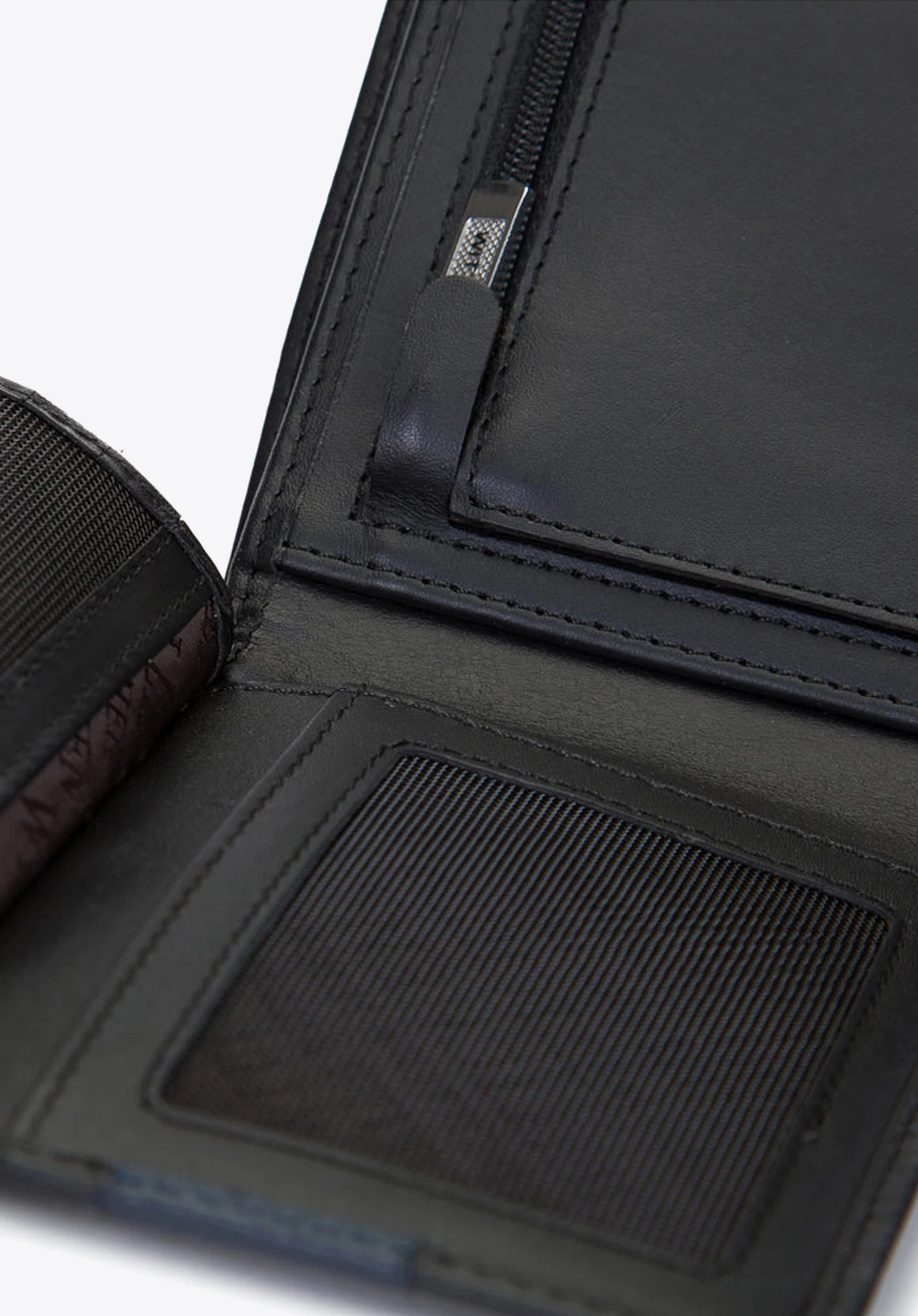 Ten klasyczny portfel zwraca uwagę detalem – ozdobną naszywką z logo. Jest wykonany niezwykle starannie z najwyższej jakości skóry licowej. Nie posiada zapięcia, dzięki czemu otworzysz go jednym ruchem. Ma również bardzo funkcjonalny rozkładany panel z wieloma dodatkowymi kieszonkami i przegrodami na karty. W środku ma dwie kieszenie na banknoty, z czego jedna zamykana jest na zamek, zamykaną kieszeń na bilon, cztery przegrody na karty, trzy dodatkowe kieszenie oraz dwie dodatkowe przegrody z siatki, które możesz przeznaczyć na przykład na zdjęcia najbliższych czy inne ważne pamiątki. Podszewka ma zabezpieczenie RFID, która chroni Twoje karty przed sczytywaniem danych.