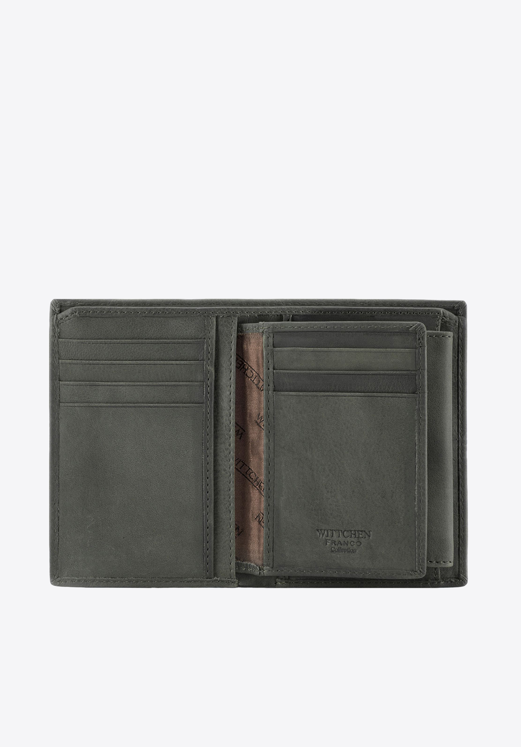- portfel posiada zdobienie w postaci herbu WITTCHEN wytłoczonego w skórze;