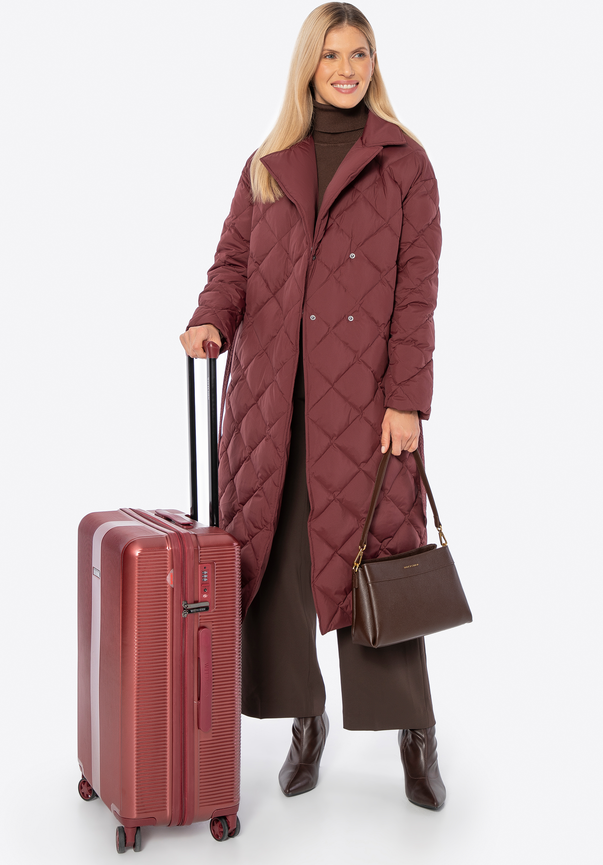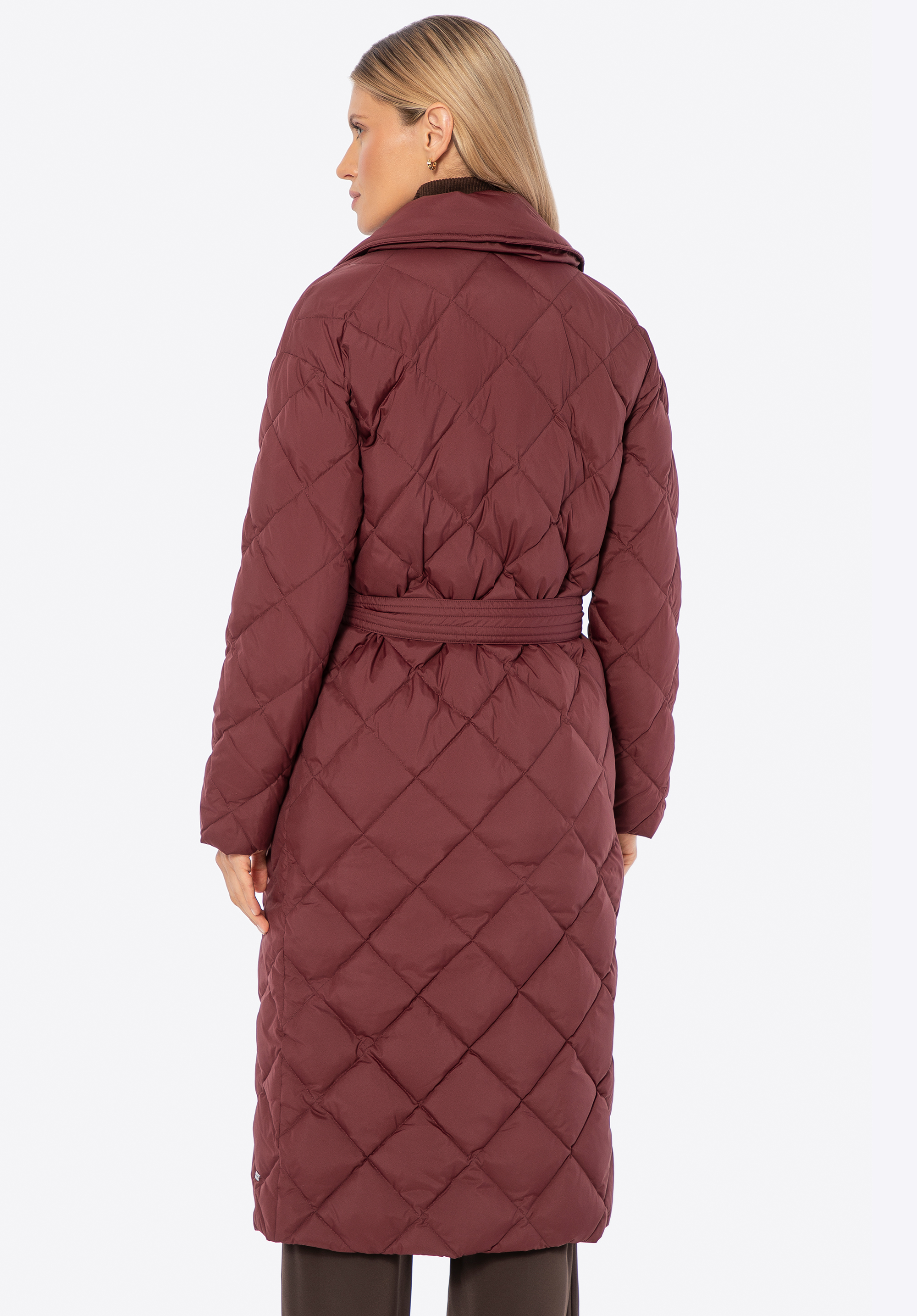 Ten damski płaszcz puchowy łączy komfort, funkcjonalność i elegancki design. Wykonany z poliestru i wypełniony naturalnym puchem kaczym oraz pierzem, zapewnia optymalne ciepło nawet w najzimniejsze dni. Długi fason chroni sylwetkę, a pikowanie dodaje całości lekkości i nowoczesnego charakteru. Pasek w talii pozwala subtelnie dopasować płaszcz, podkreślając kobiecą sylwetkę i dodając elegancji.