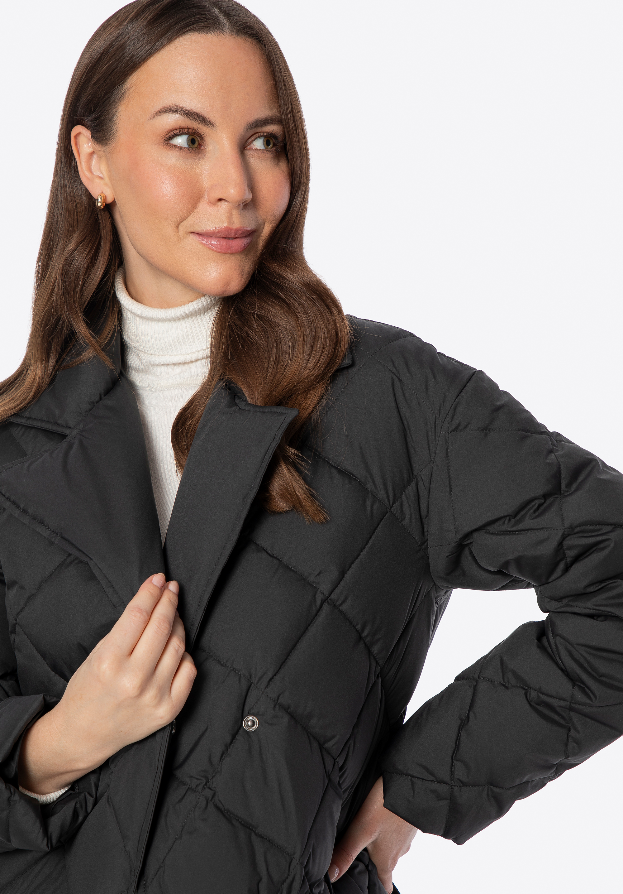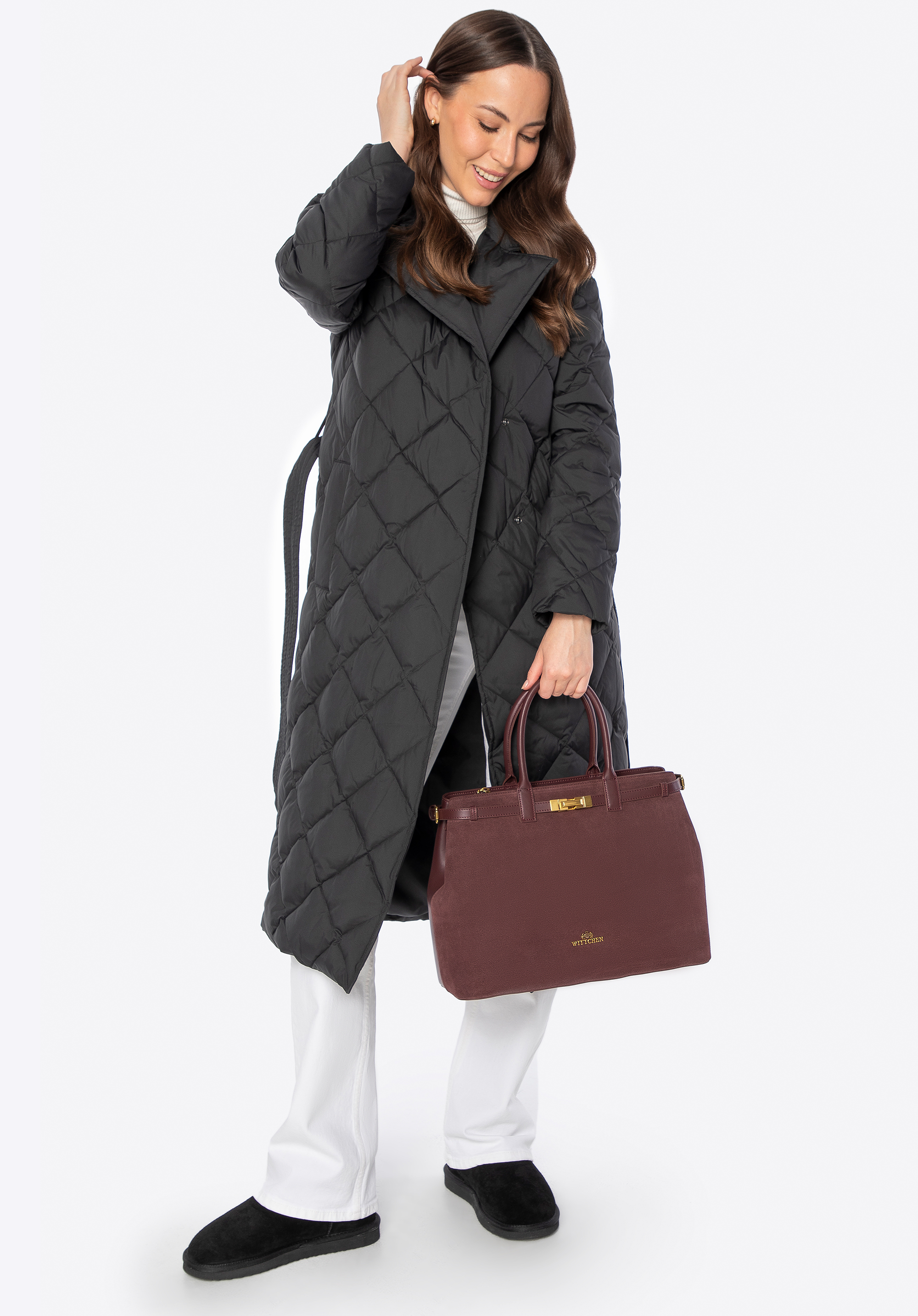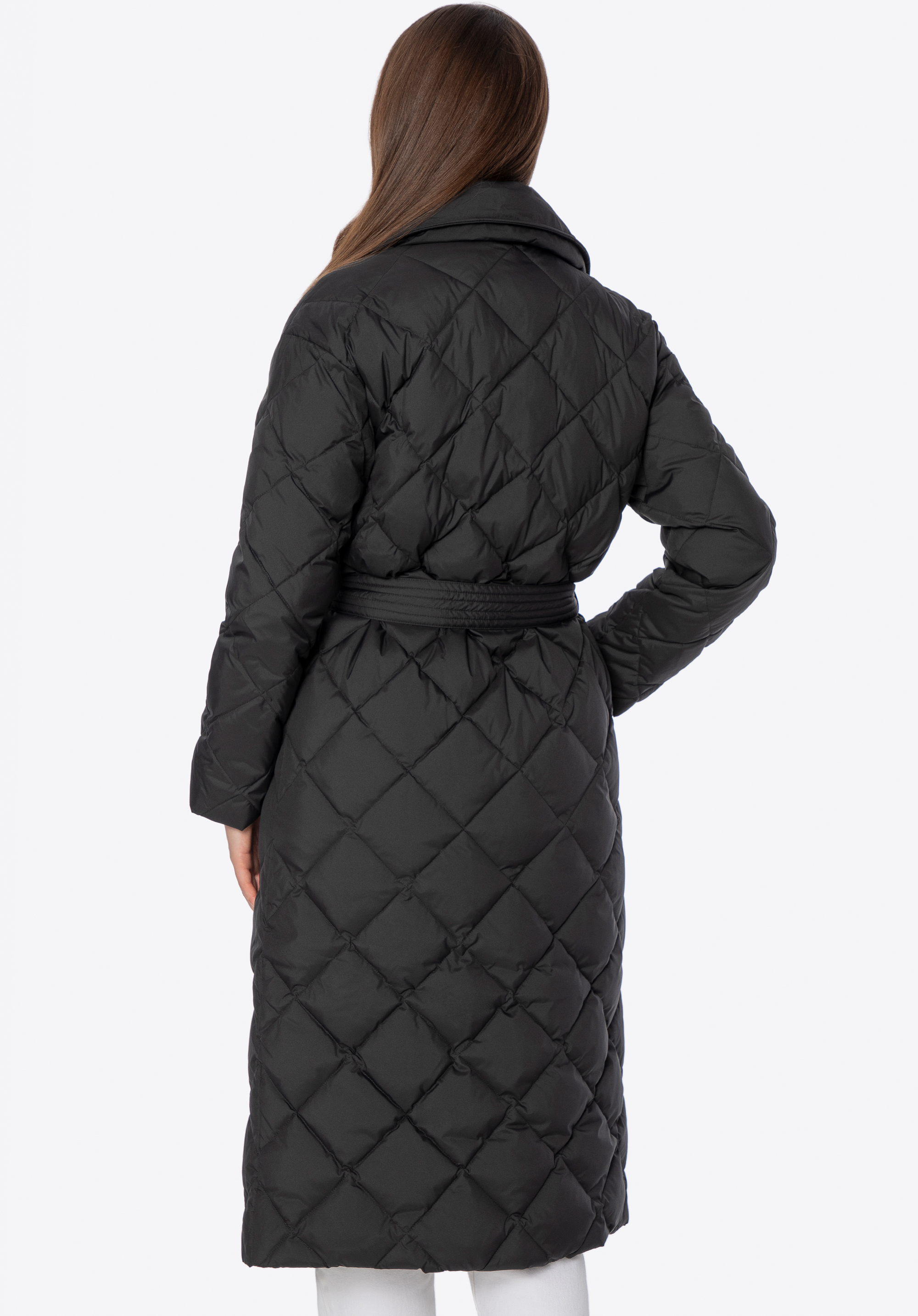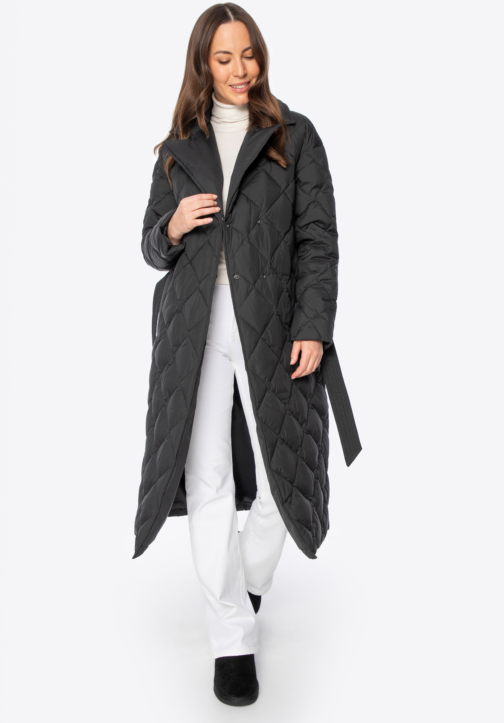 Ten damski płaszcz puchowy łączy komfort, funkcjonalność i elegancki design. Wykonany z poliestru i wypełniony naturalnym puchem kaczym oraz pierzem, zapewnia optymalne ciepło nawet w najzimniejsze dni. Długi fason chroni sylwetkę, a pikowanie dodaje całości lekkości i nowoczesnego charakteru. Pasek w talii pozwala subtelnie dopasować płaszcz, podkreślając kobiecą sylwetkę i dodając elegancji.