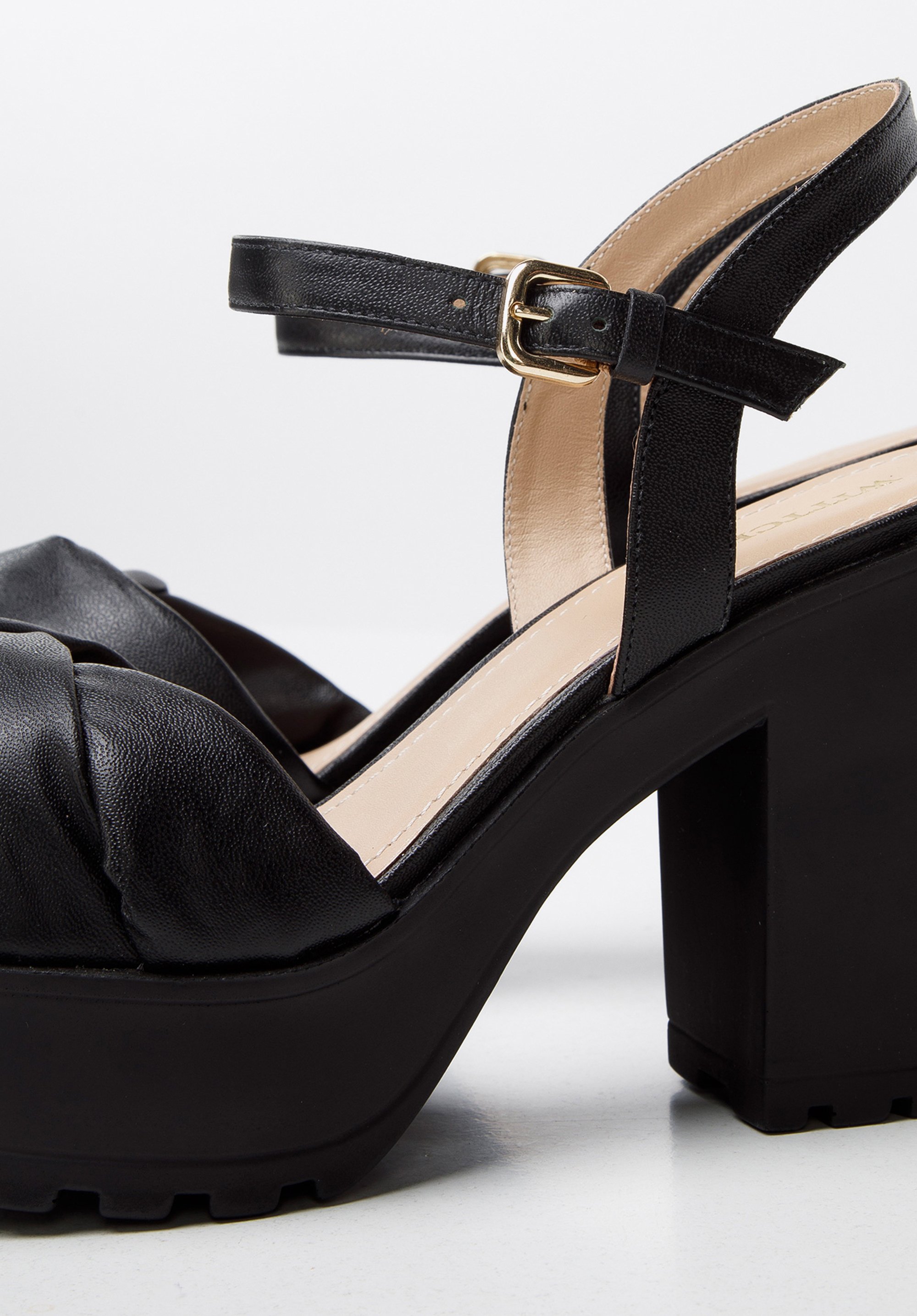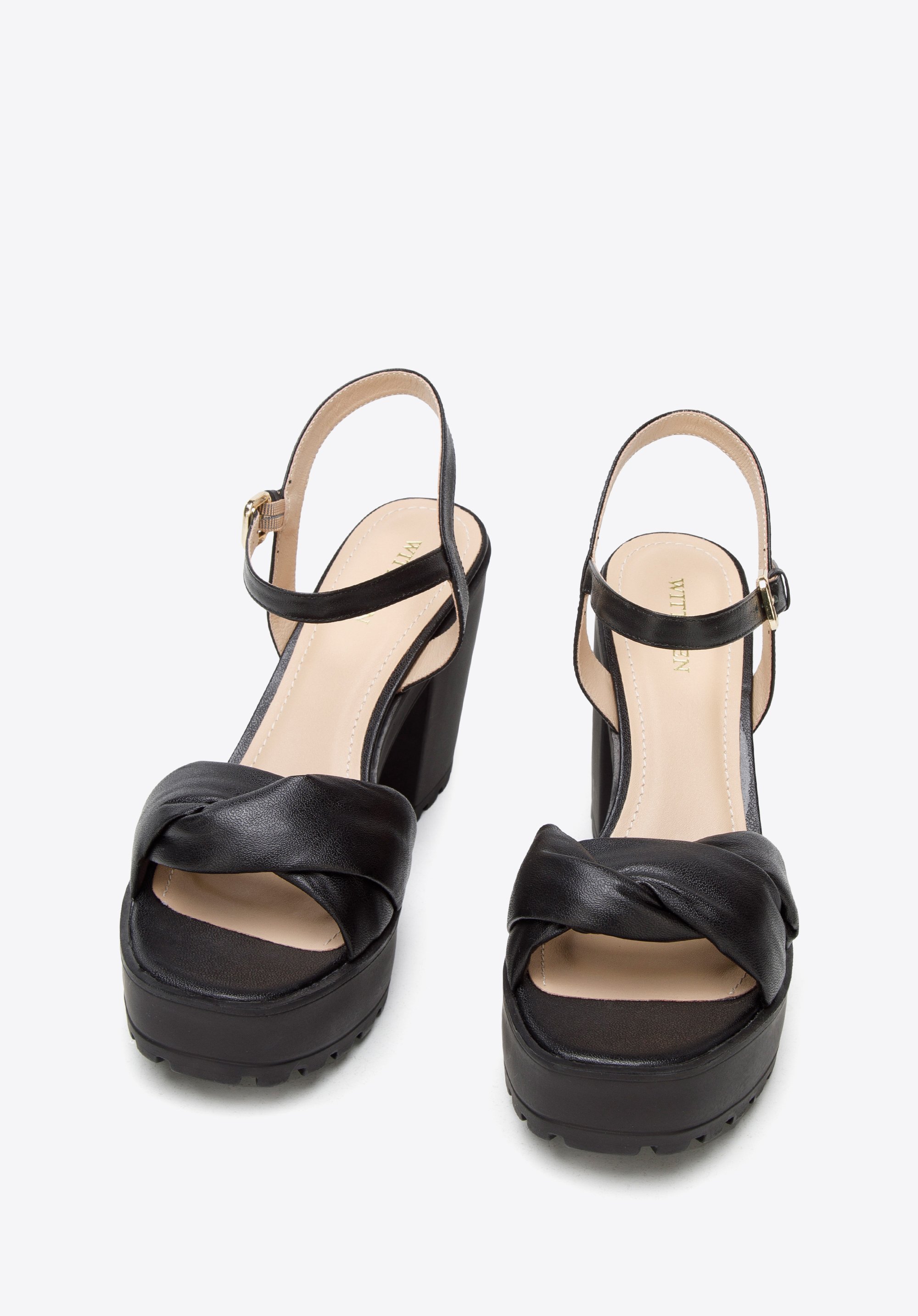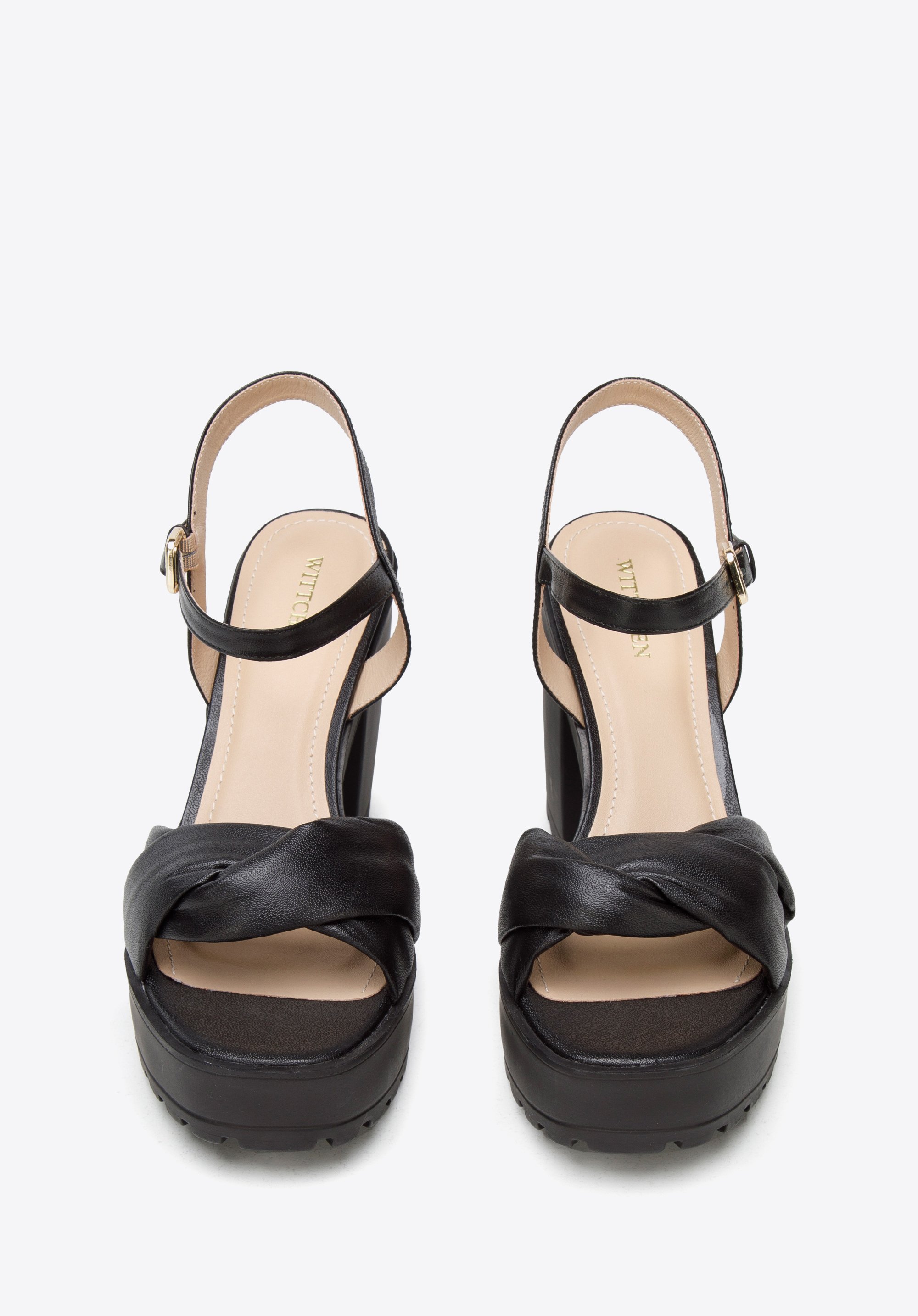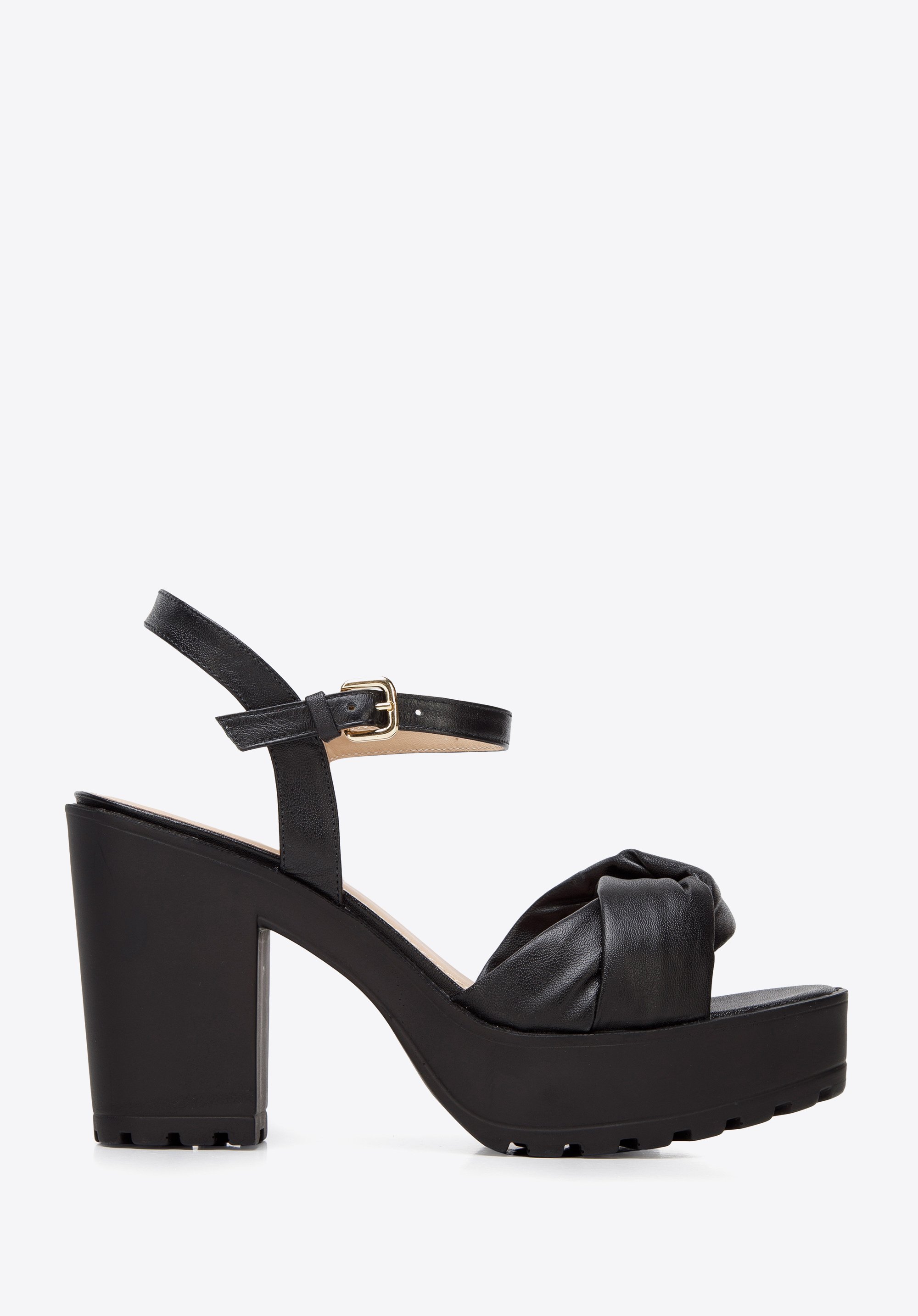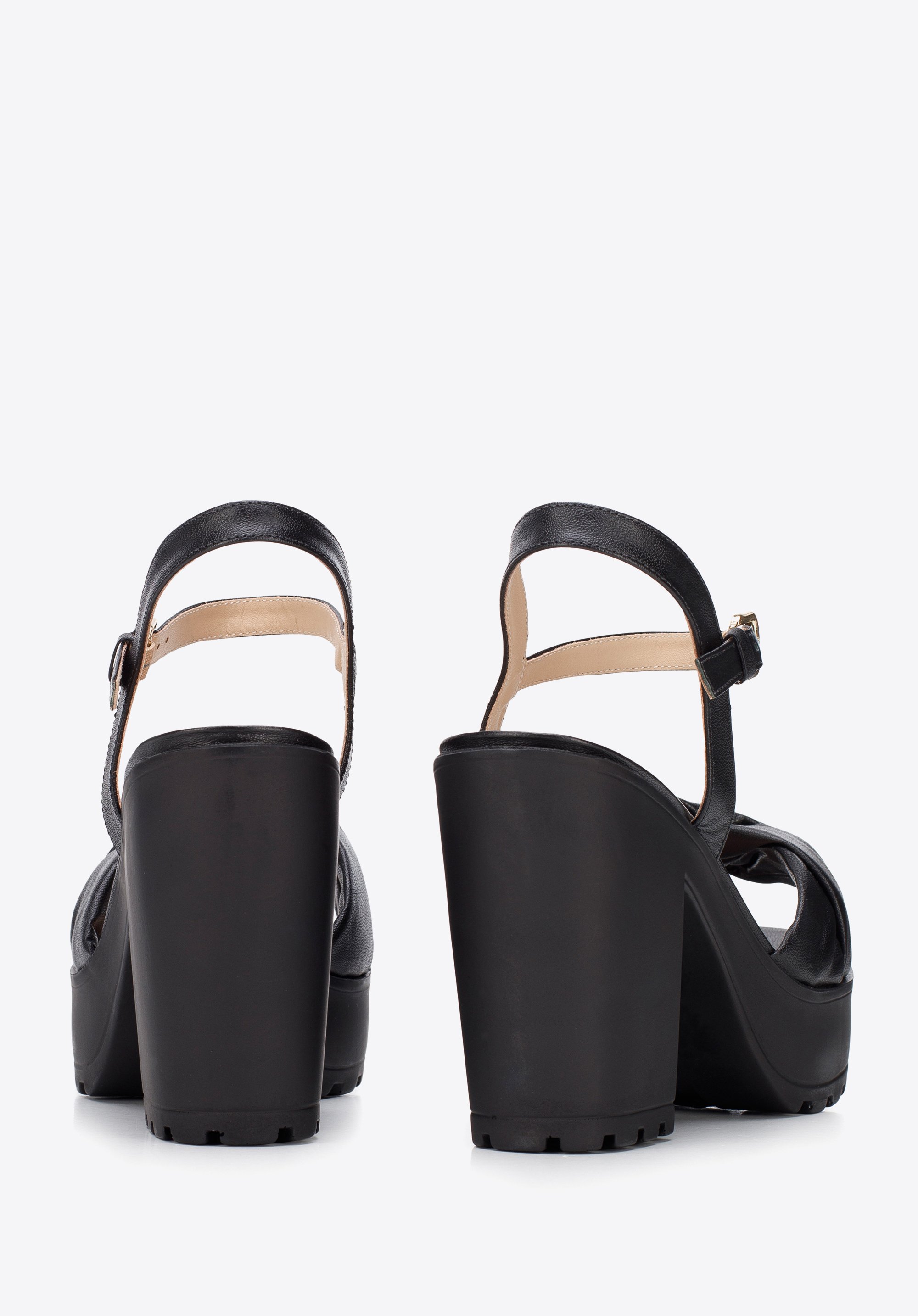 Sandały skórzane z miękkim paskiem na platformie czarne