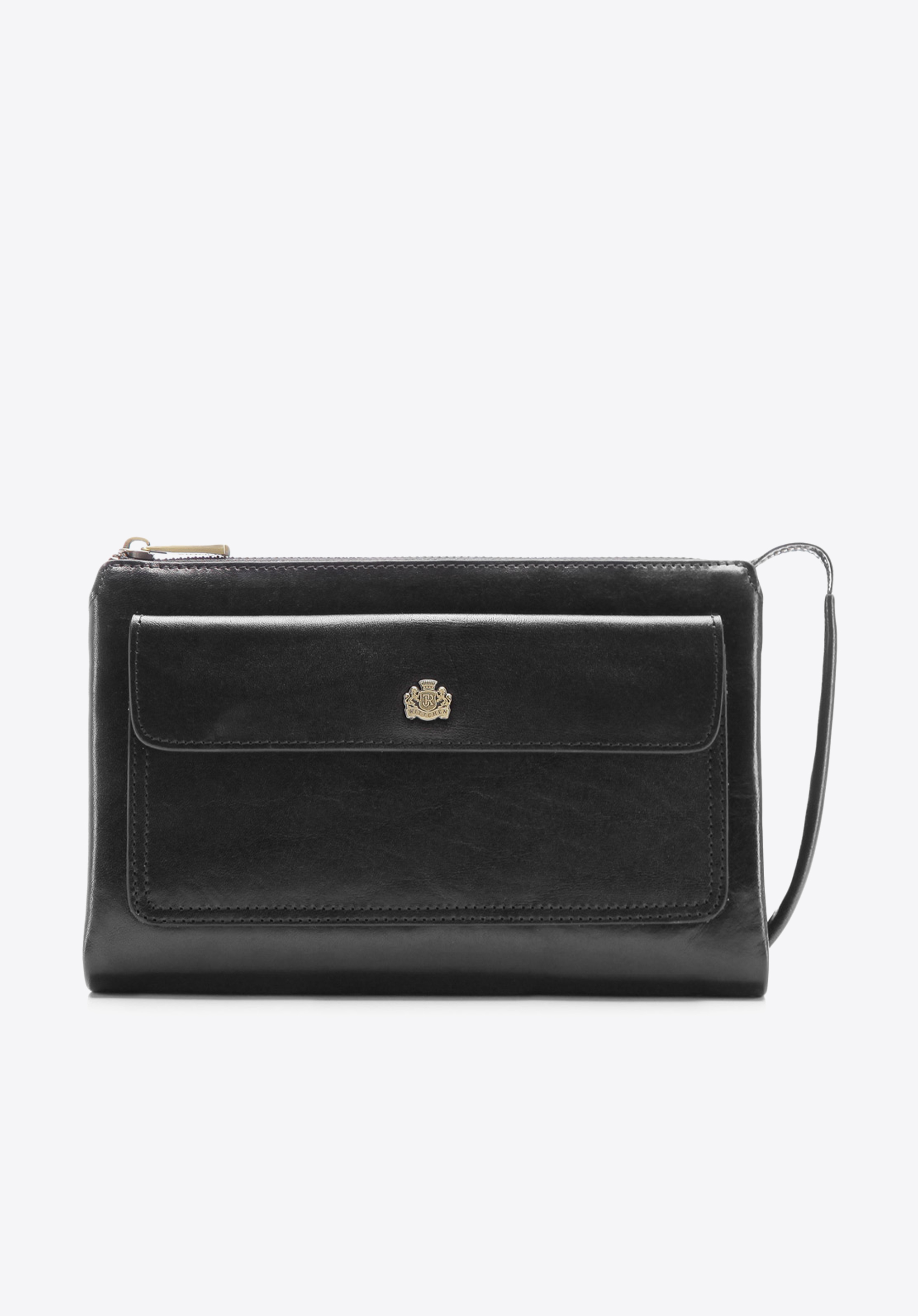 Saszetka do ręki ręcznie wykonana z najlepszej jakości, włoskiej skóry naturalnej z widocznym jarzmowaniem. Model z kolekcji Arizona przyciągnie uwagę osób ceniących ekskluzywny design i doskonałą precyzję wykonania.