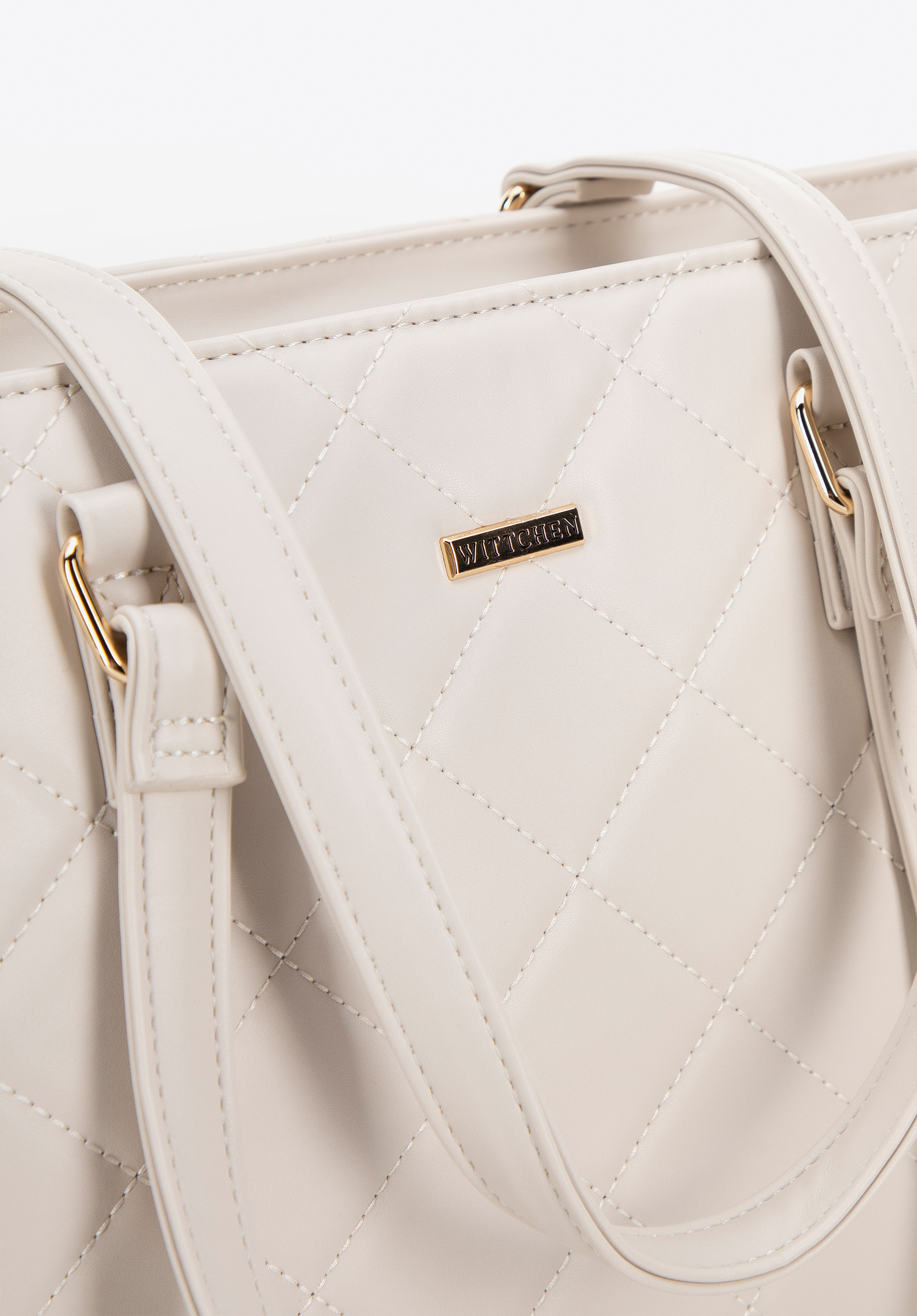 Shopperka z ekoskóry w pikowanie kremowa