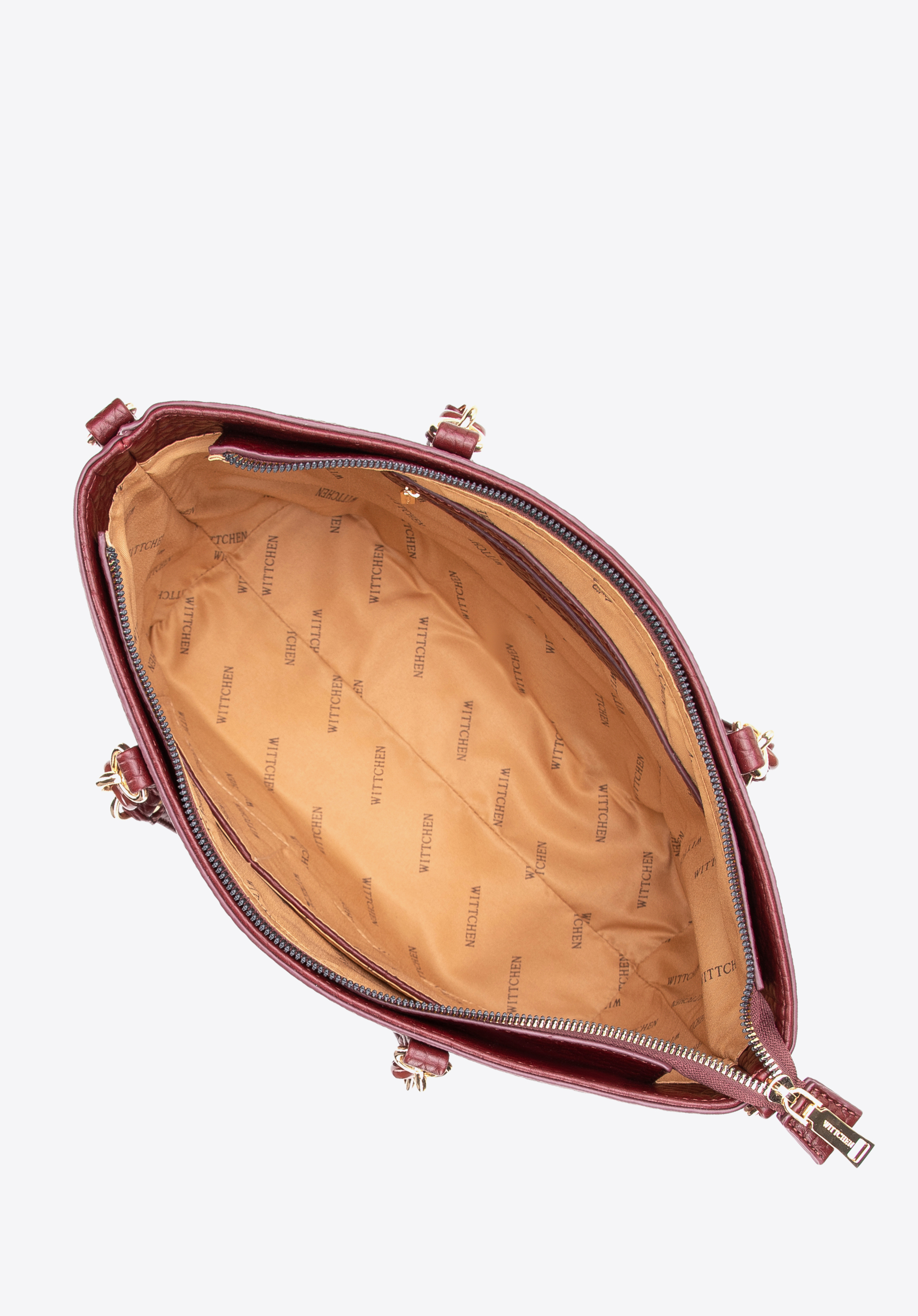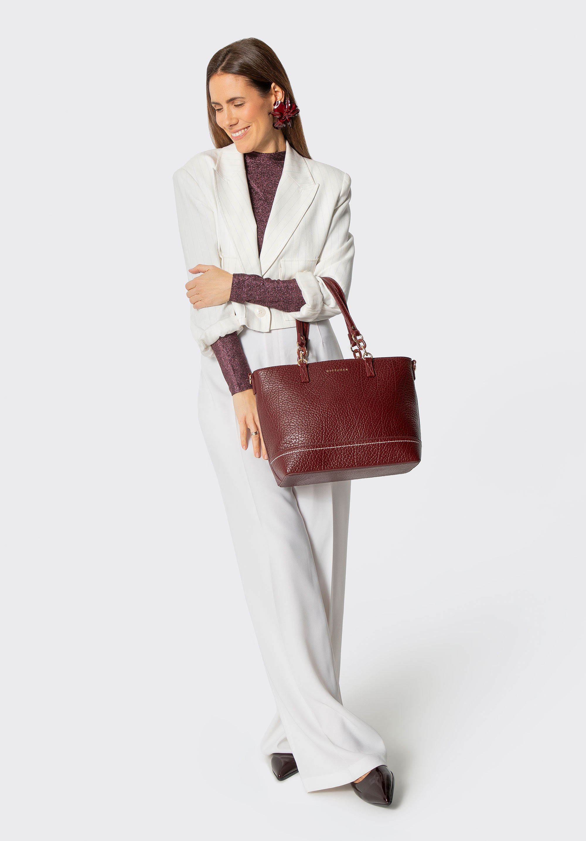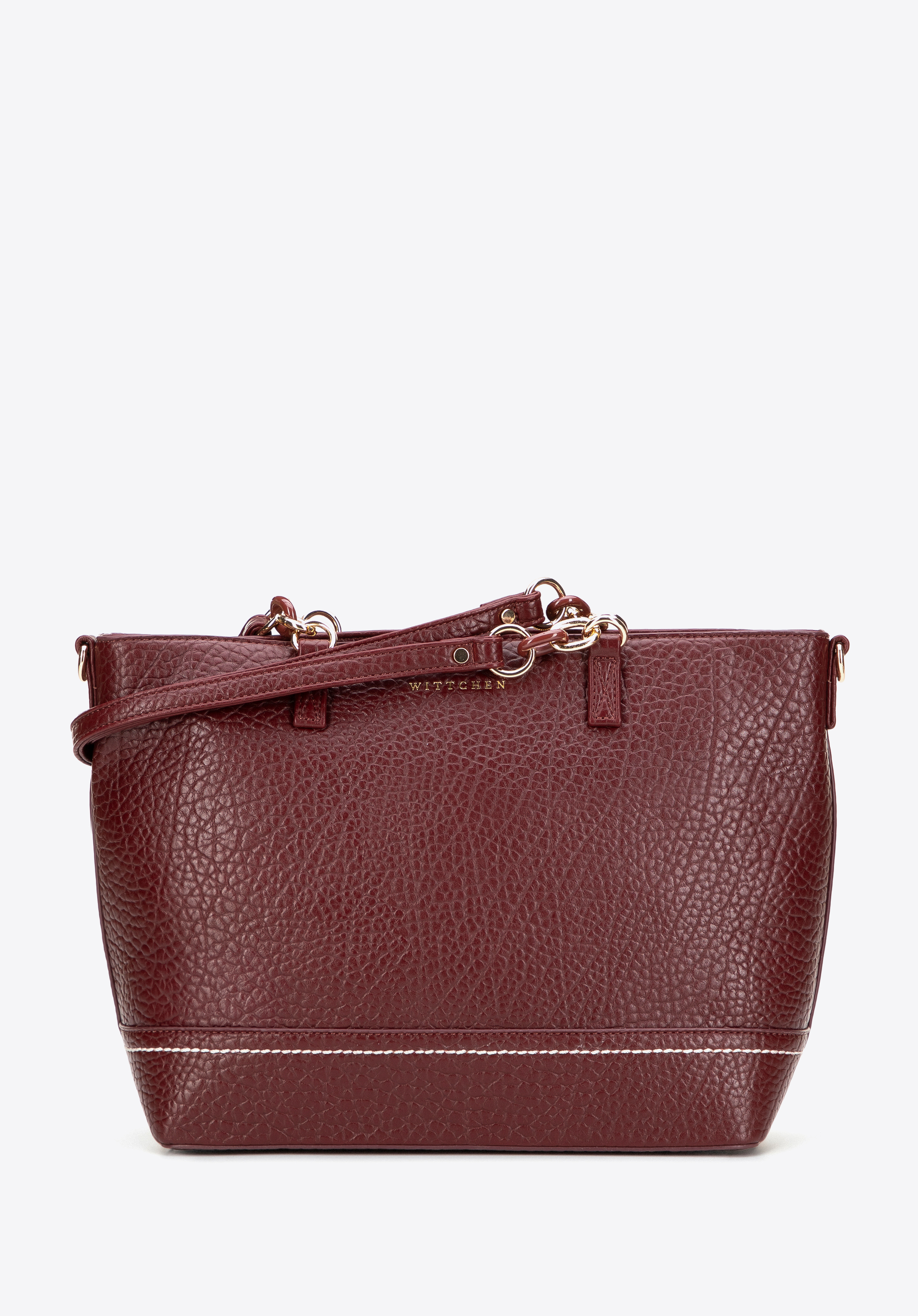 Shopperka z ekoskóry z dekoracyjnym elementem łańcuszka bordowa