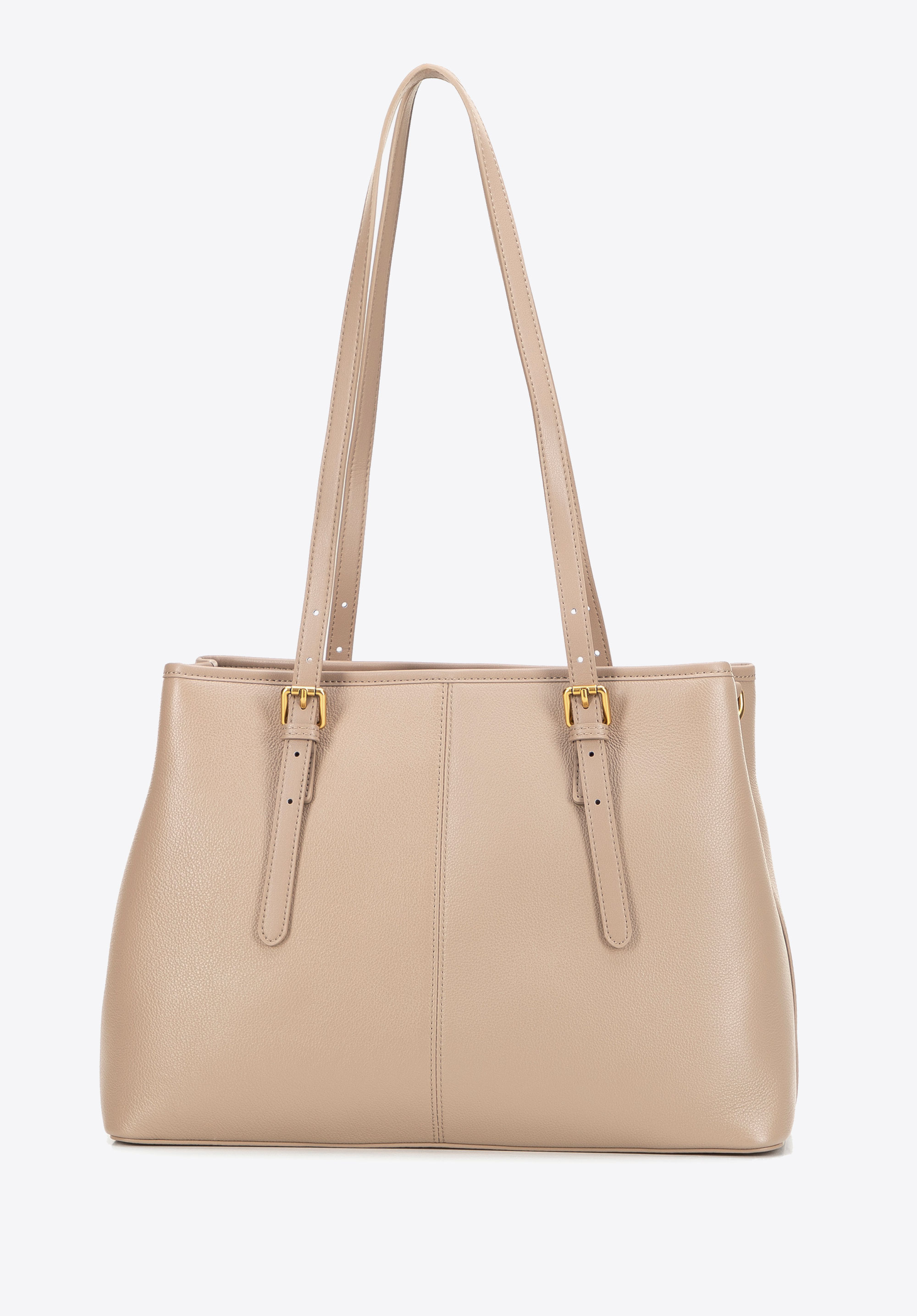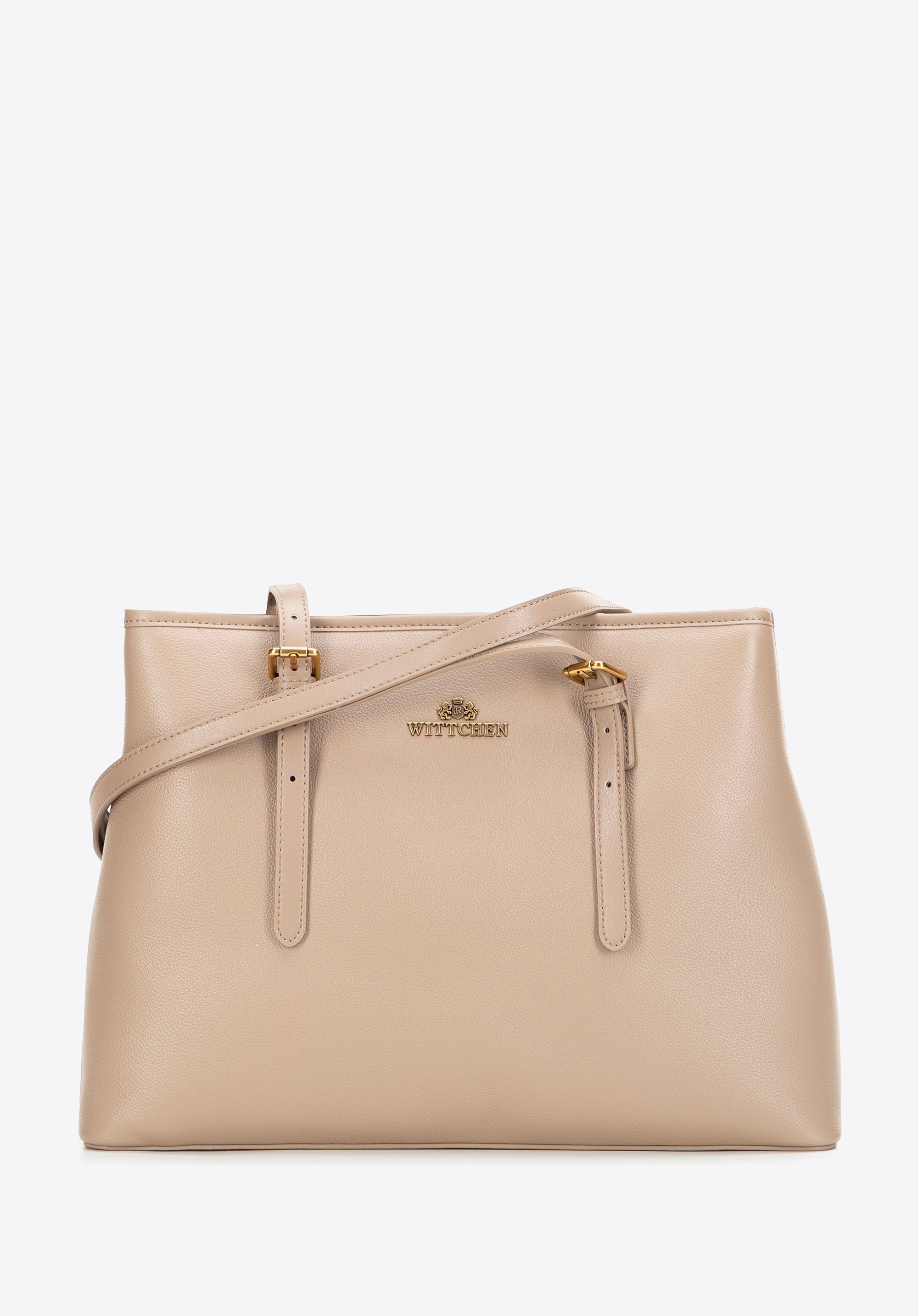 Shopperka ze skóry naturalnej z regulowanymi rączkami jest dla kobiet, które potrzebują torby gotowej na intensywny dzień: praca, spotkania, miasto. Regulowane rączki i dopracowane wnętrze z dwiema komorami pomagają dopasować noszenie do sylwetki i lepiej zorganizować codzienne rzeczy.