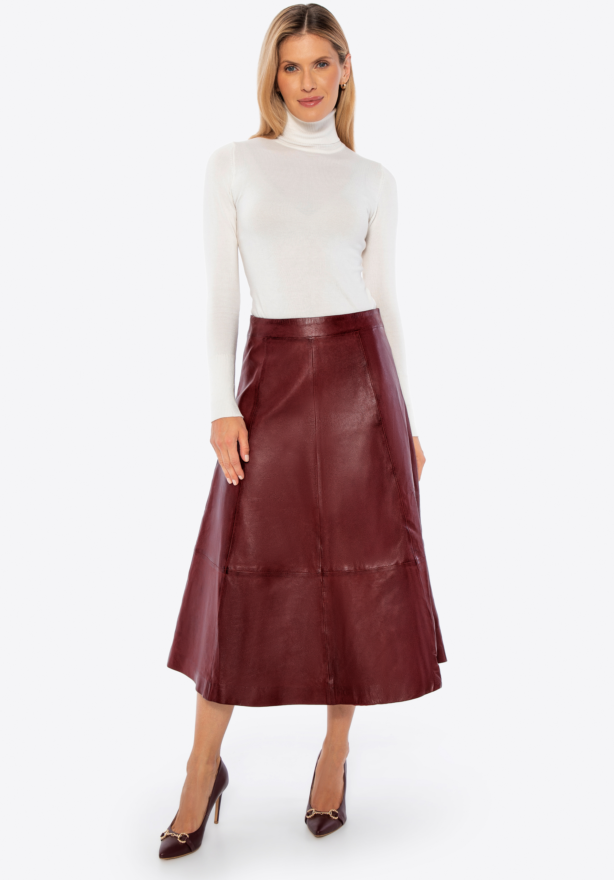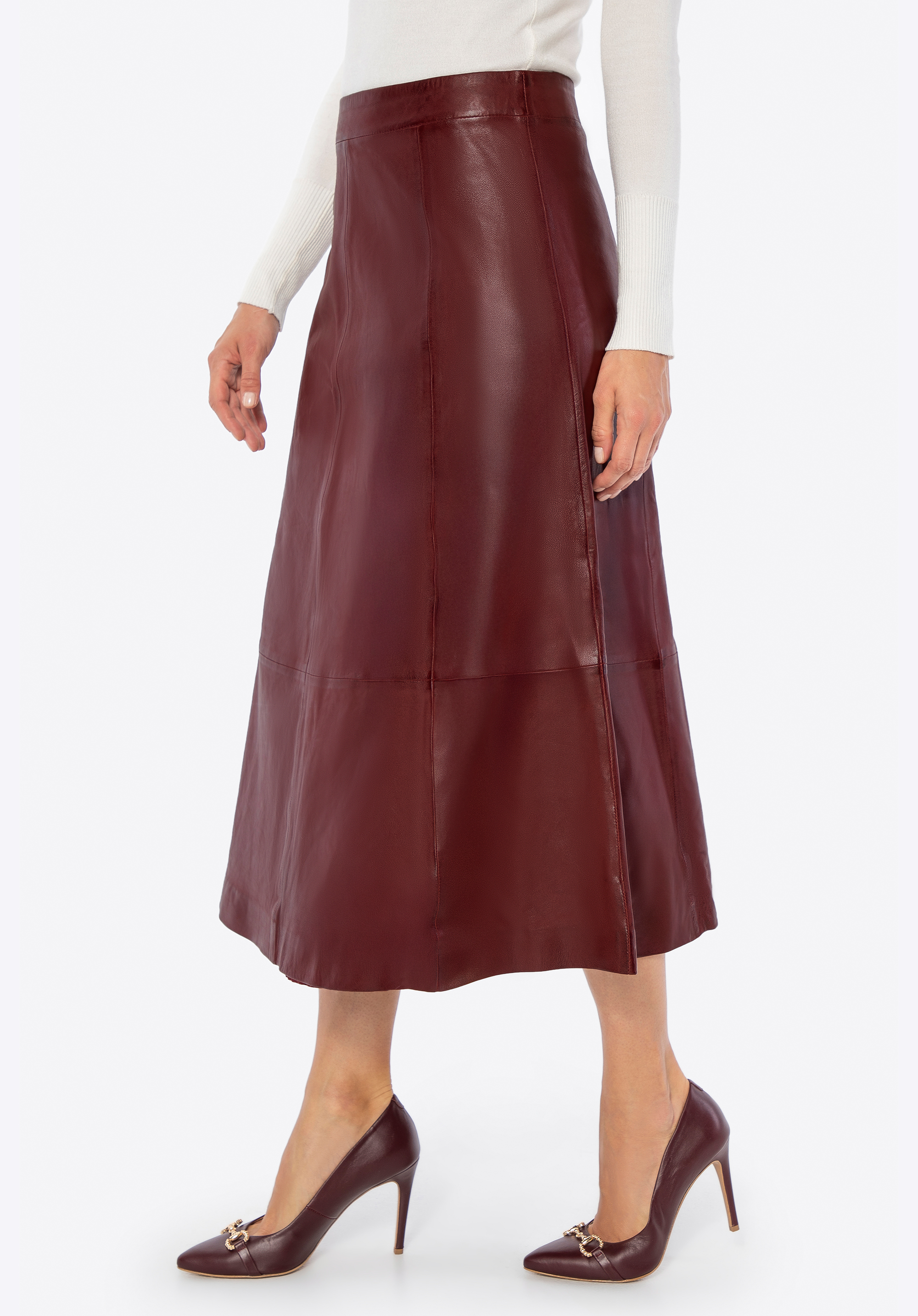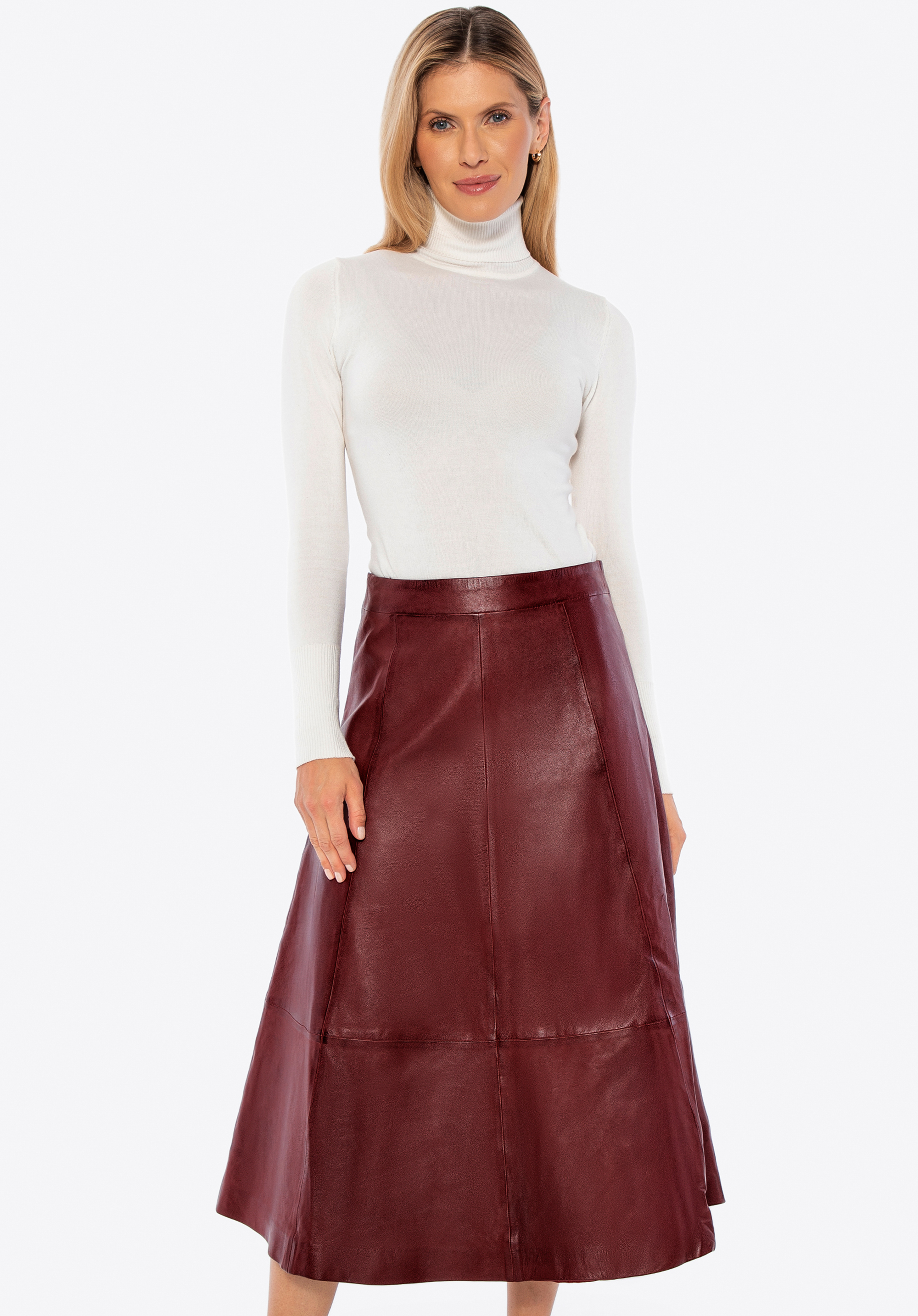Skórzana spódnica midi to ponadczasowy element garderoby dla kobiet ceniących elegancję i wyraziste materiały. Naturalna skóra i długość midi tworzą stylową bazę zarówno do biurowych, jak i wieczorowych stylizacji.