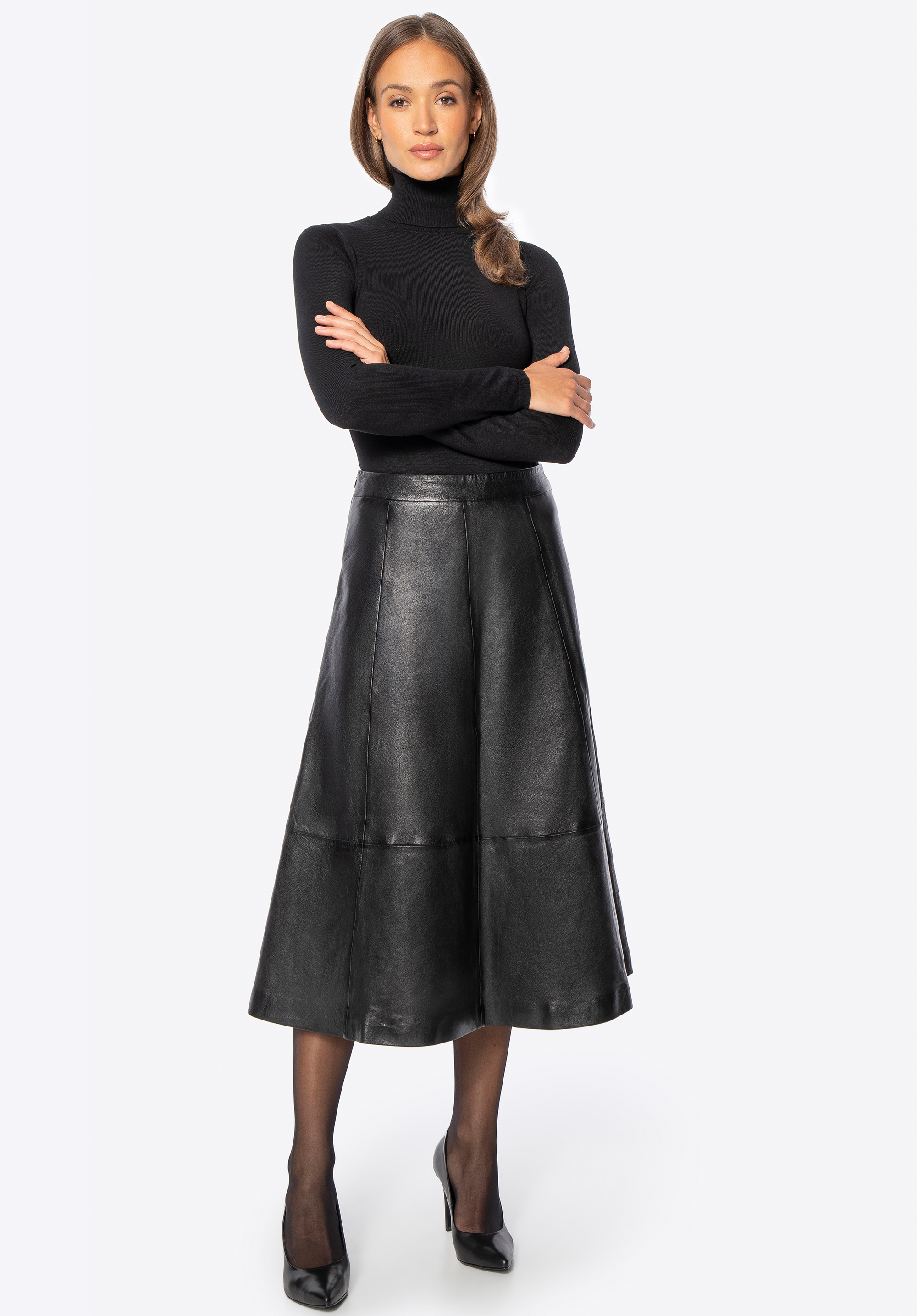 Skórzana spódnica midi czarna