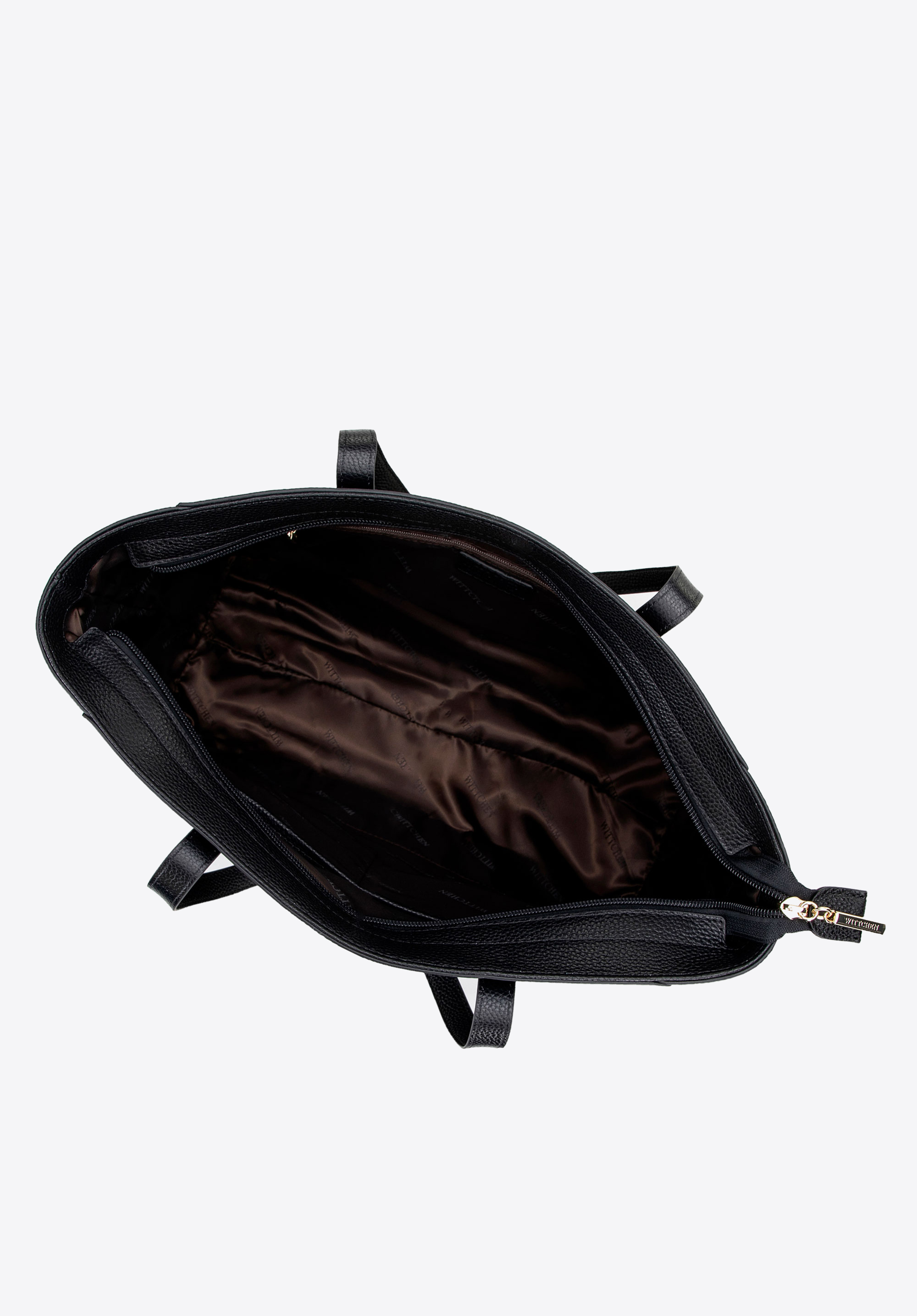 Nasza torebka shopper to połączenie elegancji i funkcjonalności w jednym. Wykonana ze skóry naturalnej, łączy klasyczny design z nowoczesnymi rozwiązaniami, które sprawiają, że staje się niezastąpionym elementem każdej garderoby. Dzięki przestronnemu wnętrzu, które z łatwością pomieści dokumenty w formacie A4 czy książki, torebka idealnie sprawdzi się zarówno w pracy, jak i na co dzień.