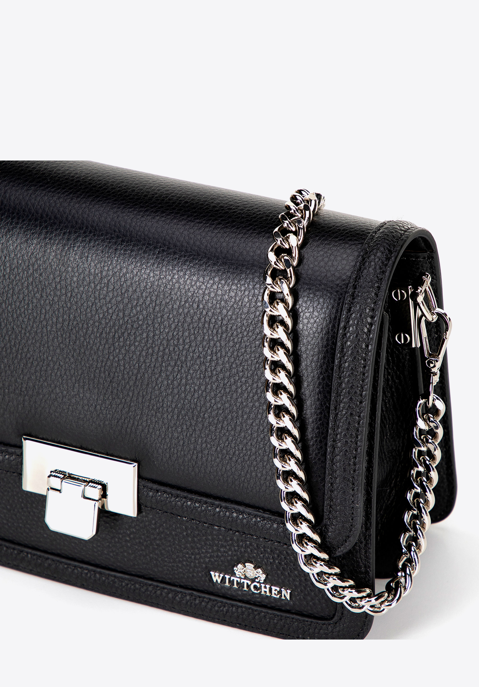 Skórzana torebka crossbody z regulowanym paskiem i odpinanym łańcuszkiem