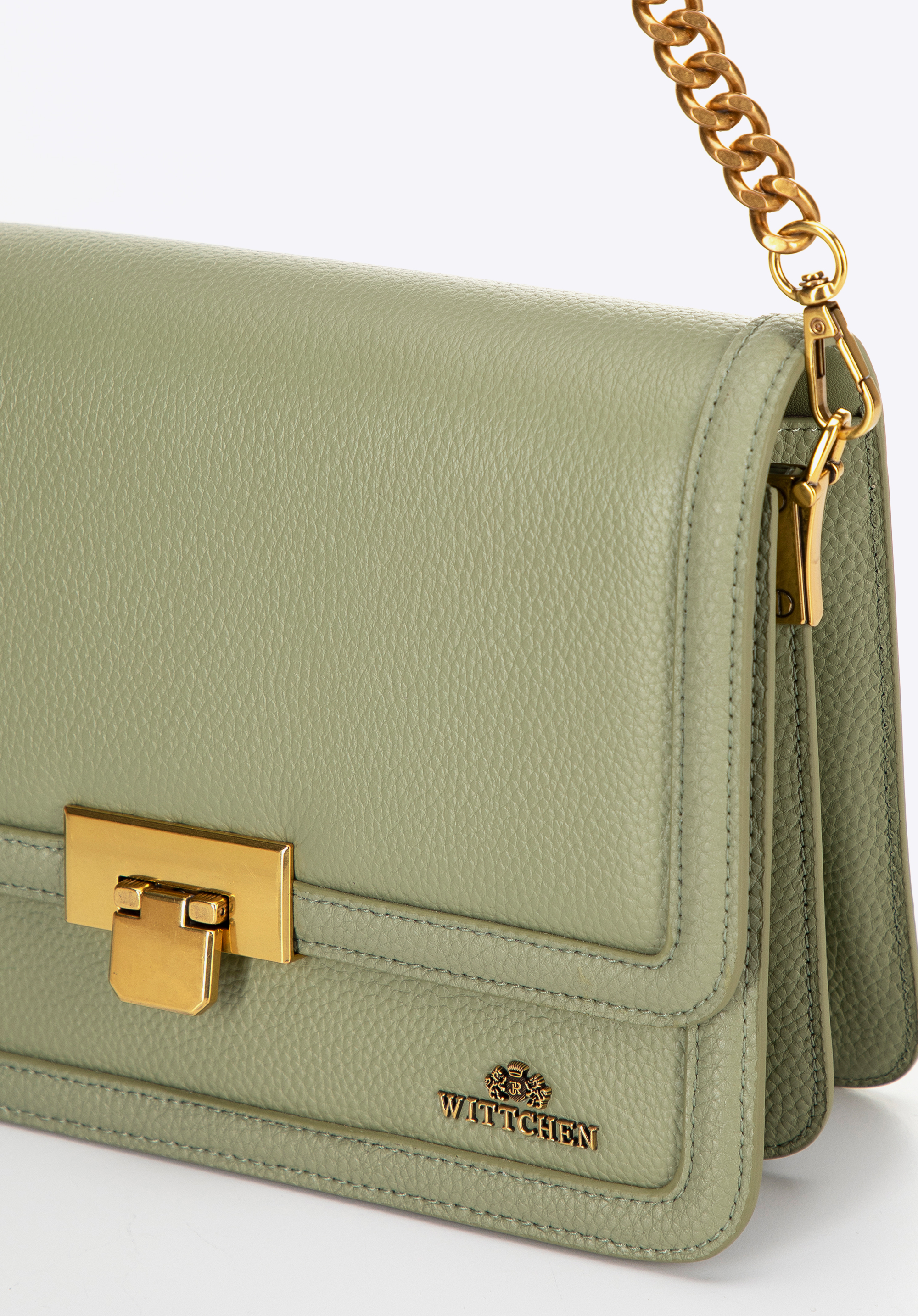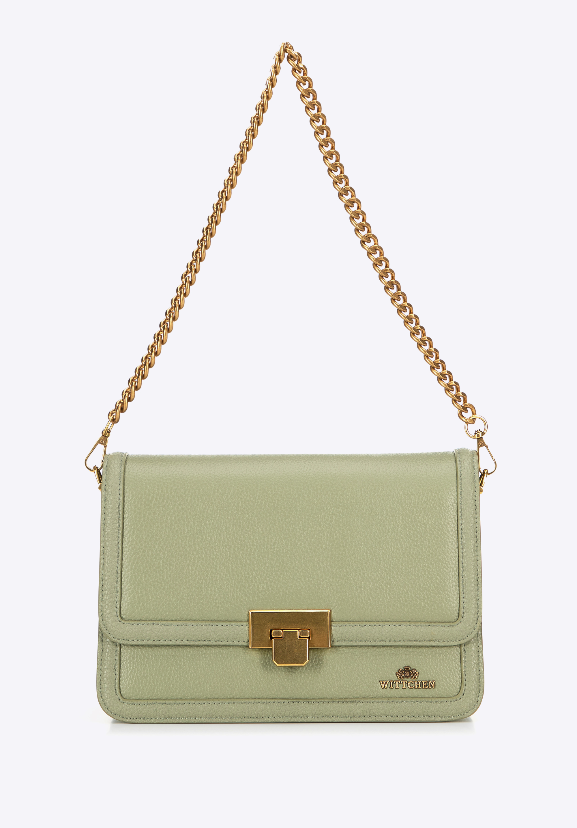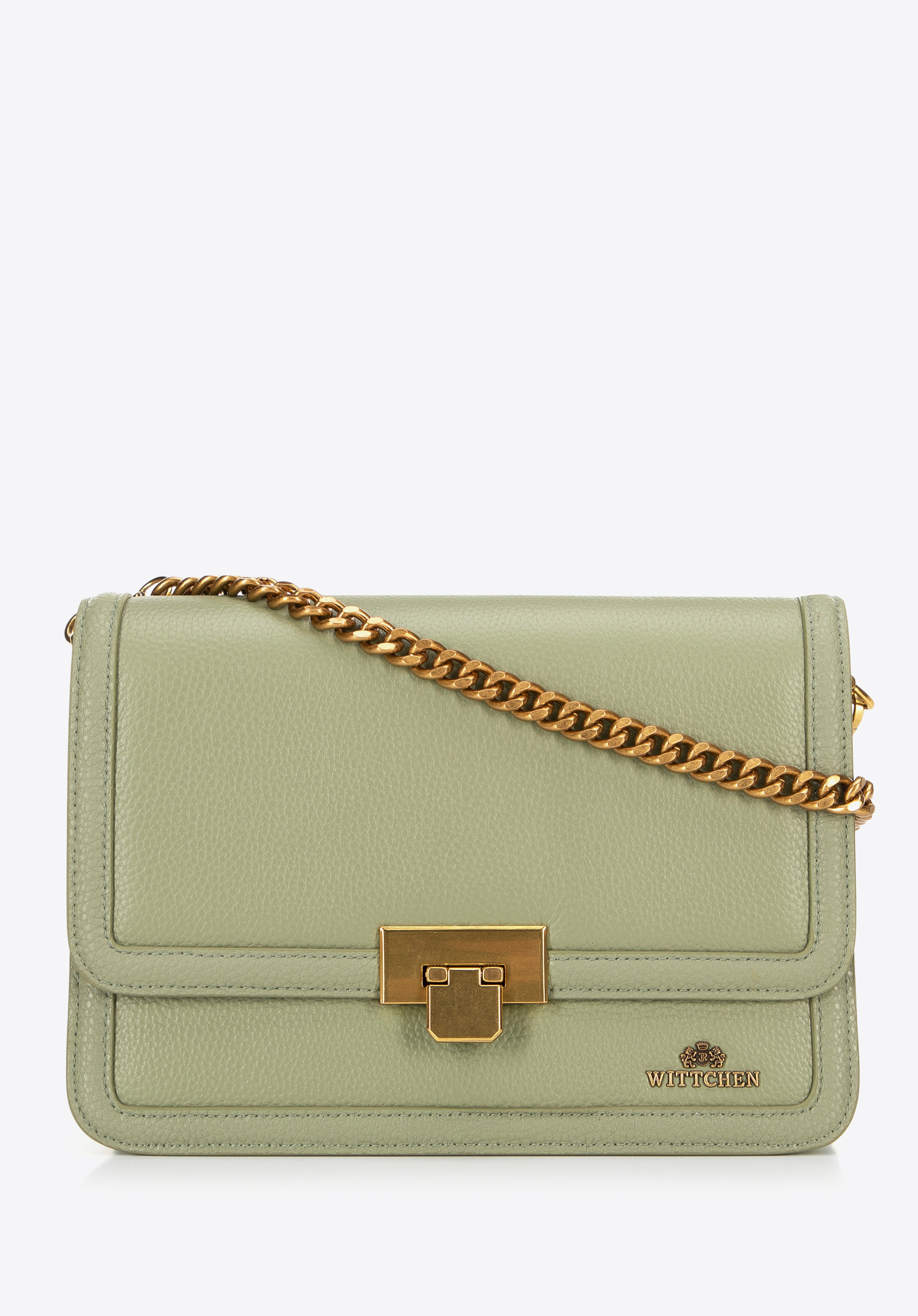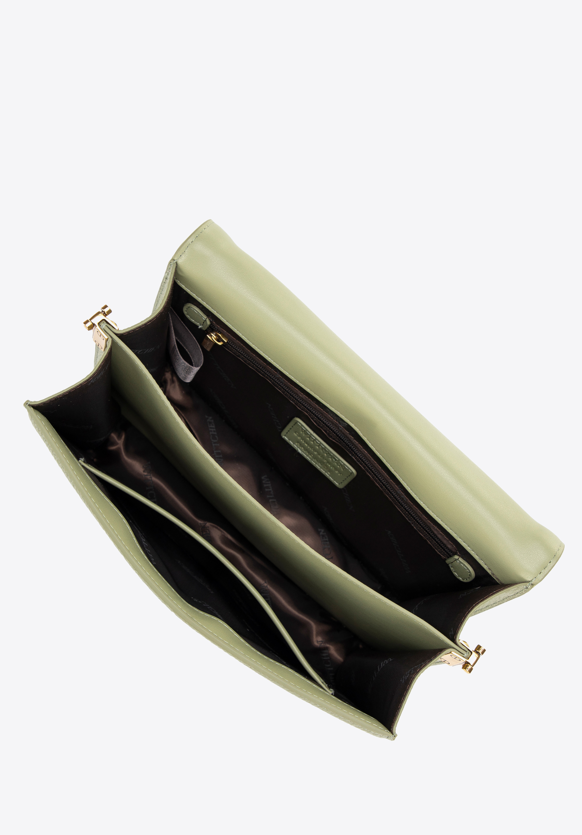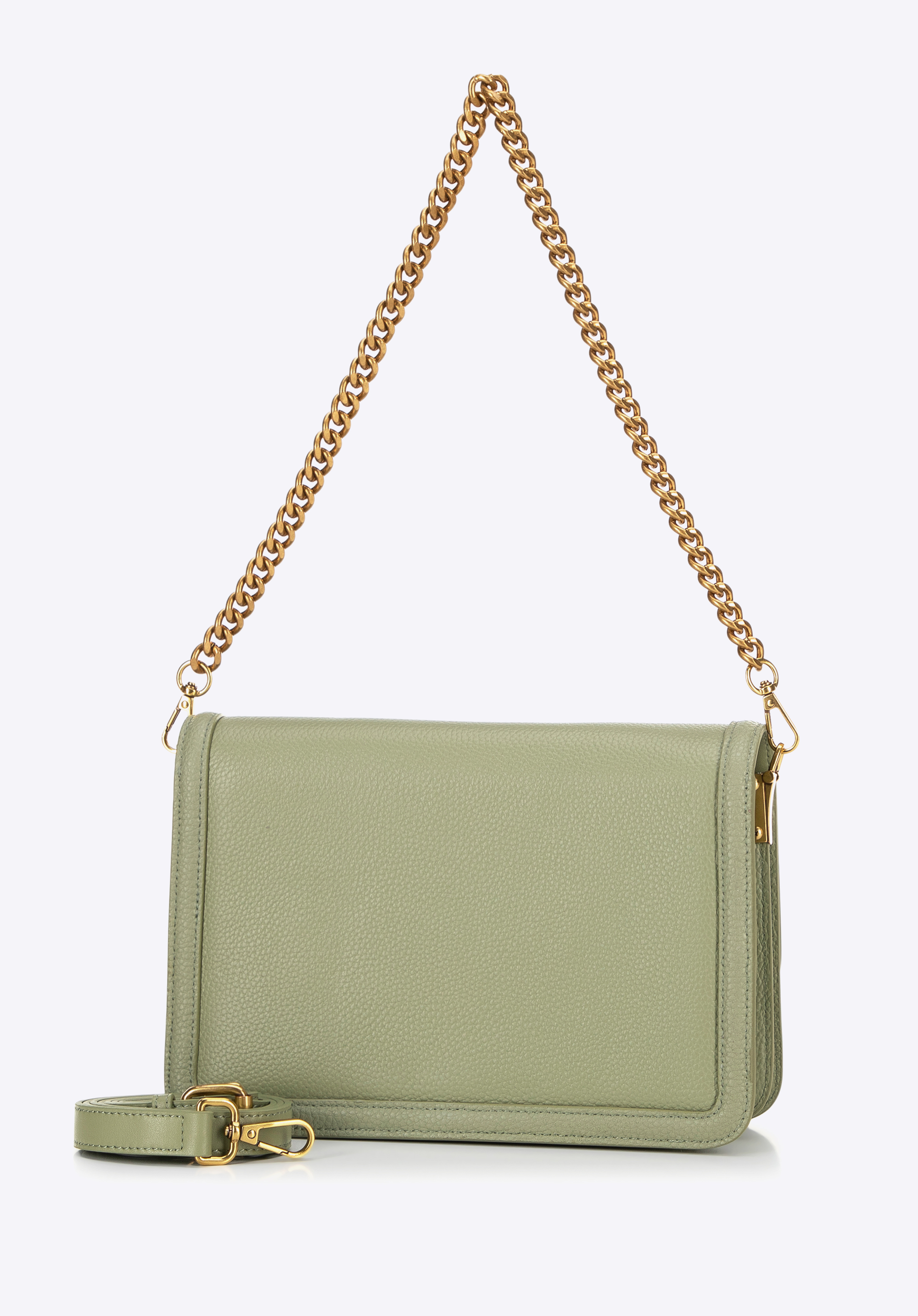 Skórzana torebka crossbody z łańcuszkiem pistacjowa