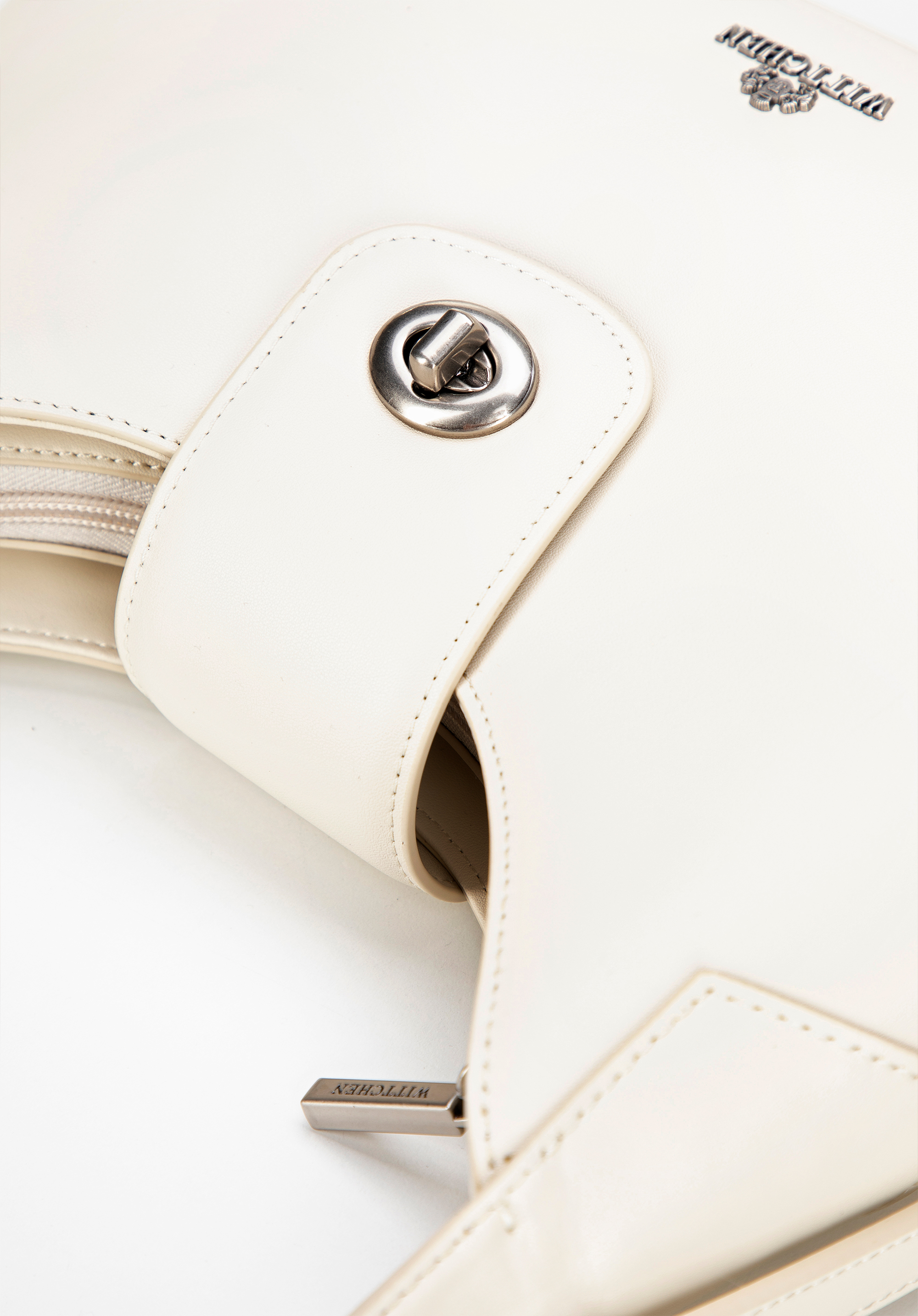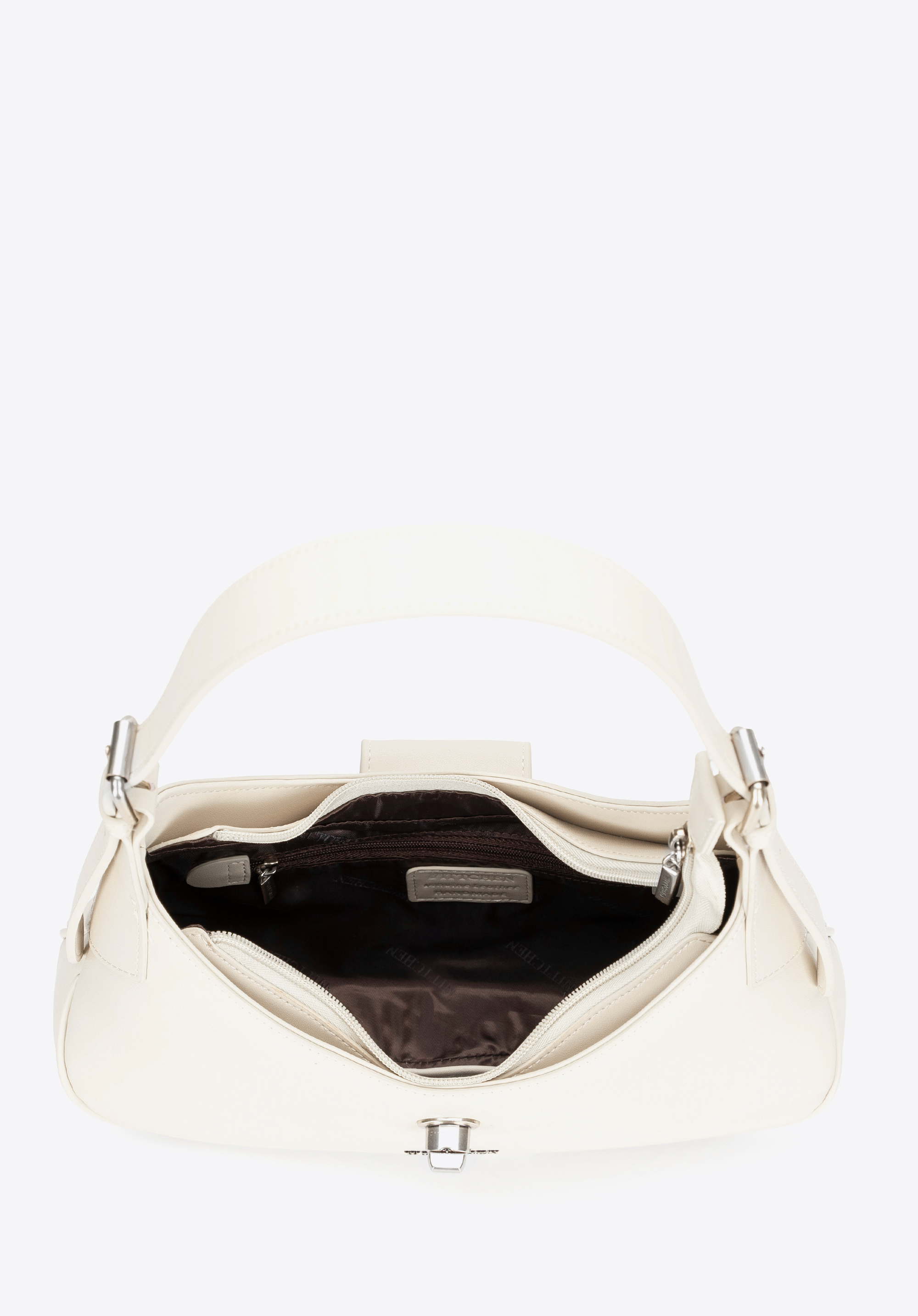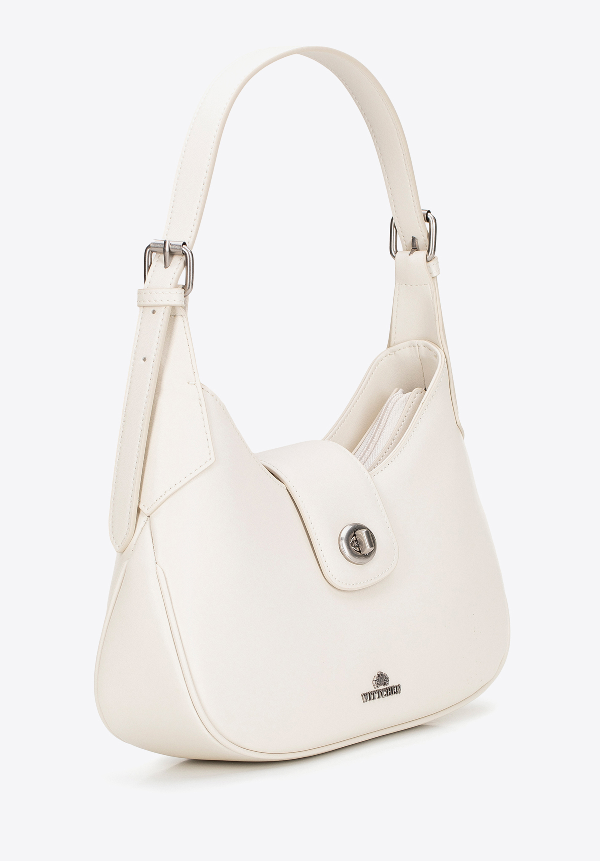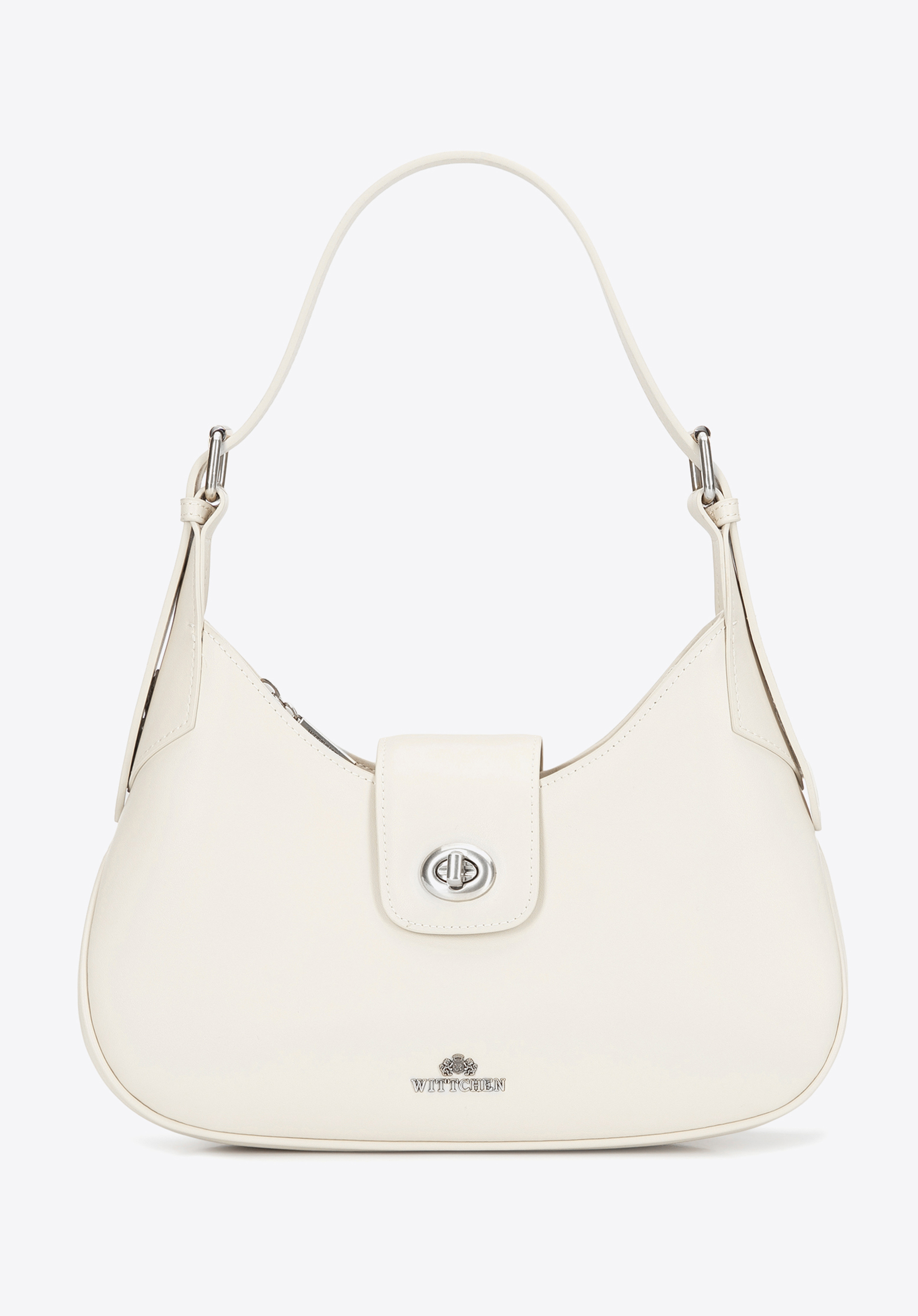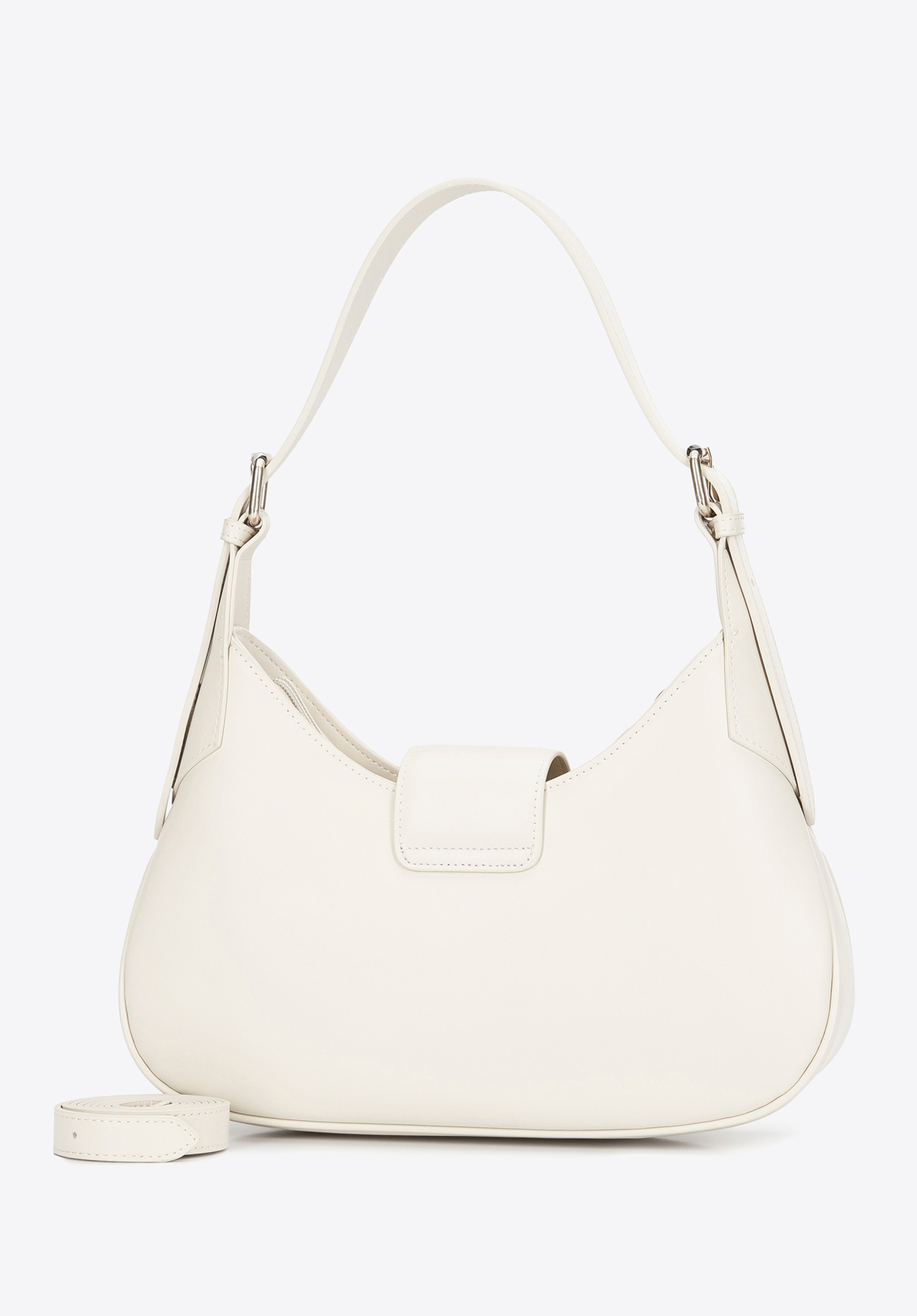 Skórzana torebka na ramię z odpinanym paskiem kremowo - srebrna