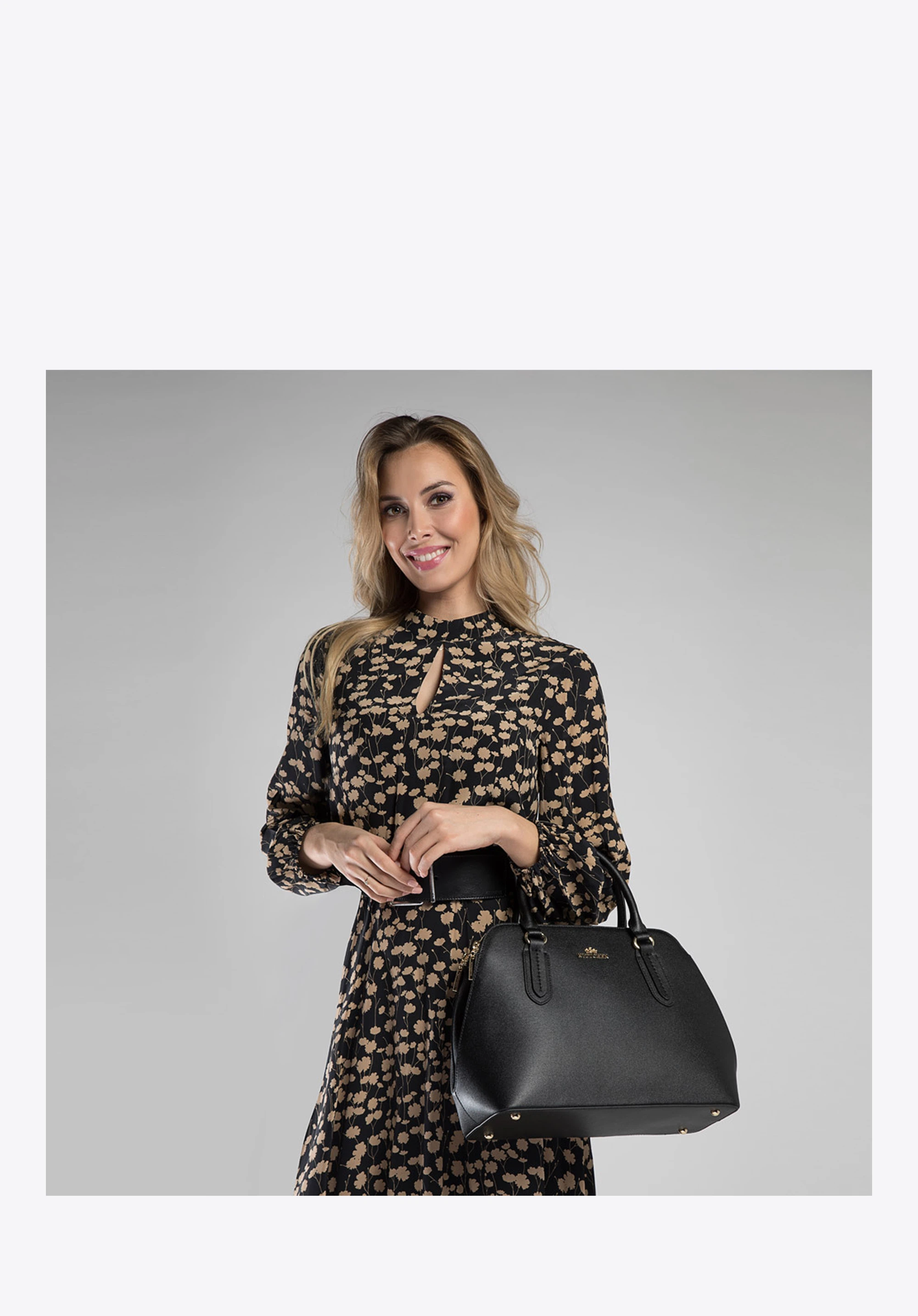 ze sztywnej skóry naturalnej o interesującej strukturze, zachwyca ponadczasowym stylem. Szykowne akcesorium ma wiele praktycznych zalet, takich jak: zorganizowane wnętrze, wygodne uchwyty, odpinany pasek czy usztywnione dno.