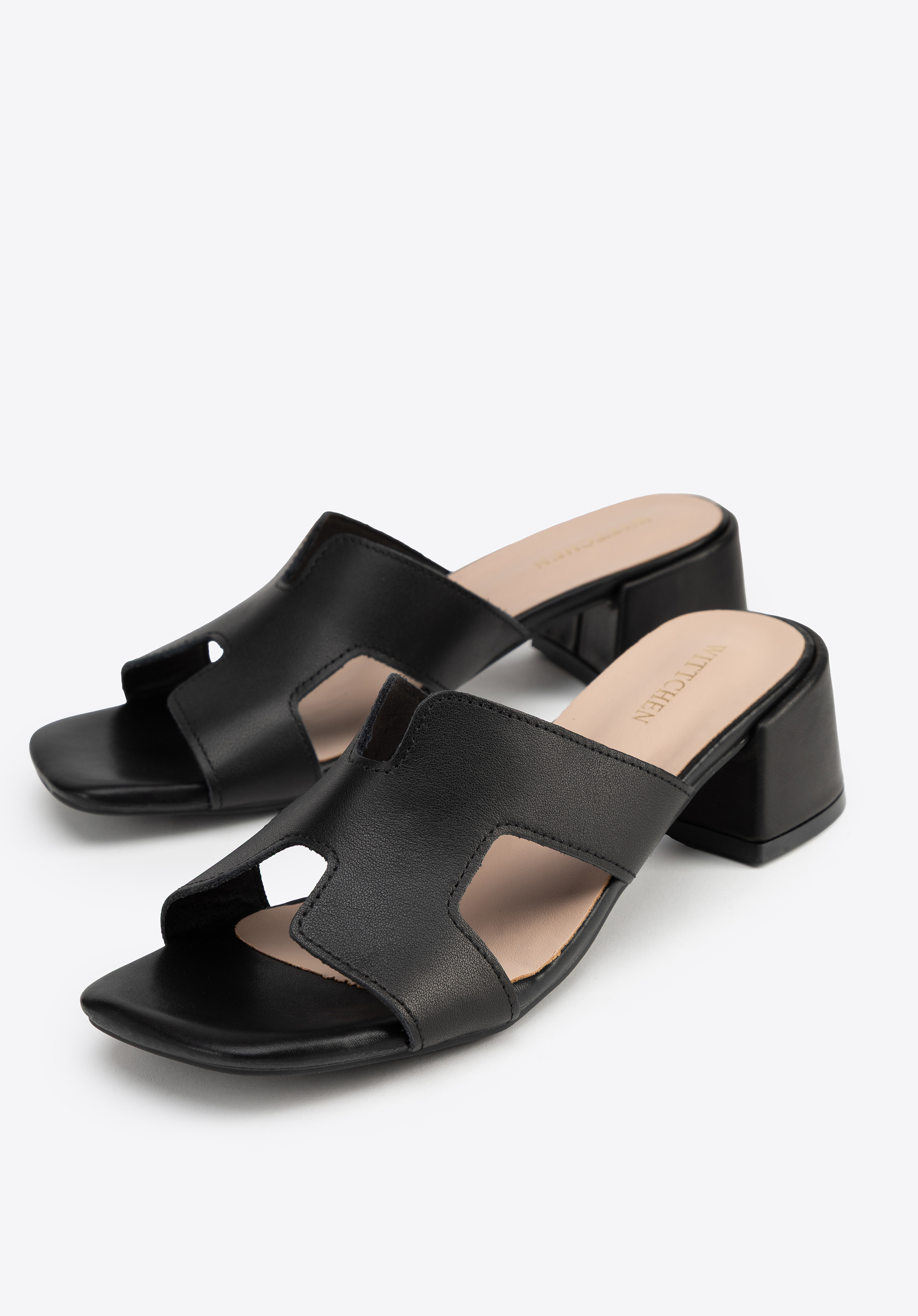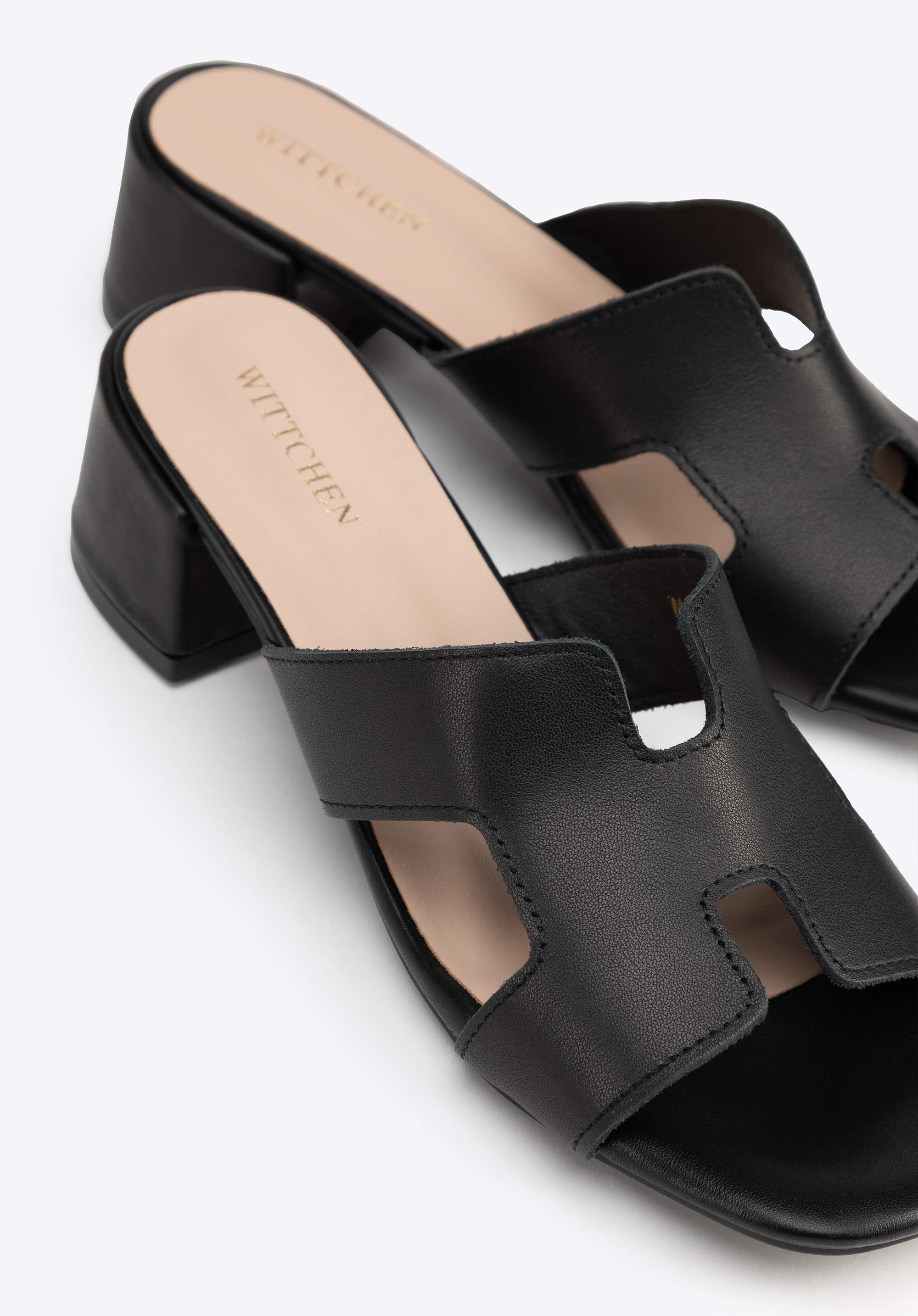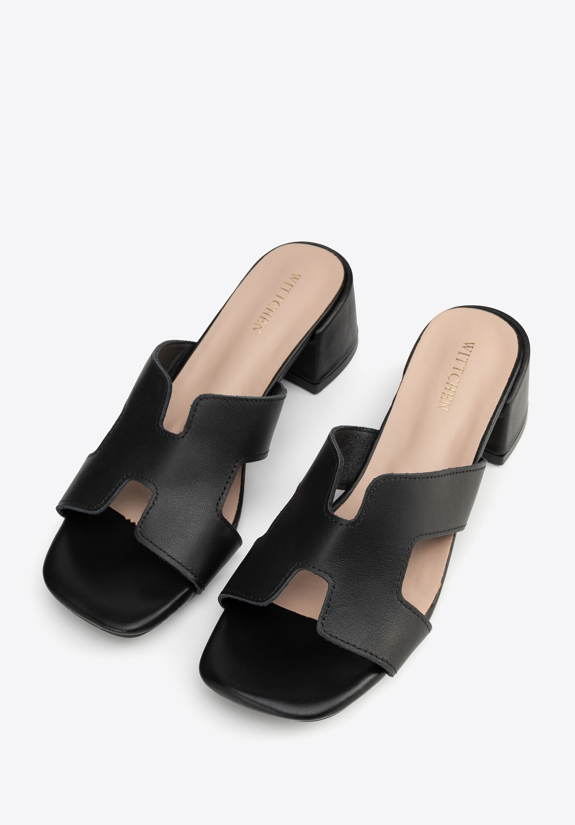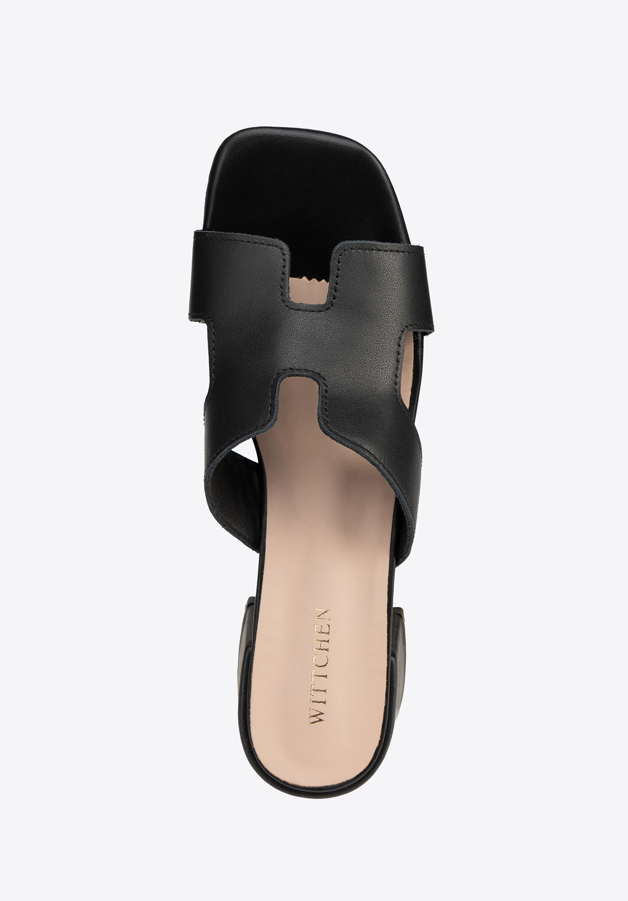 Połączenie nowoczesnego designu i ponadczasowej elegancji – te skórzane klapki na słupku to synonim luksusu, który łączy komfort z modnym stylem. Wycięcie w kształcie litery „H” subtelnie eksponuje stopę, nadając jej smukły wygląd, a jednocześnie wprowadza do projektu odrobinę geometrycznej dynamiki. Wysokiej jakości naturalna skóra otula stopy miękkością, zapewniając wygodę przez cały dzień, a precyzyjne wykończenie dodaje eleganckiego charakteru. Obcas słupek łączy stabilność z odrobiną wysokości, podkreślając nowoczesny, ale elegancki wygląd.