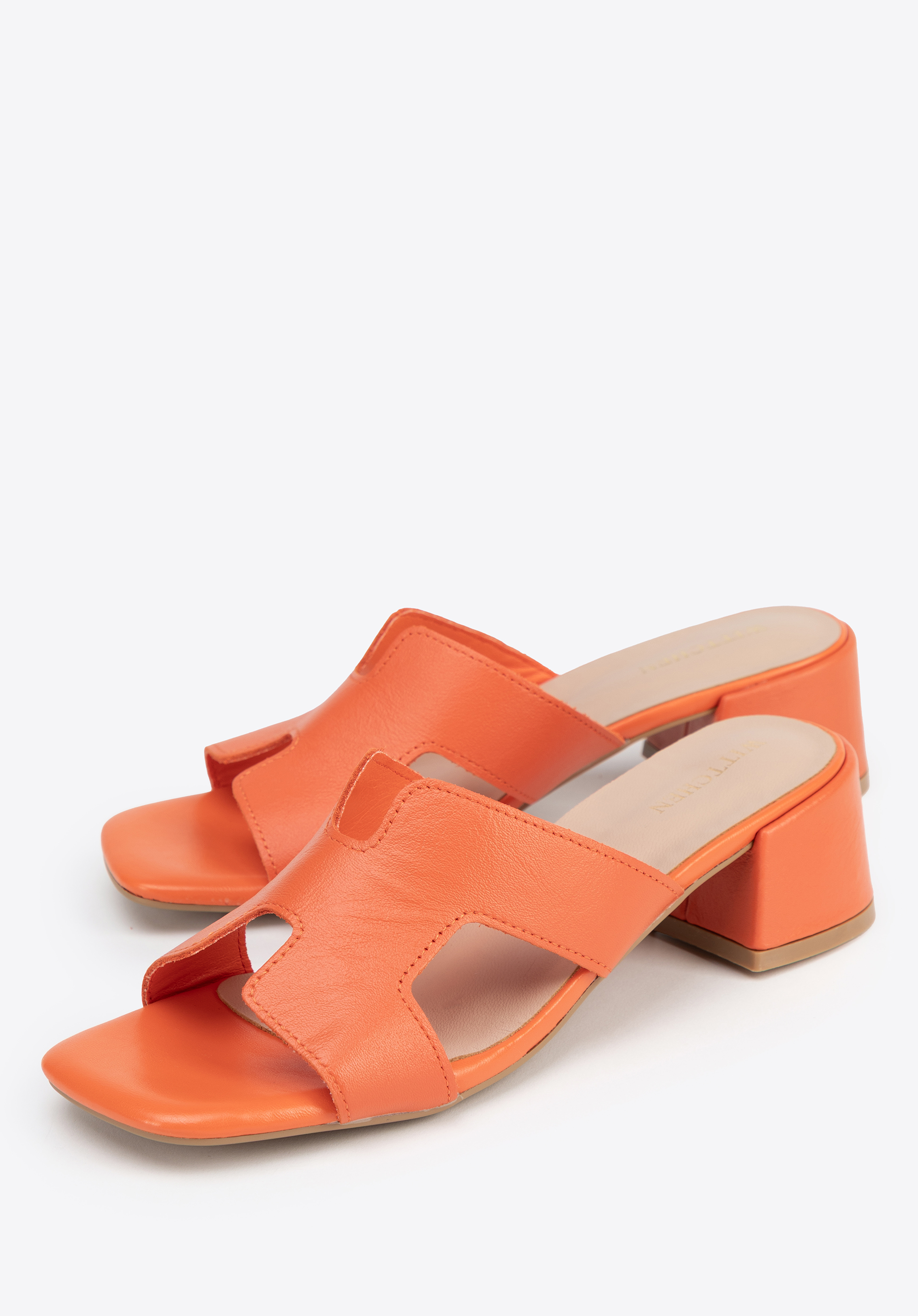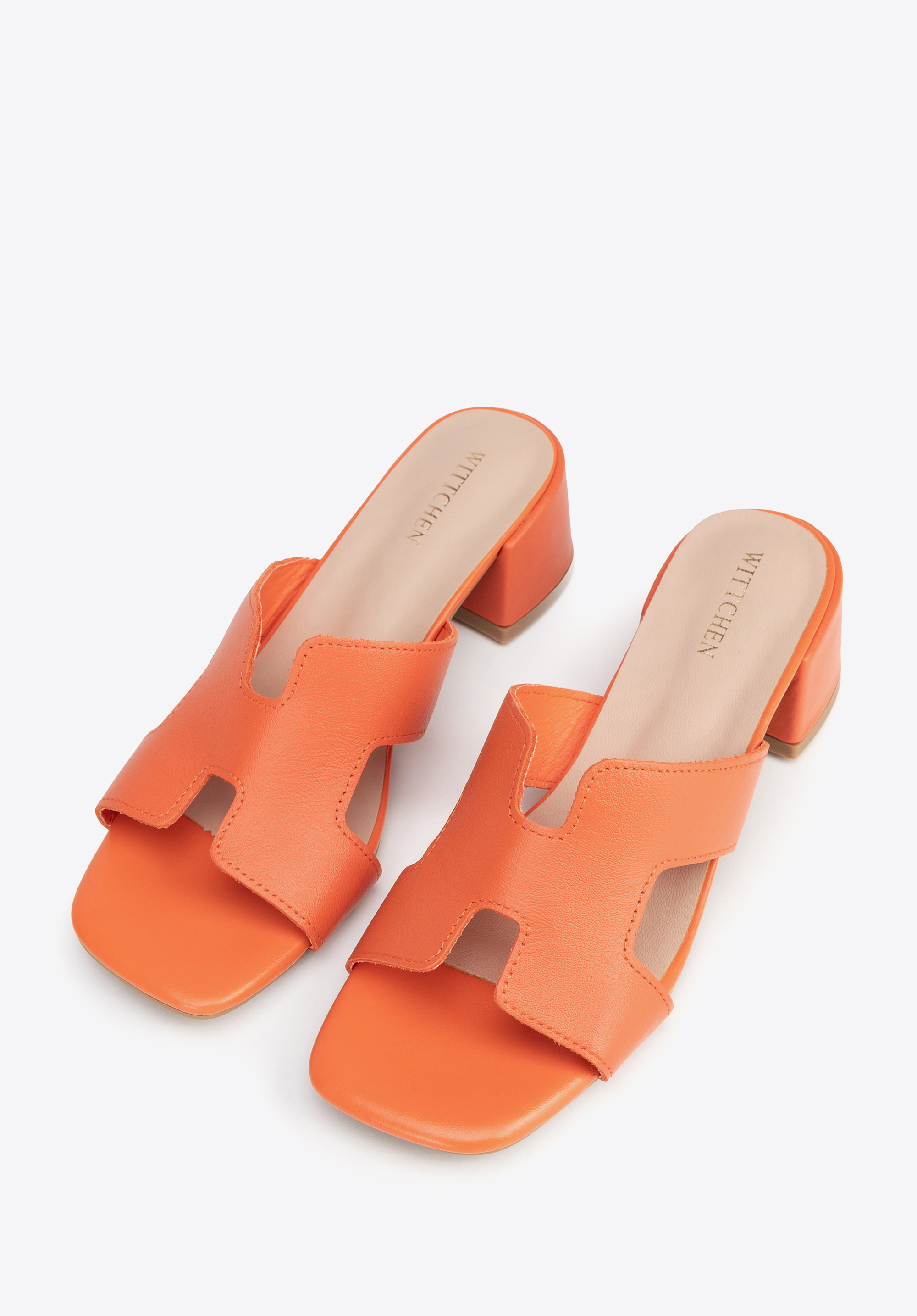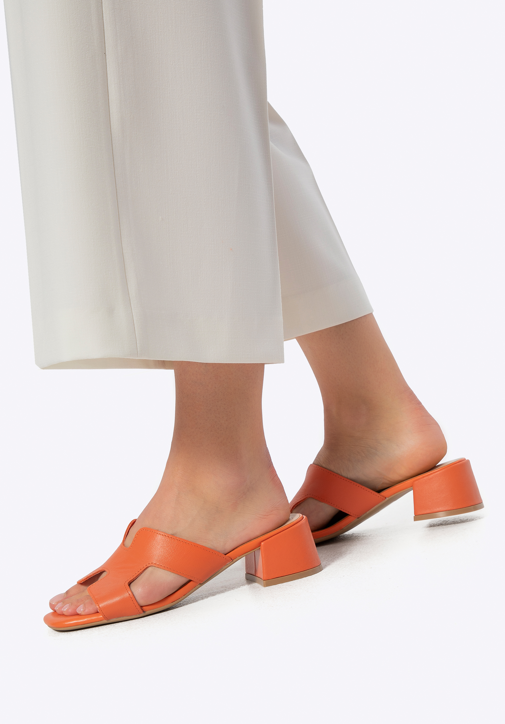 Połączenie nowoczesnego designu i ponadczasowej elegancji – te skórzane klapki na słupku to synonim luksusu, który łączy komfort z modnym stylem. Wycięcie w kształcie litery „H” subtelnie eksponuje stopę, nadając jej smukły wygląd, a jednocześnie wprowadza do projektu odrobinę geometrycznej dynamiki. Wysokiej jakości naturalna skóra otula stopy miękkością, zapewniając wygodę przez cały dzień, a precyzyjne wykończenie dodaje eleganckiego charakteru. Obcas słupek łączy stabilność z odrobiną wysokości, podkreślając nowoczesny, ale elegancki wygląd.