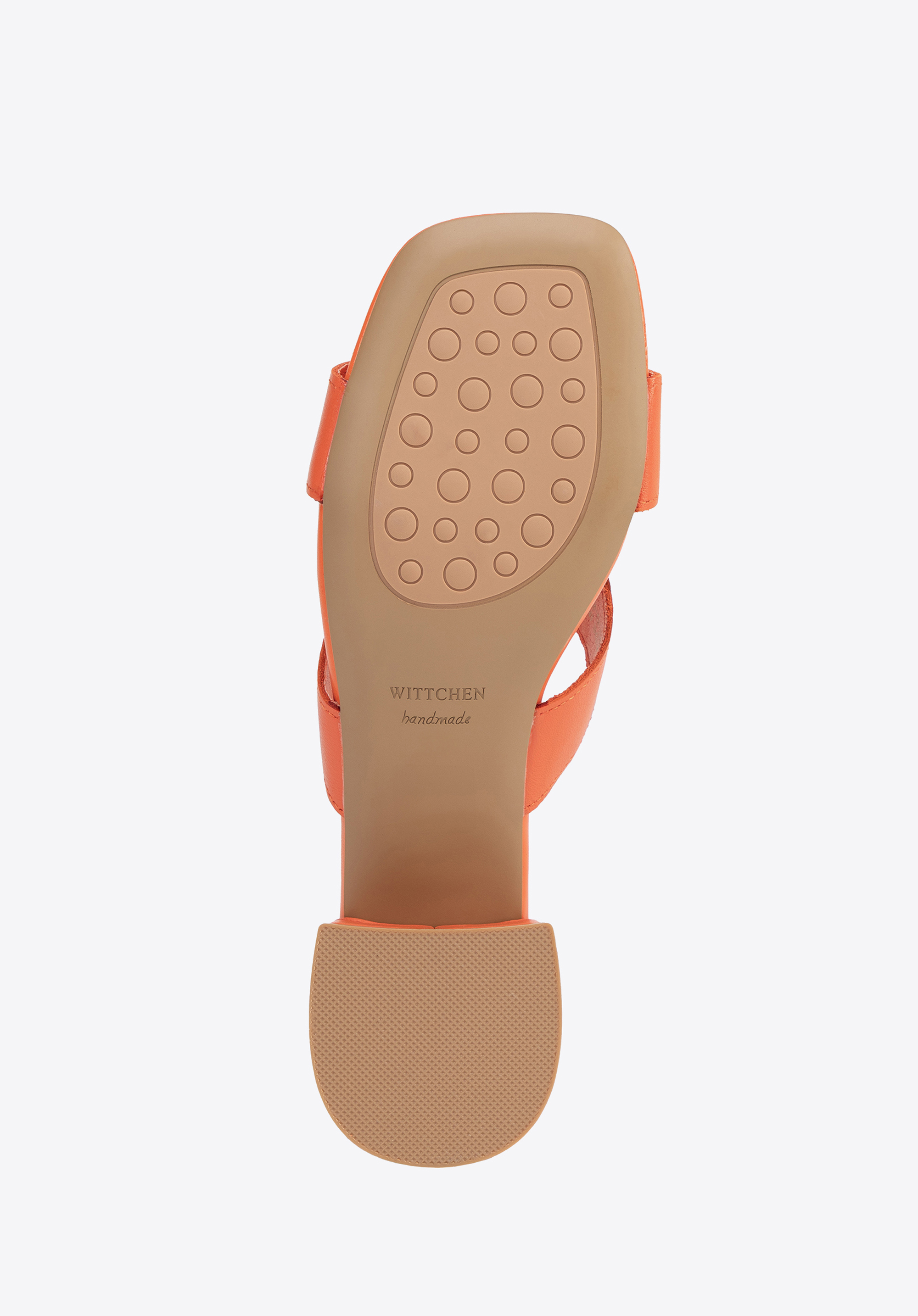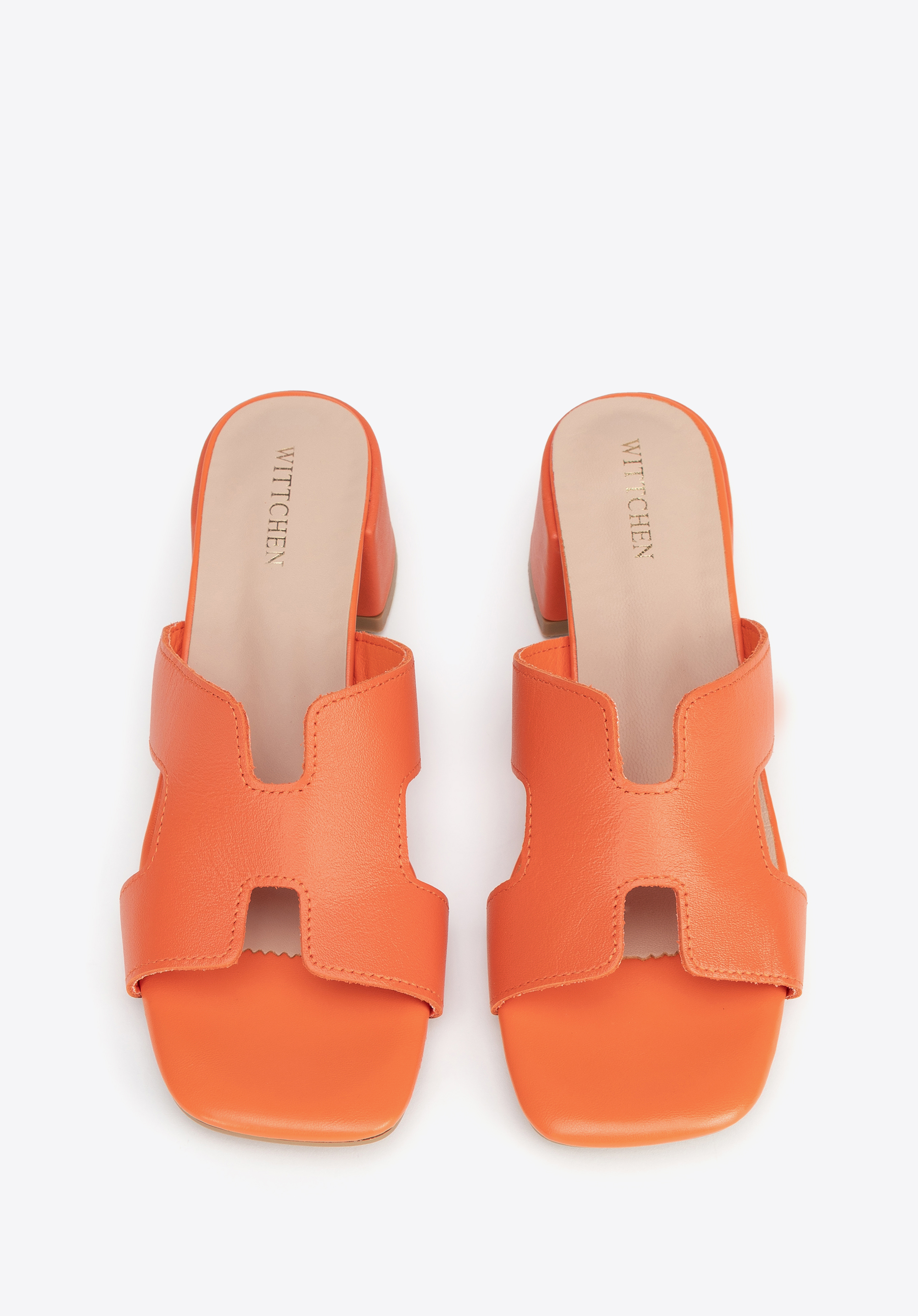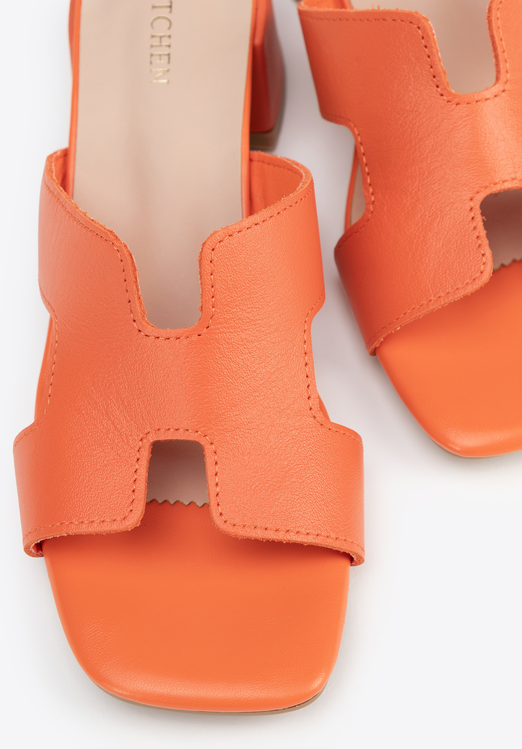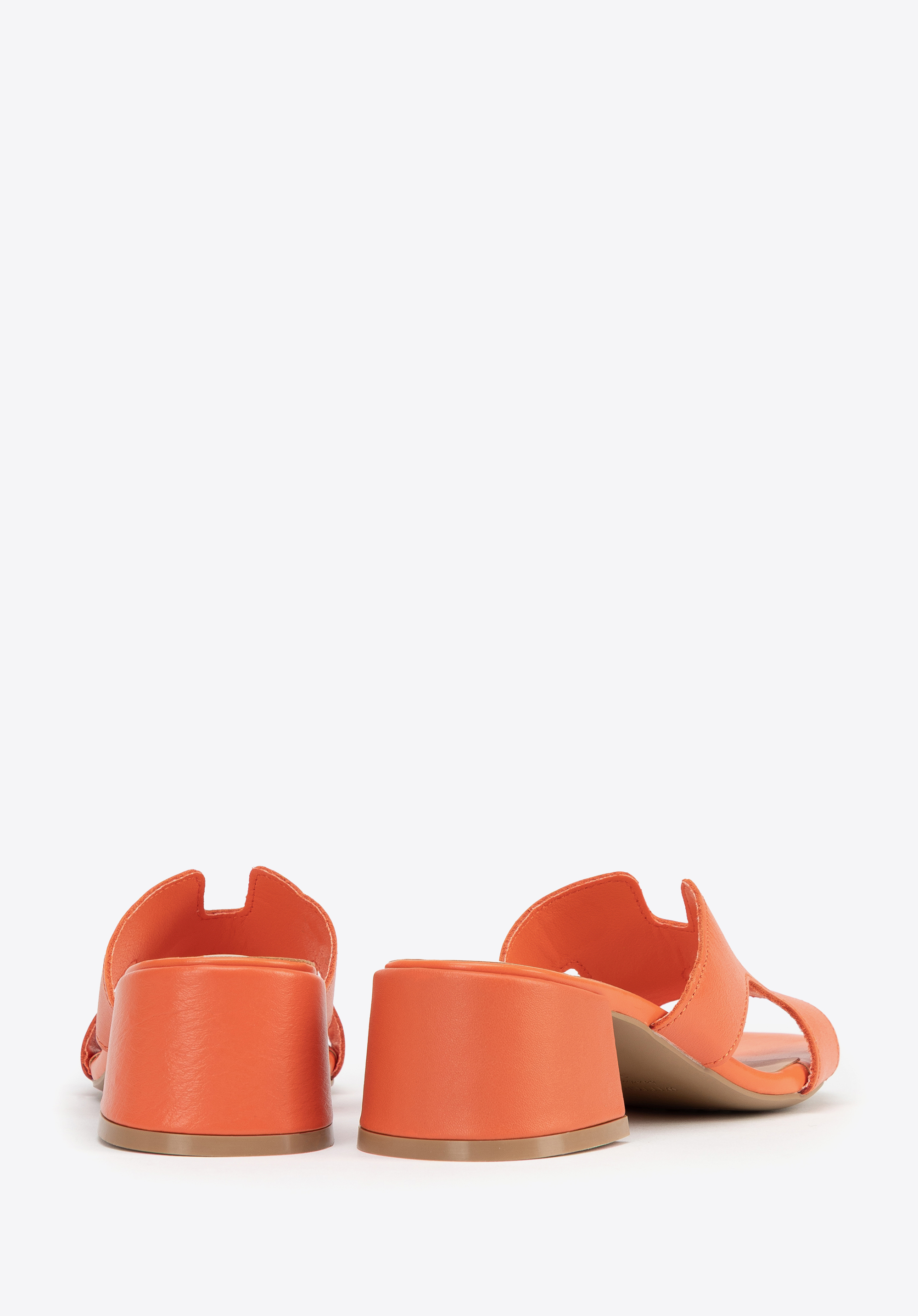 Połączenie nowoczesnego designu i ponadczasowej elegancji – te skórzane klapki na słupku to synonim luksusu, który łączy komfort z modnym stylem. Wycięcie w kształcie litery „H” subtelnie eksponuje stopę, nadając jej smukły wygląd, a jednocześnie wprowadza do projektu odrobinę geometrycznej dynamiki. Wysokiej jakości naturalna skóra otula stopy miękkością, zapewniając wygodę przez cały dzień, a precyzyjne wykończenie dodaje eleganckiego charakteru. Obcas słupek łączy stabilność z odrobiną wysokości, podkreślając nowoczesny, ale elegancki wygląd.