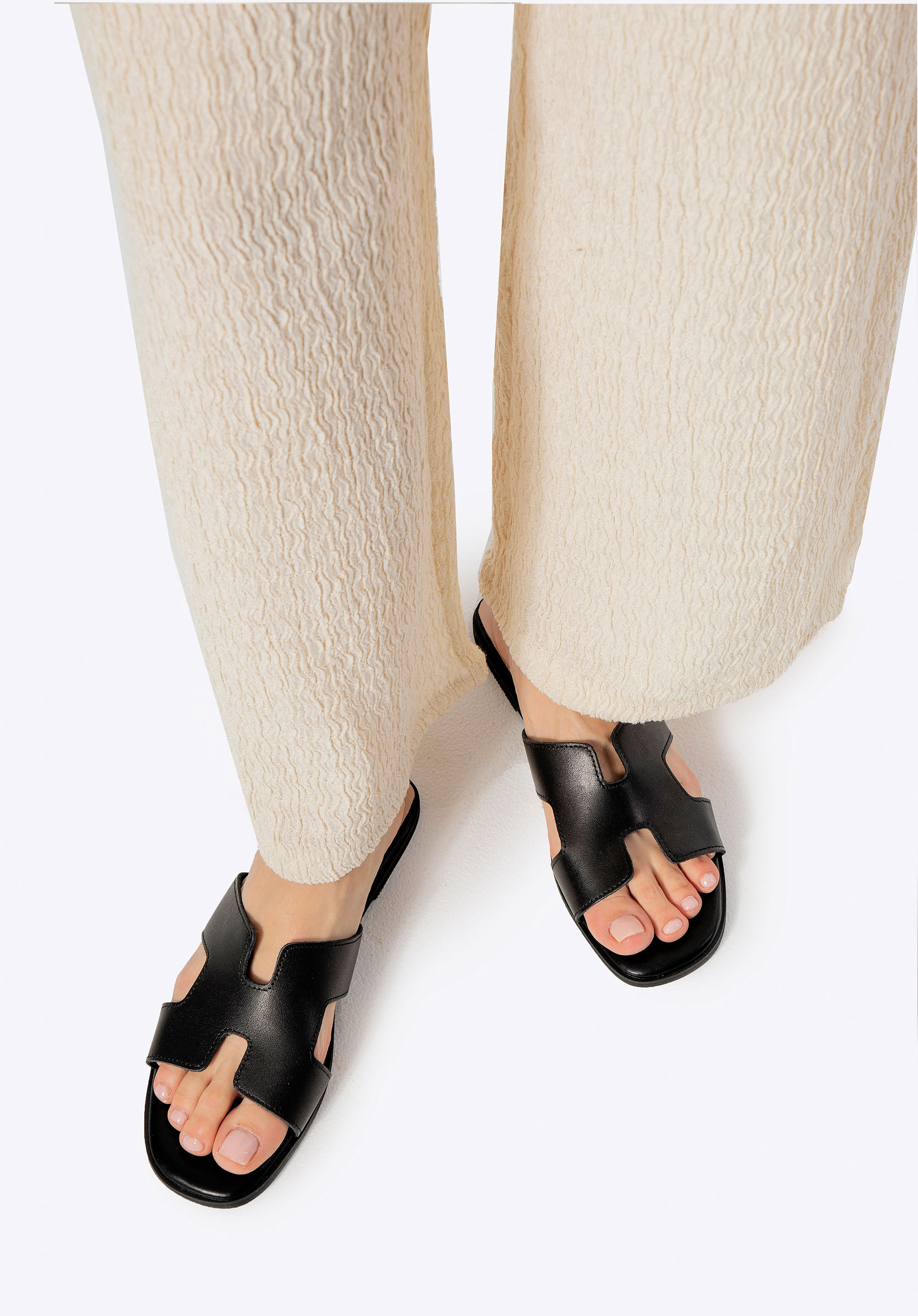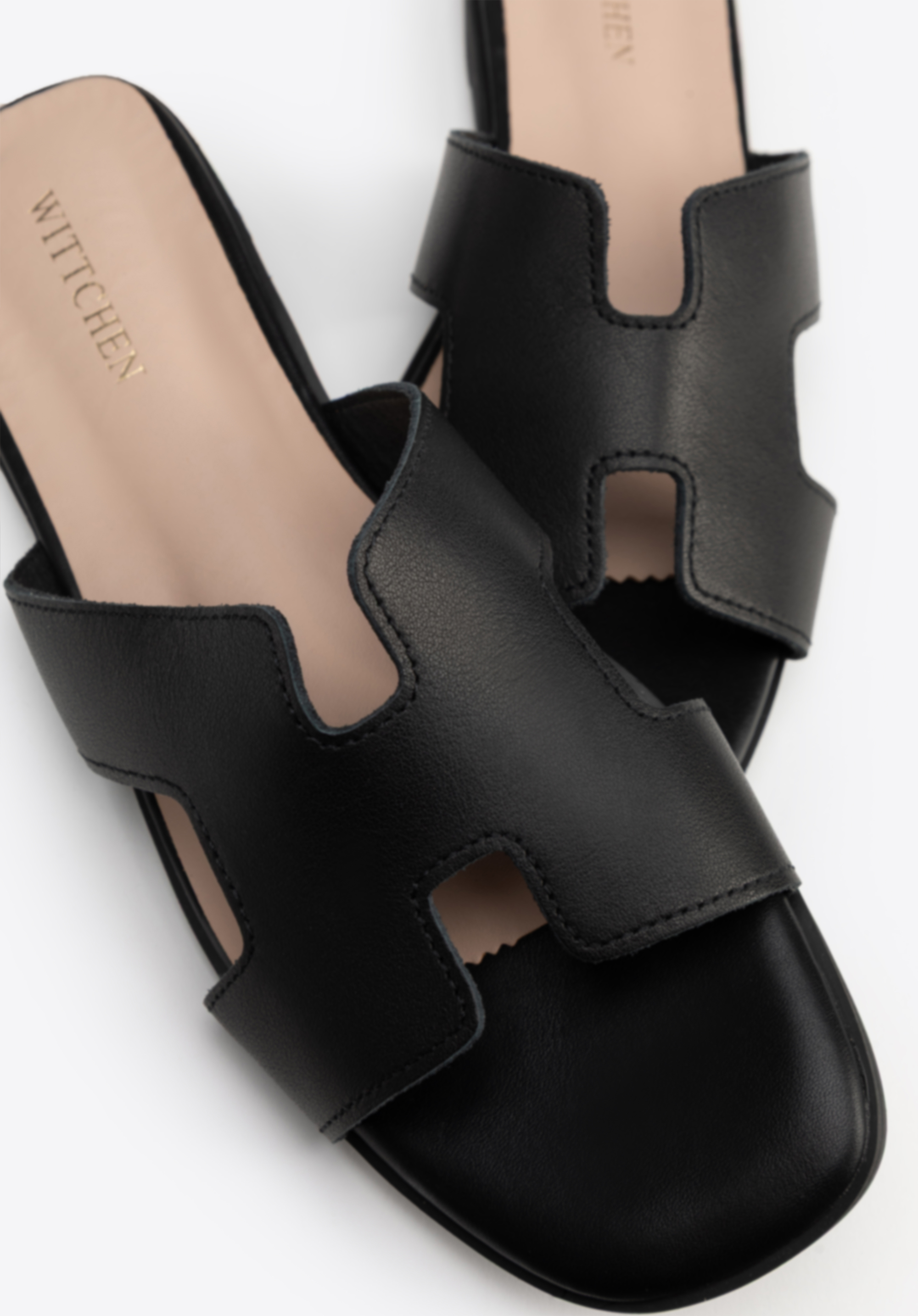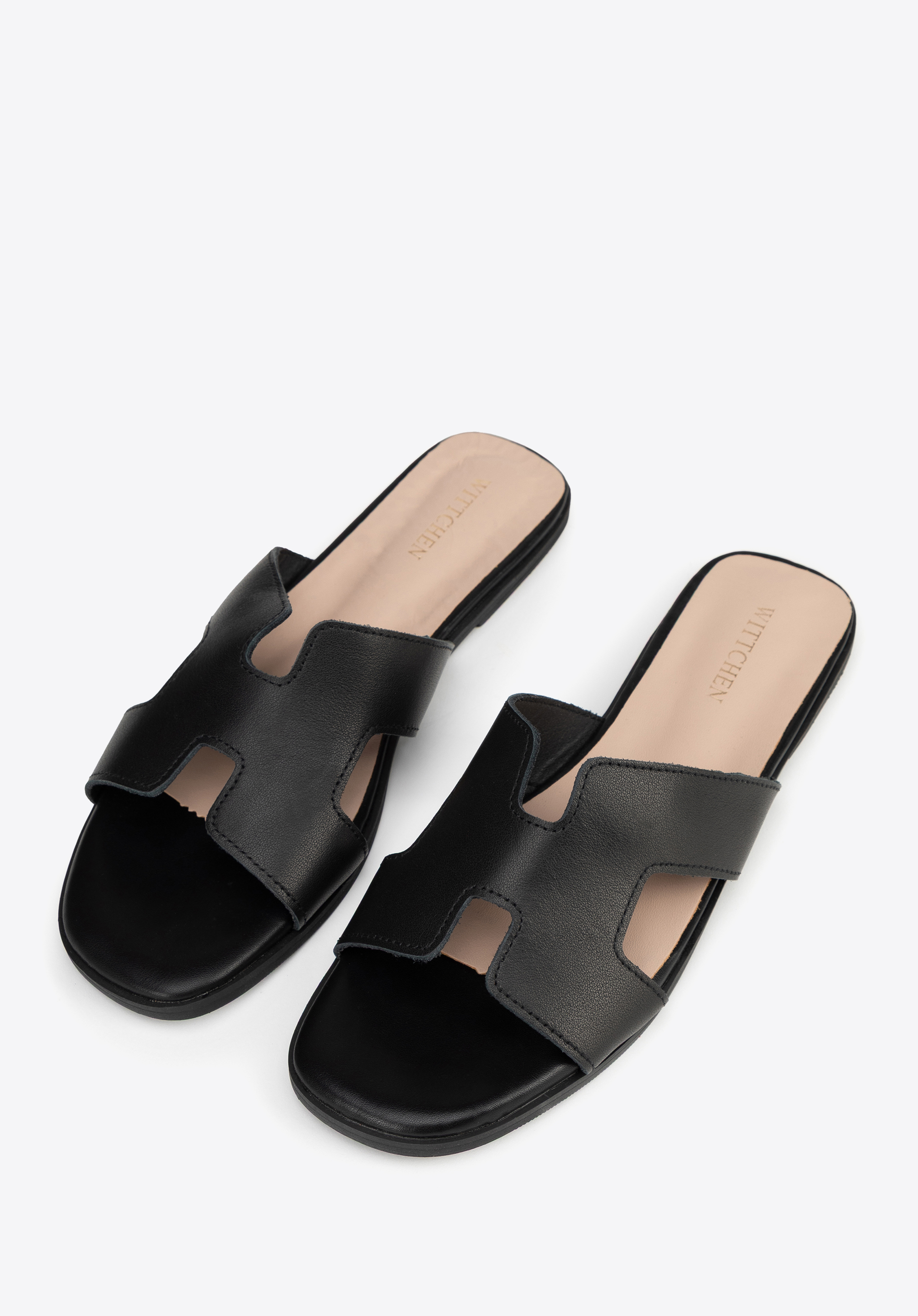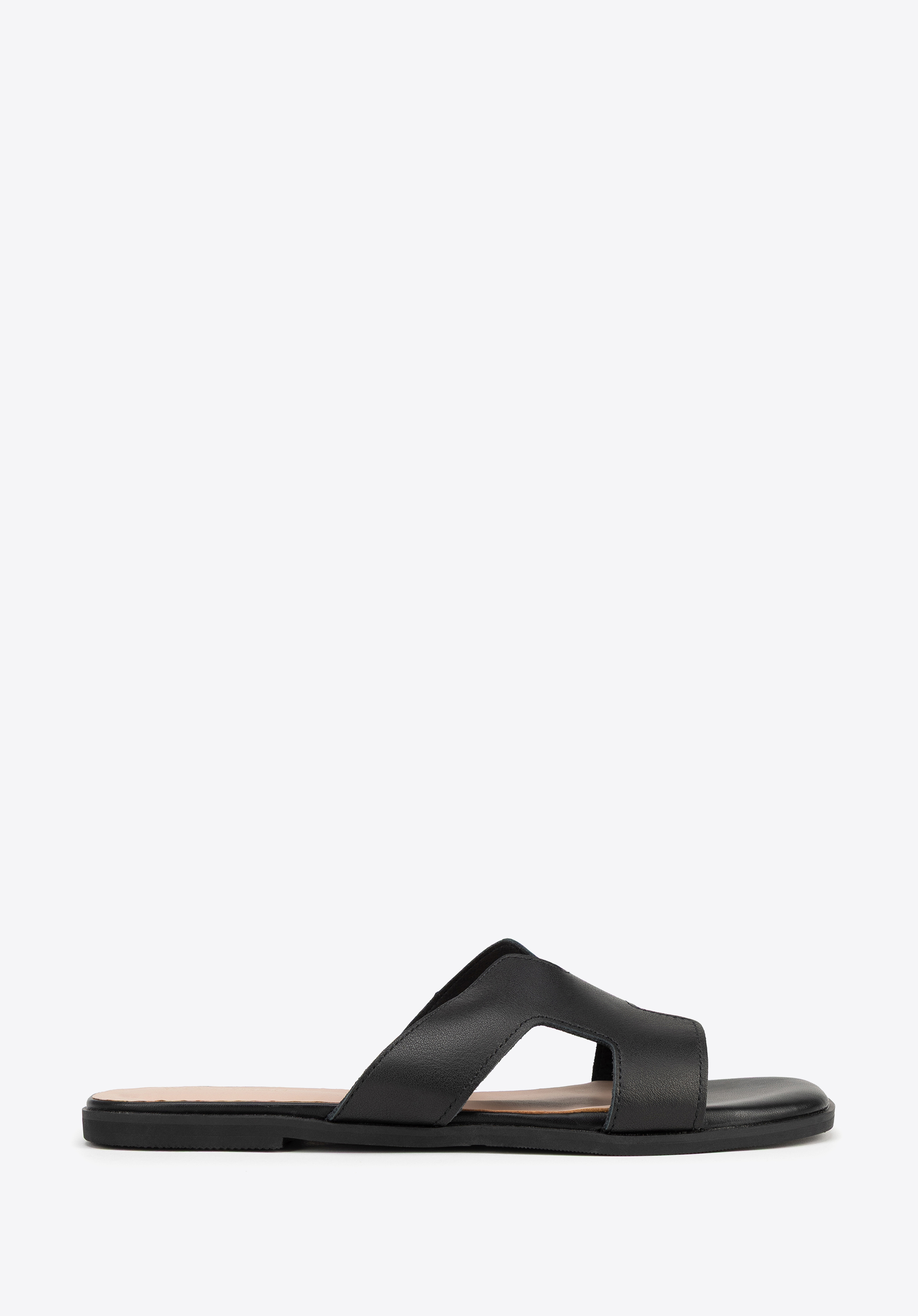 Geometryczna elegancja: Skórzane klapki z wycięciem w literę „H”