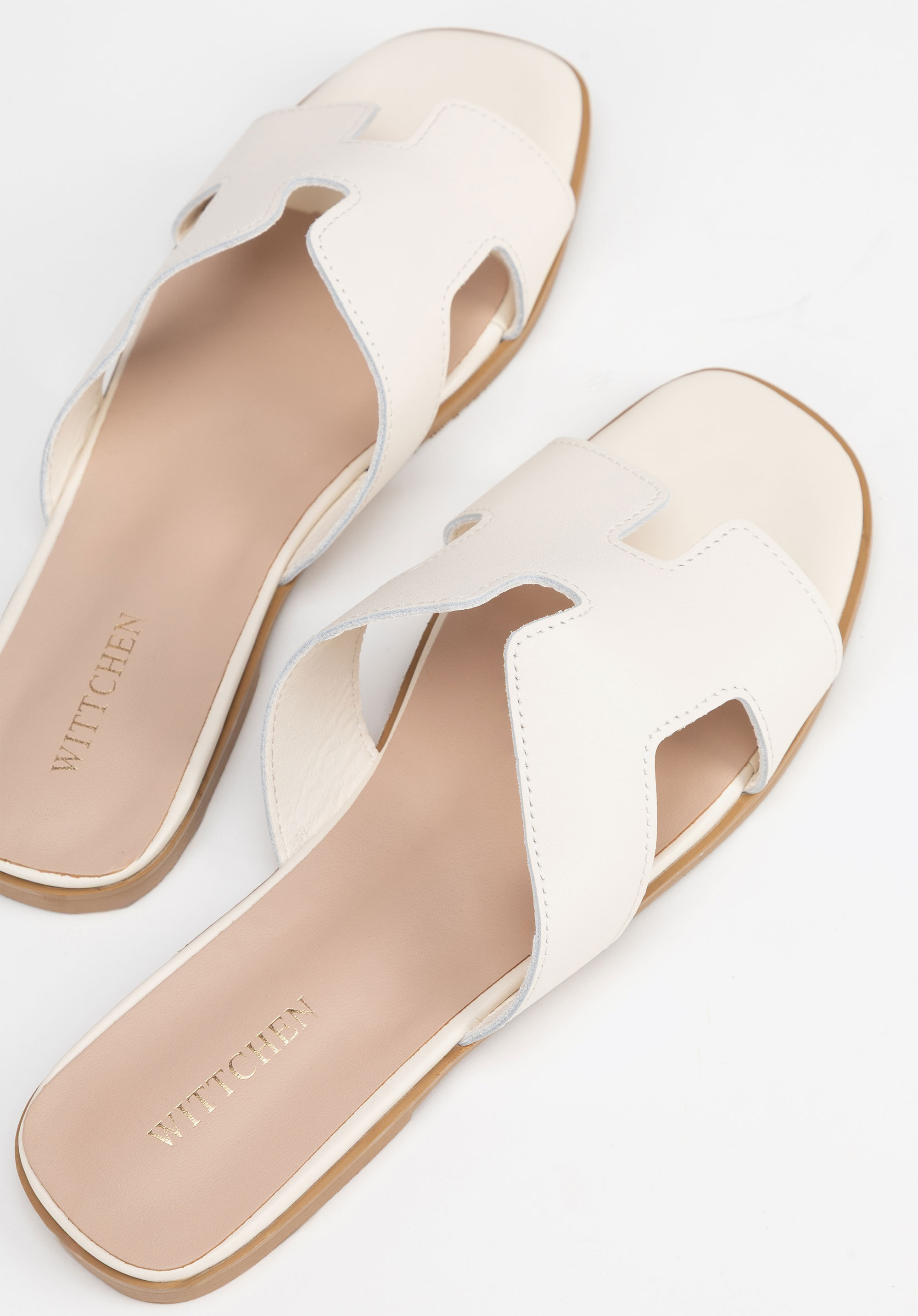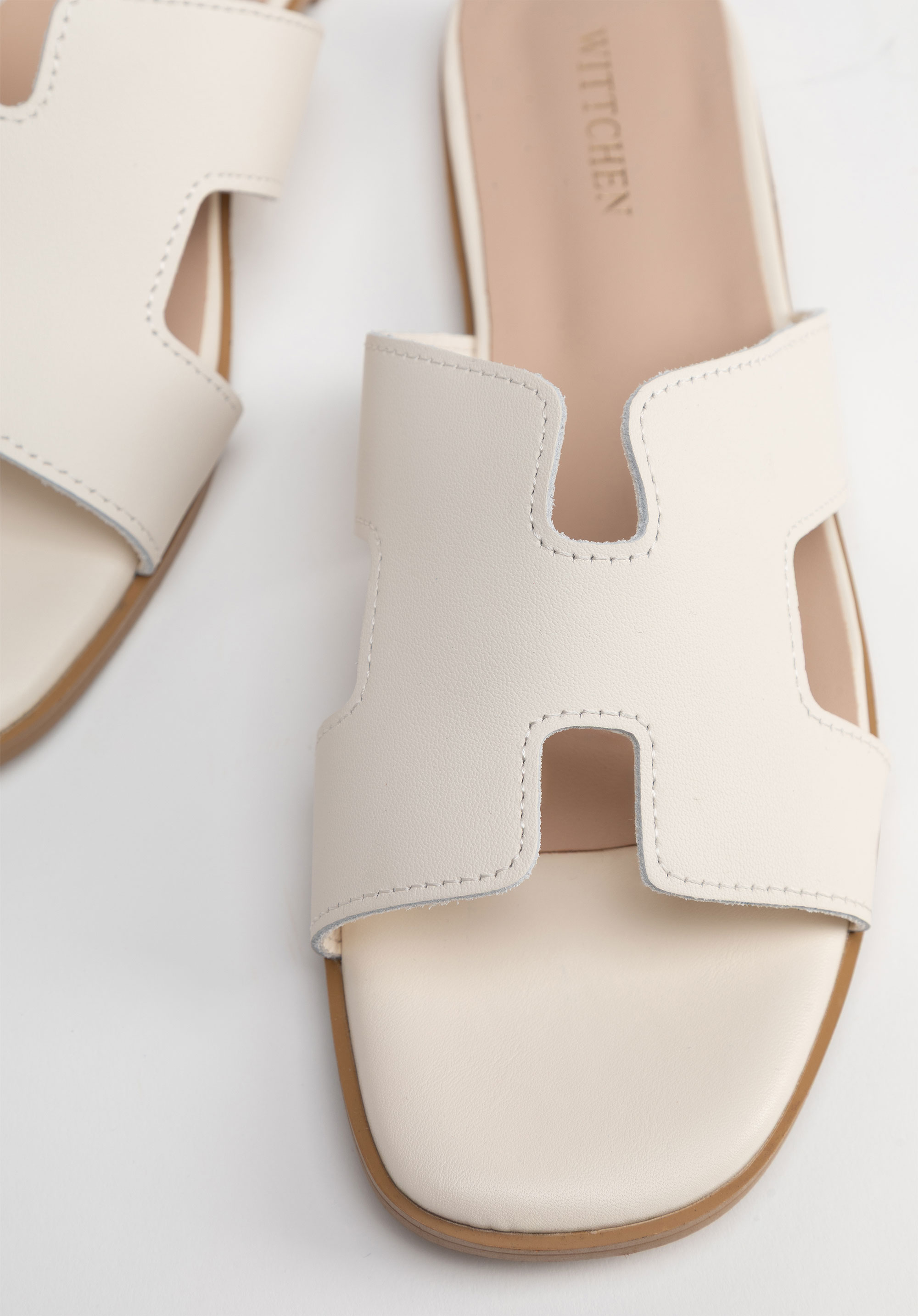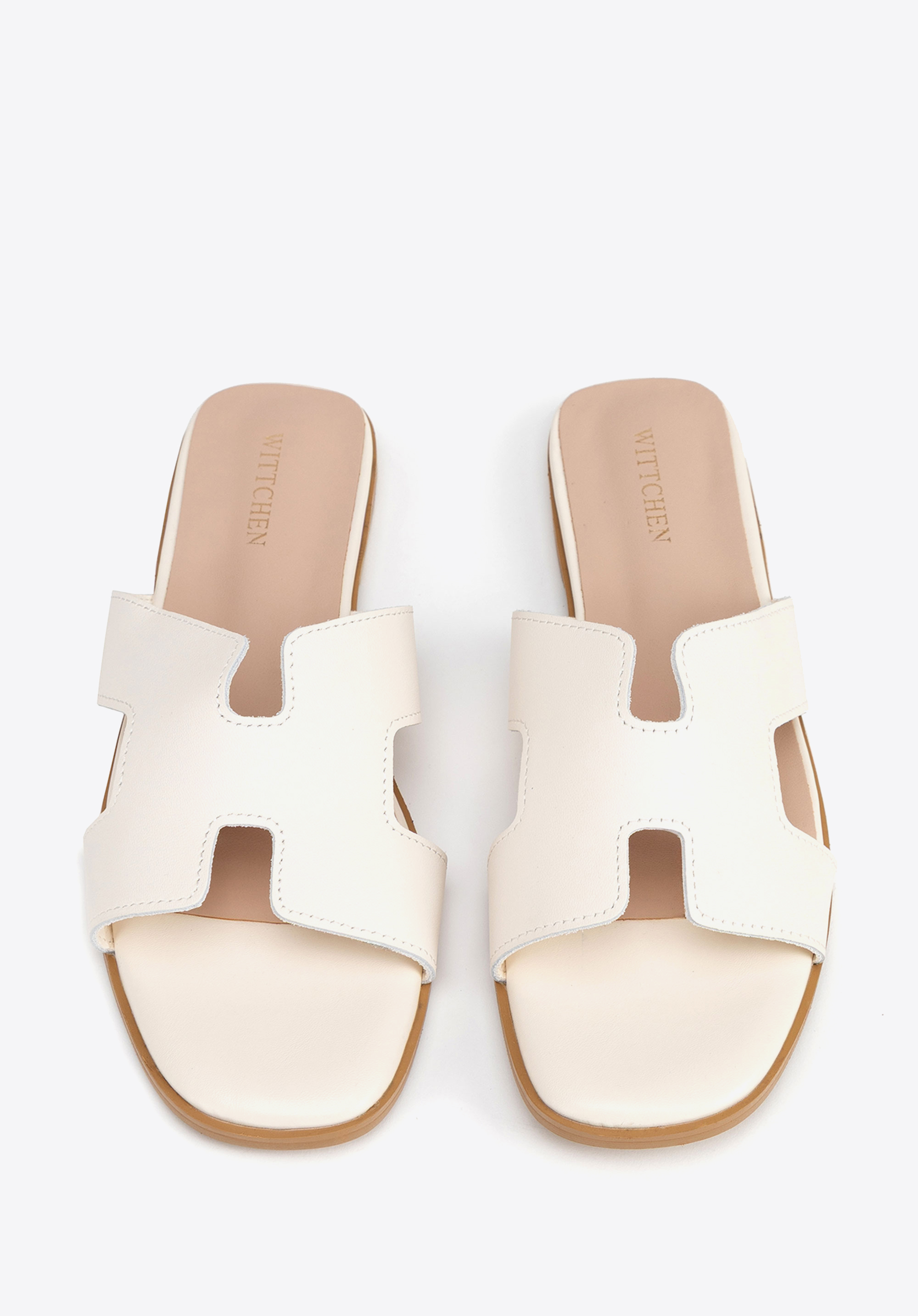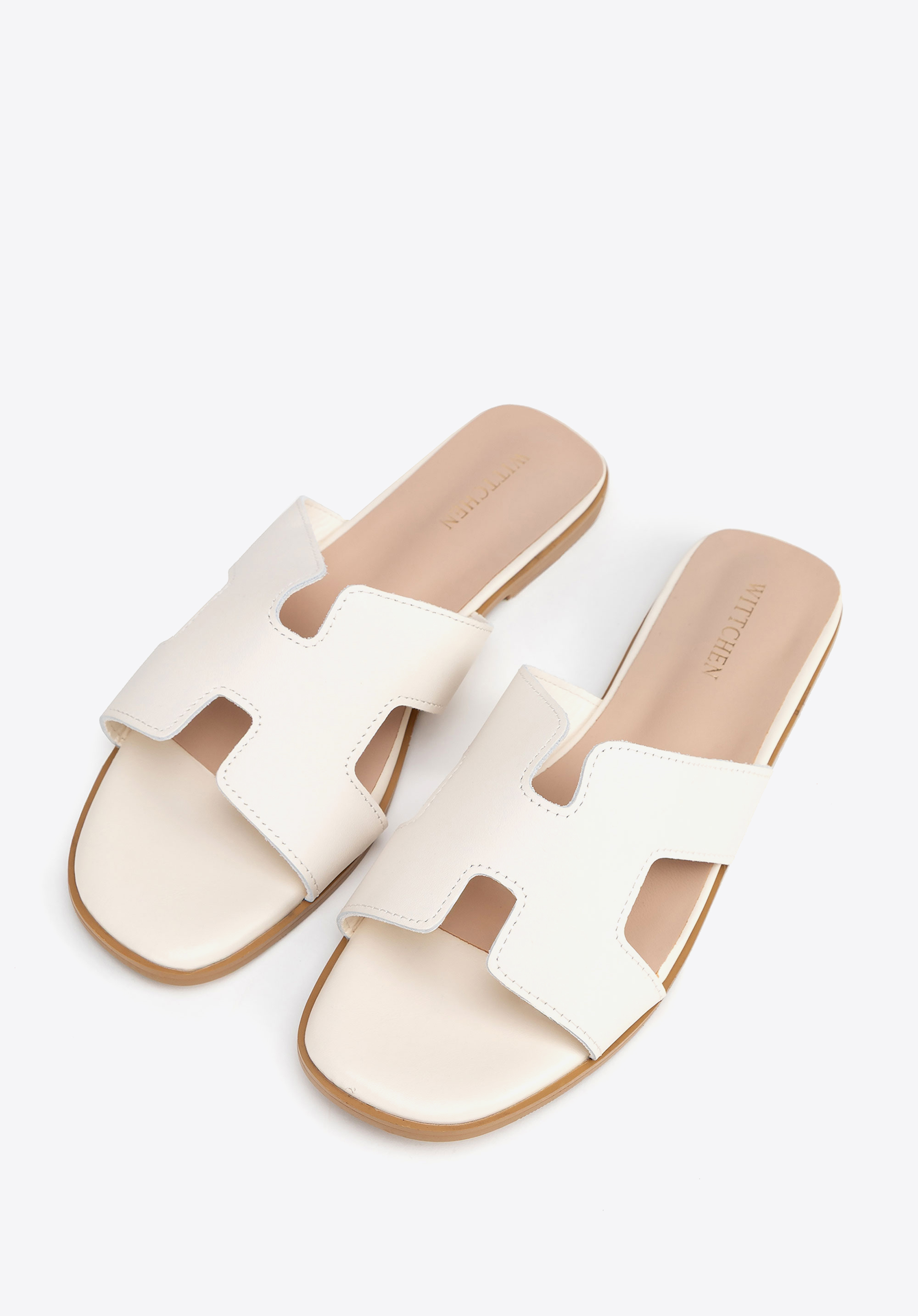 Geometryczna elegancja: Skórzane klapki z wycięciem w literę „H”