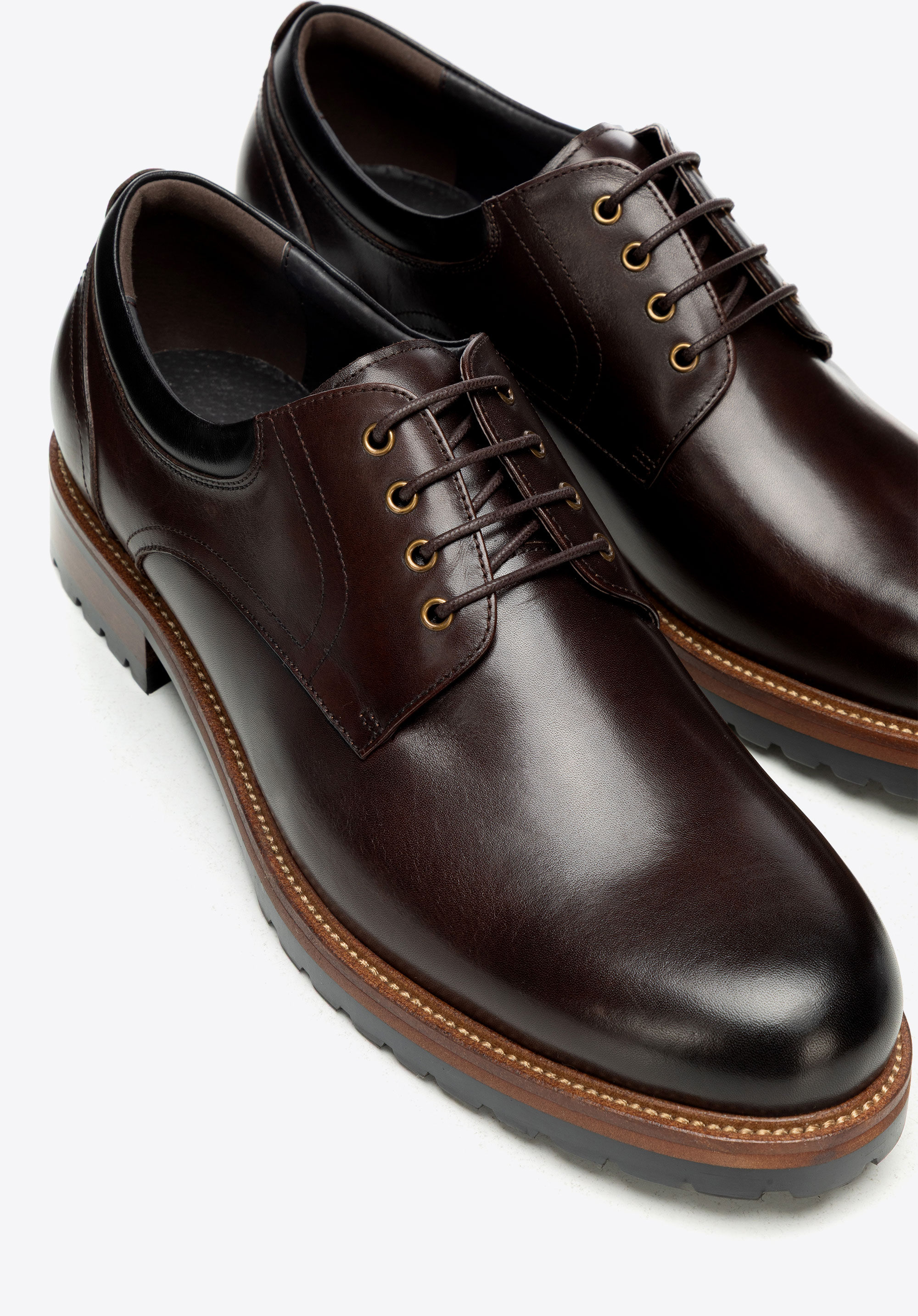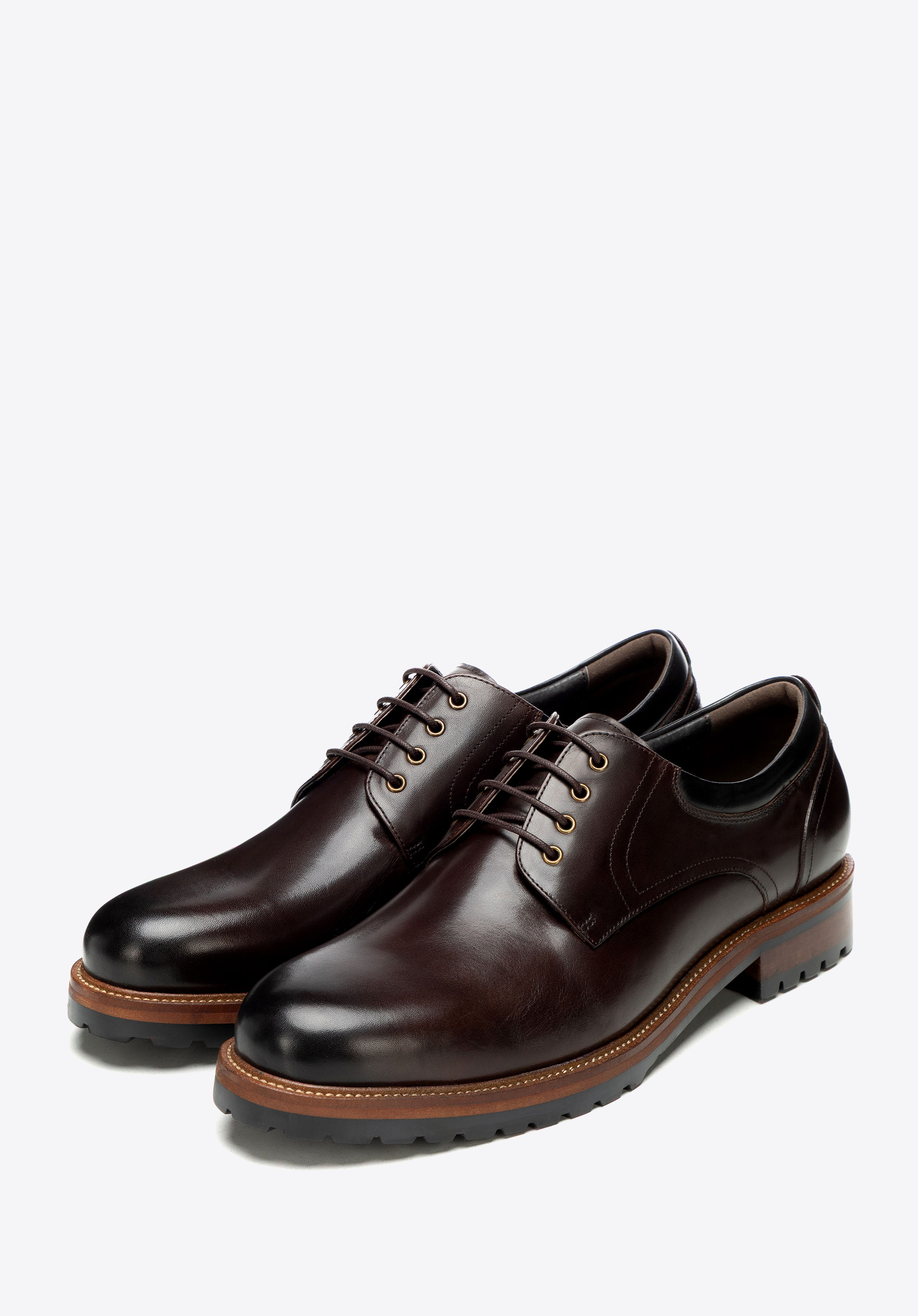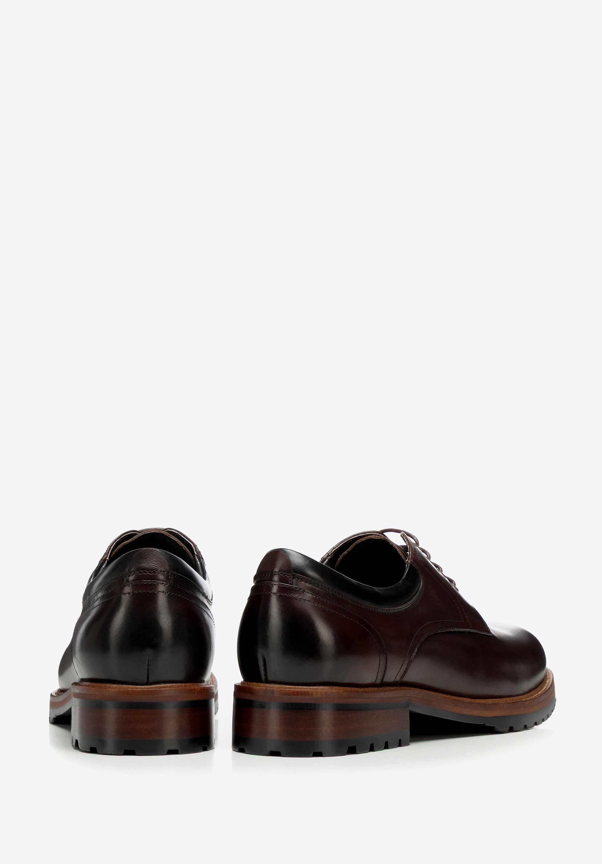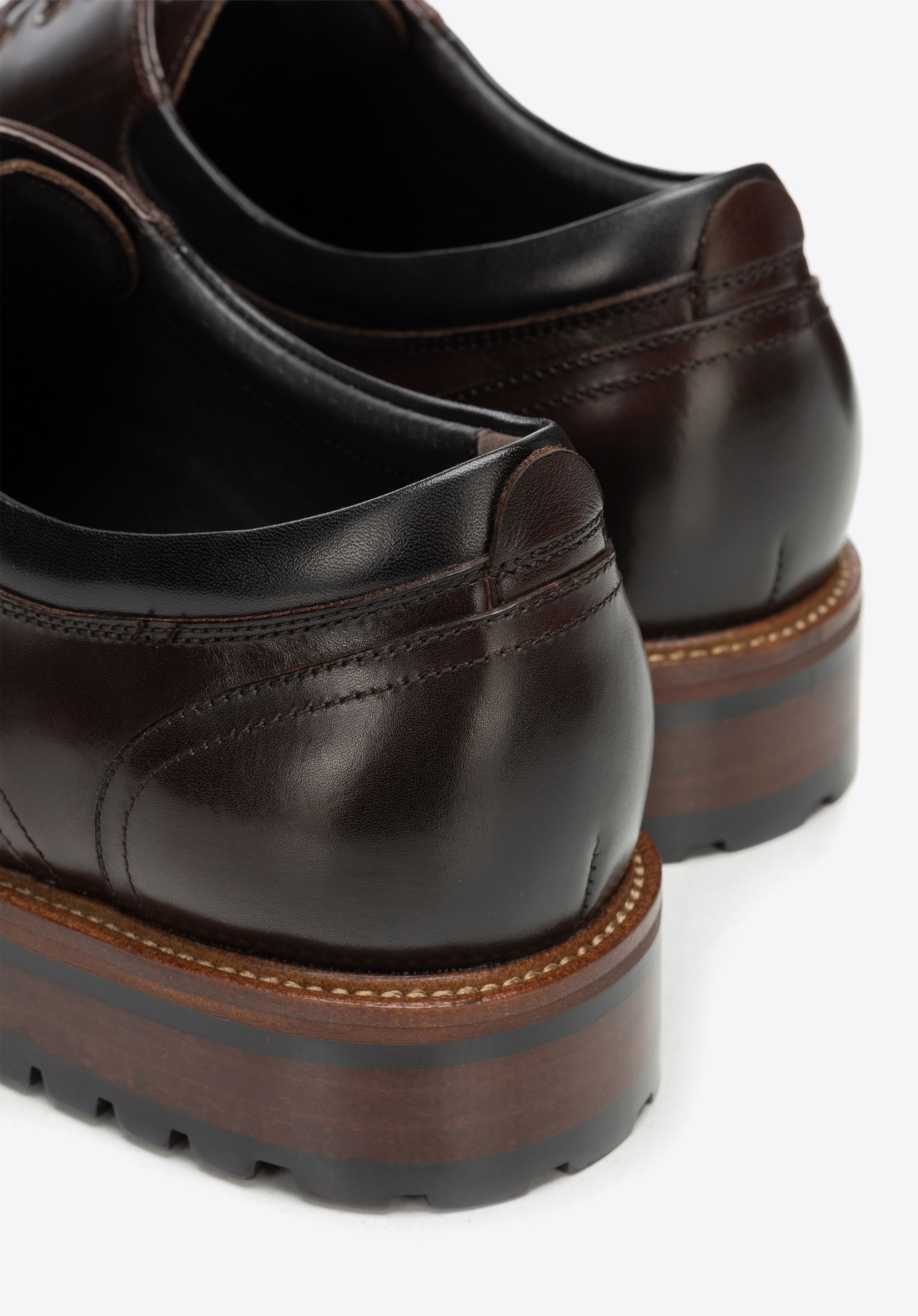 Skórzane półbuty na podeszwie track sprawdzą się w biurze i w drodze na spotkania, gdy elegancki dress code wymaga pewnego kroku także w gorszą pogodę. Naturalna skóra bydlęca, skórzana wkładka i wyrazista podeszwa track łączą dopracowany wygląd z komfortem oraz stabilnością na różnych nawierzchniach.
