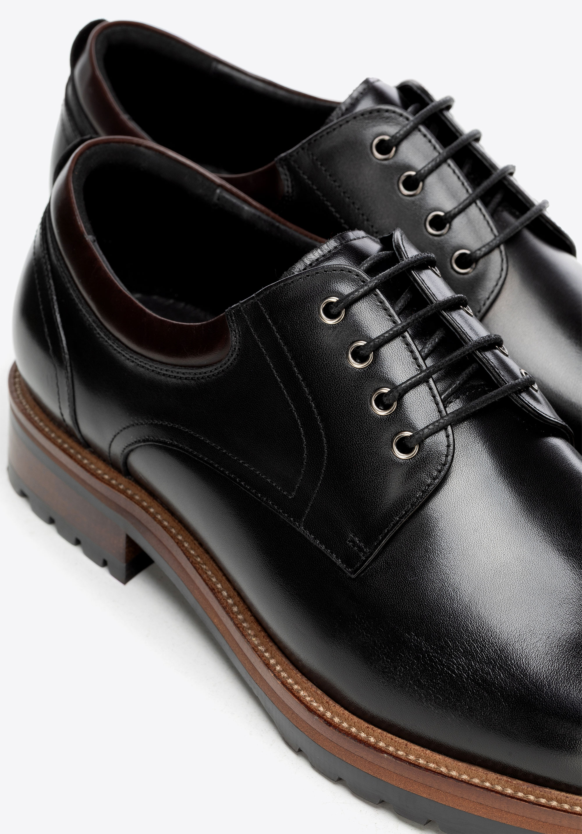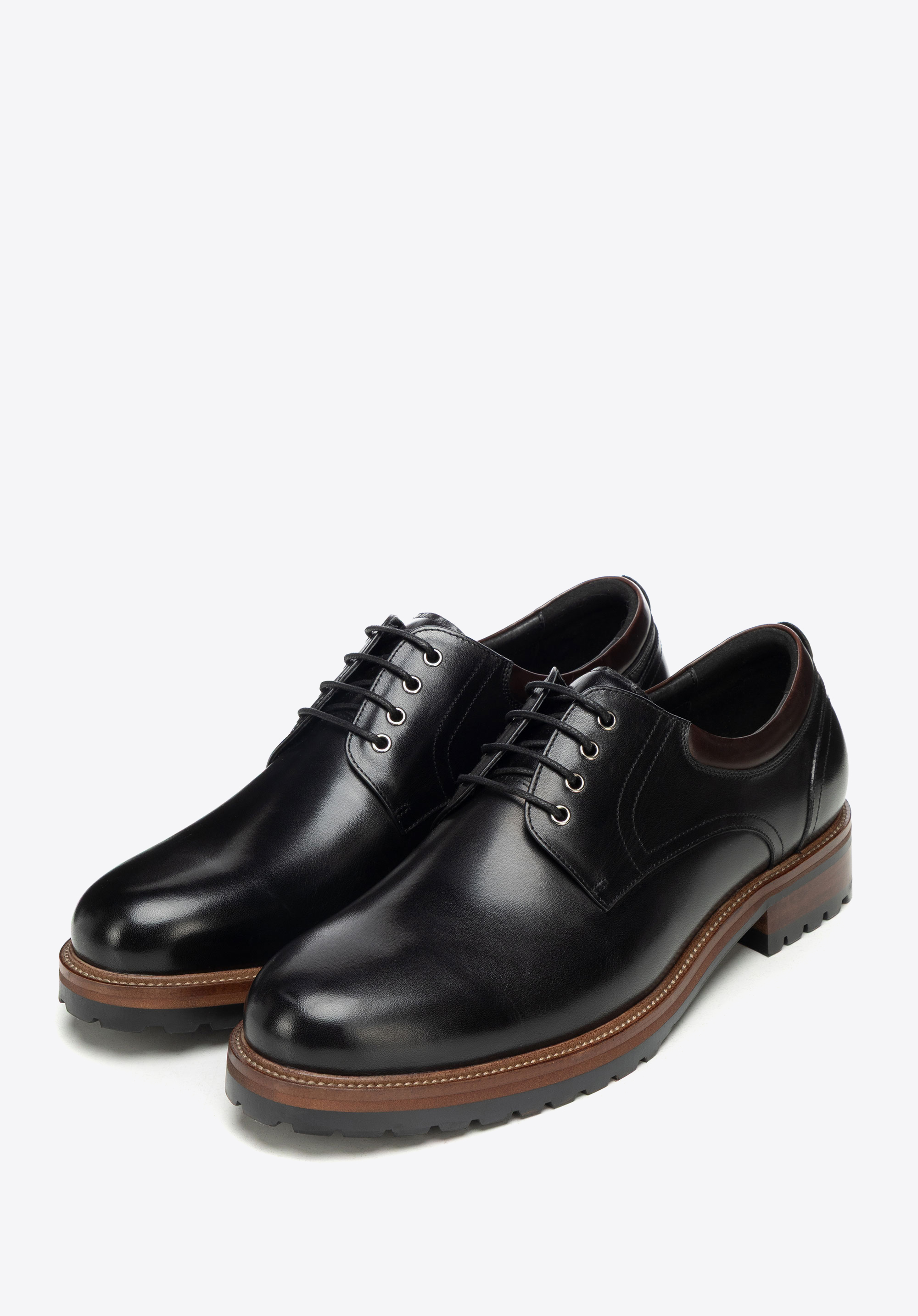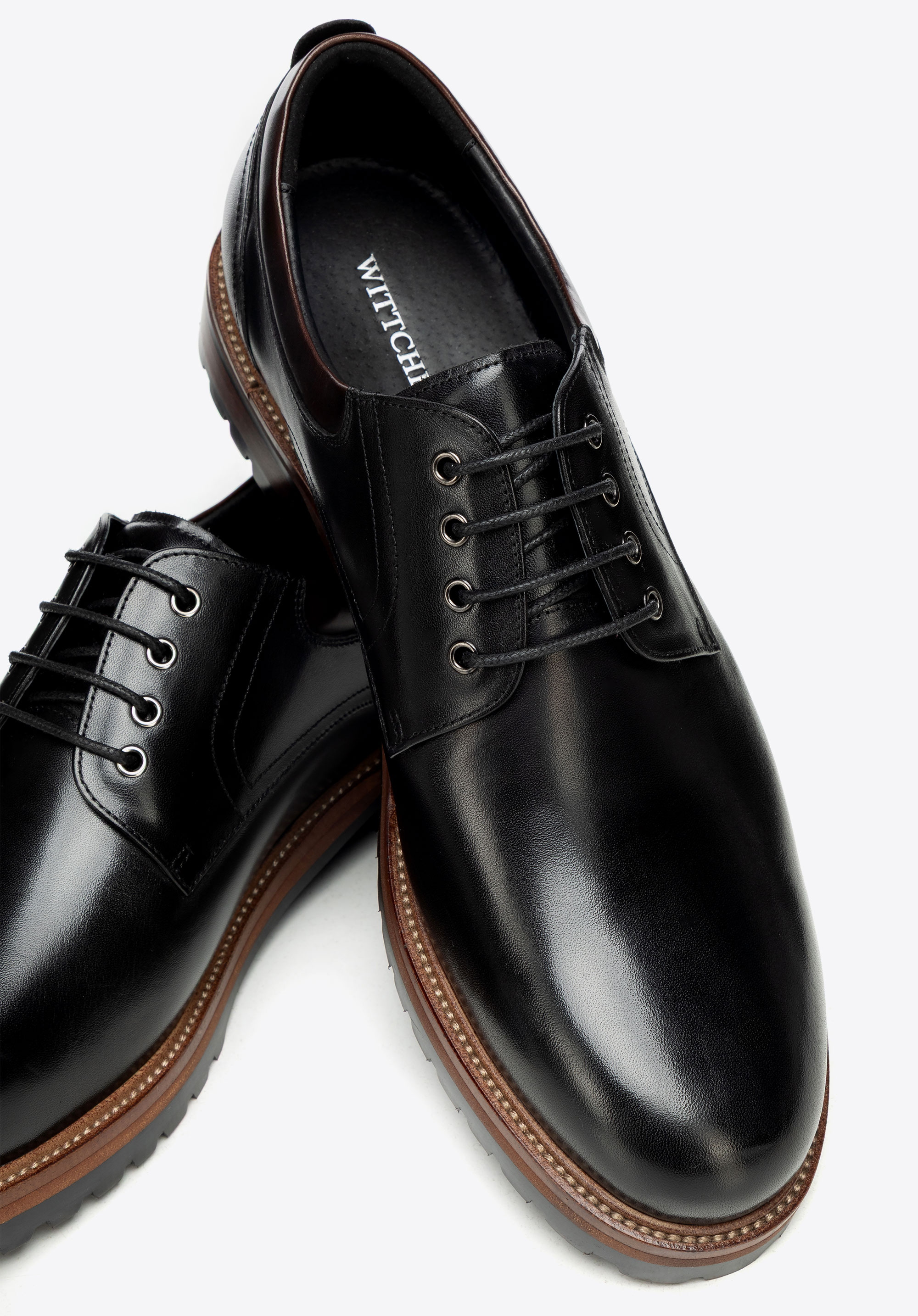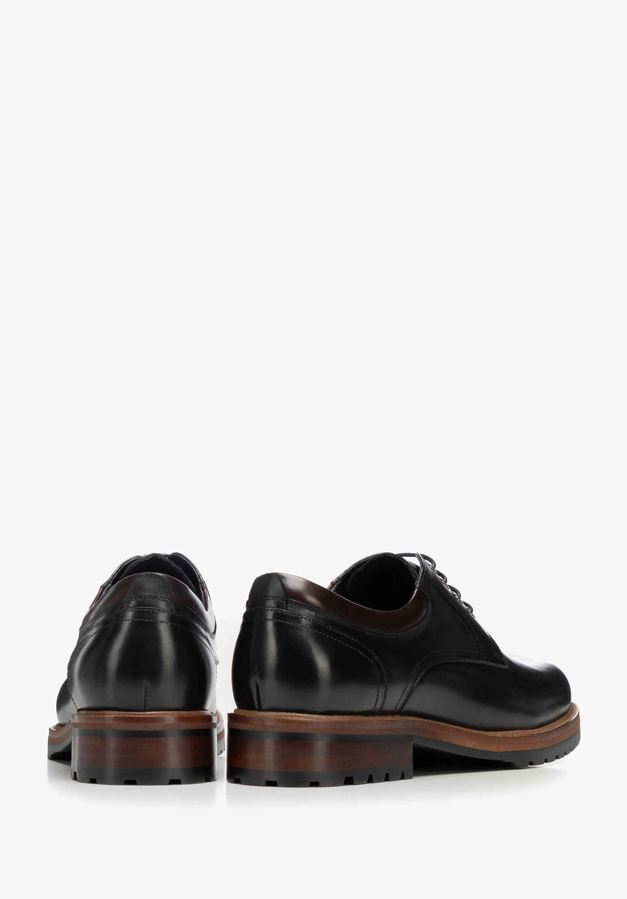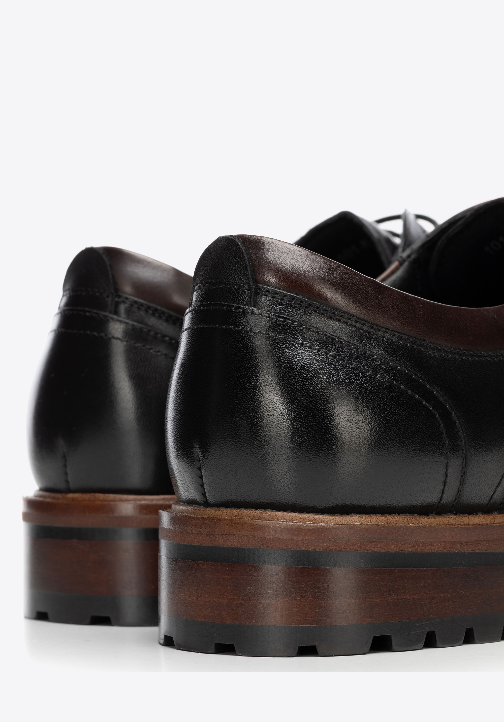Skórzane półbuty na podeszwie track sprawdzą się w biurze i w drodze na spotkania, gdy elegancki dress code wymaga pewnego kroku także w gorszą pogodę. Naturalna skóra bydlęca, skórzana wkładka i wyrazista podeszwa track łączą dopracowany wygląd z komfortem oraz stabilnością na różnych nawierzchniach.