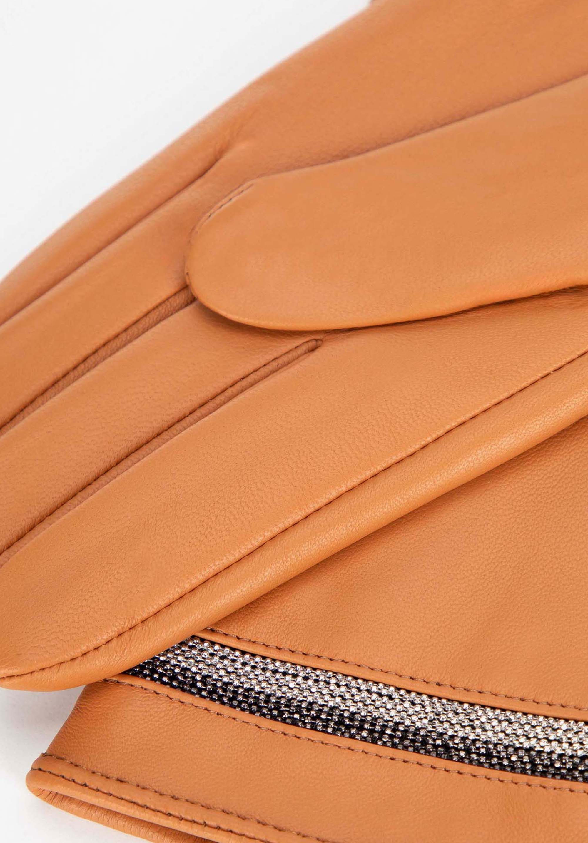 Te eleganckie damskie rękawiczki zostały wykonane z najwyższej jakości owczej skóry naturalnej, gwarantując nie tylko wyjątkowy styl, ale także trwałość i komfort użytkowania. Ocieplane wnętrze, niezwykle przyjemne w dotyku, zapewnia ciepło nawet w najchłodniejsze dni. Delikatne, tłoczone logo producenta subtelnie dodaje klasy, a elastyczny mankiet gwarantuje idealne dopasowanie do każdej dłoni.