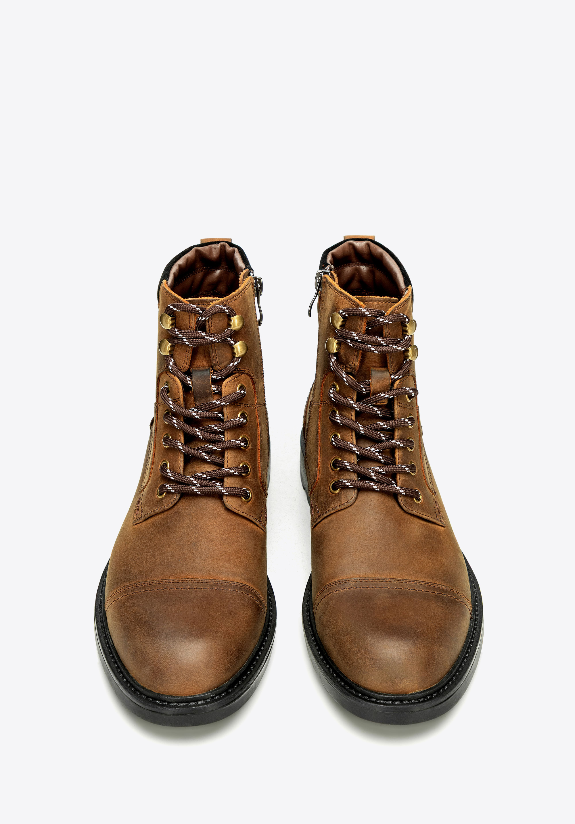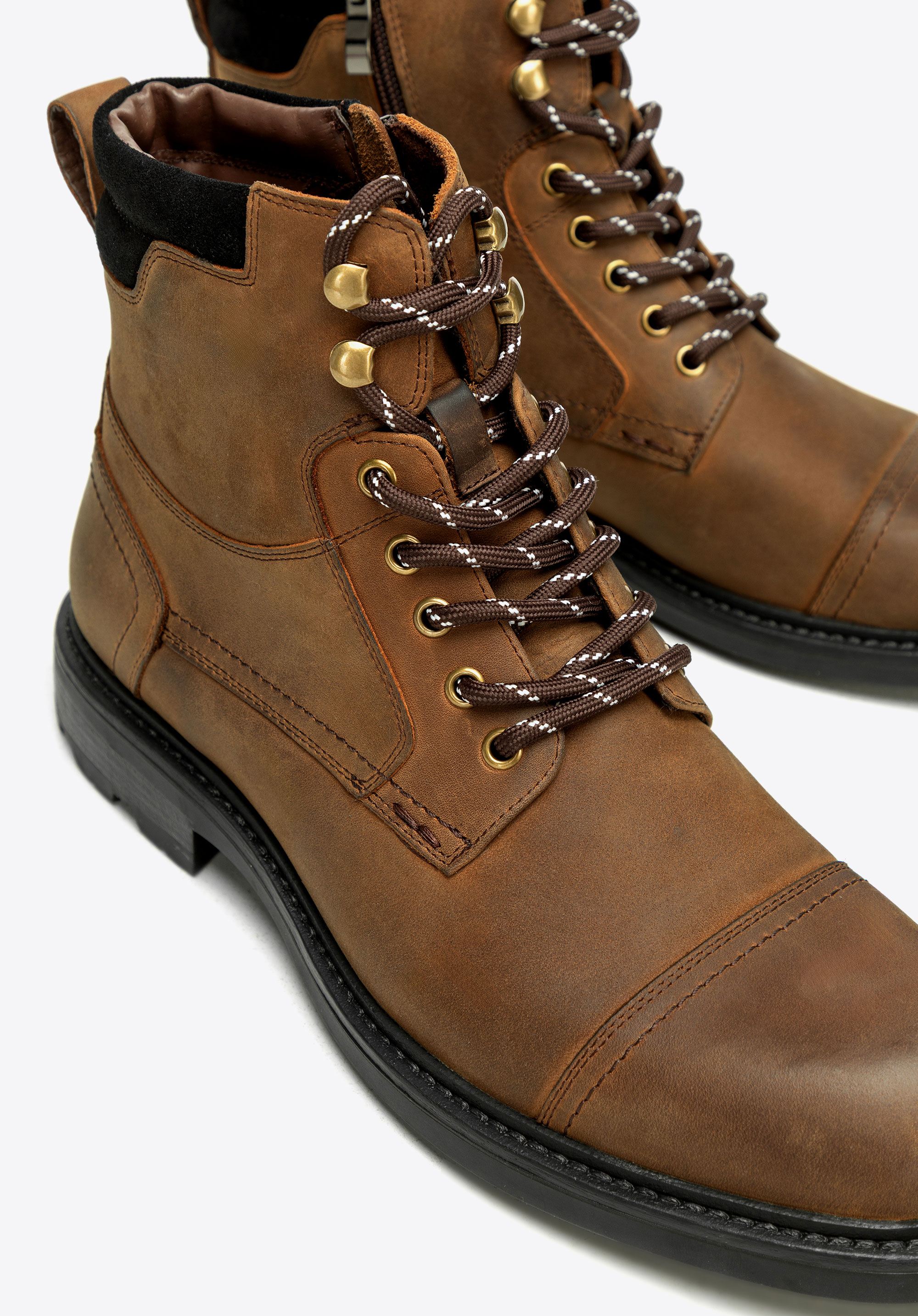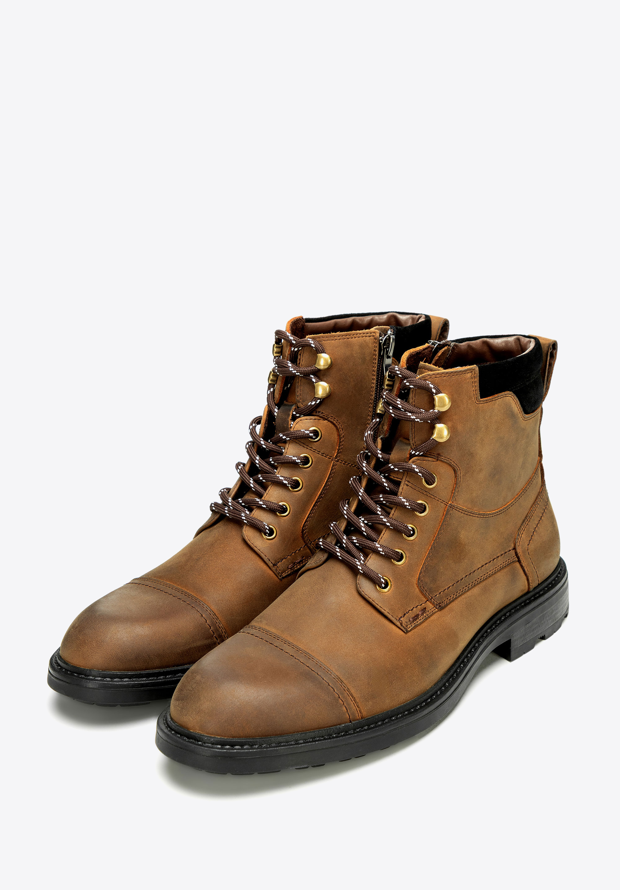 Postaw na połączenie klasyki z subtelnym, nowoczesnym akcentem. Te męskie trzewiki wykonane ze skóry naturalnej wyróżniają się trwałością, wygodą i eleganckim wyglądem. Migdałowy nosek podkreśla smukłą linię butów i chroni palce, a starannie zaprojektowana konstrukcja gwarantuje komfort oraz stabilność – idealne zarówno w codziennym użytkowaniu, jak i w bardziej wymagających warunkach. Smukła cholewka wyposażona w praktyczny zamek po boku ułatwia szybkie zakładanie i zdejmowanie, a kontrastowe sznurowanie podkreśla indywidualny styl.