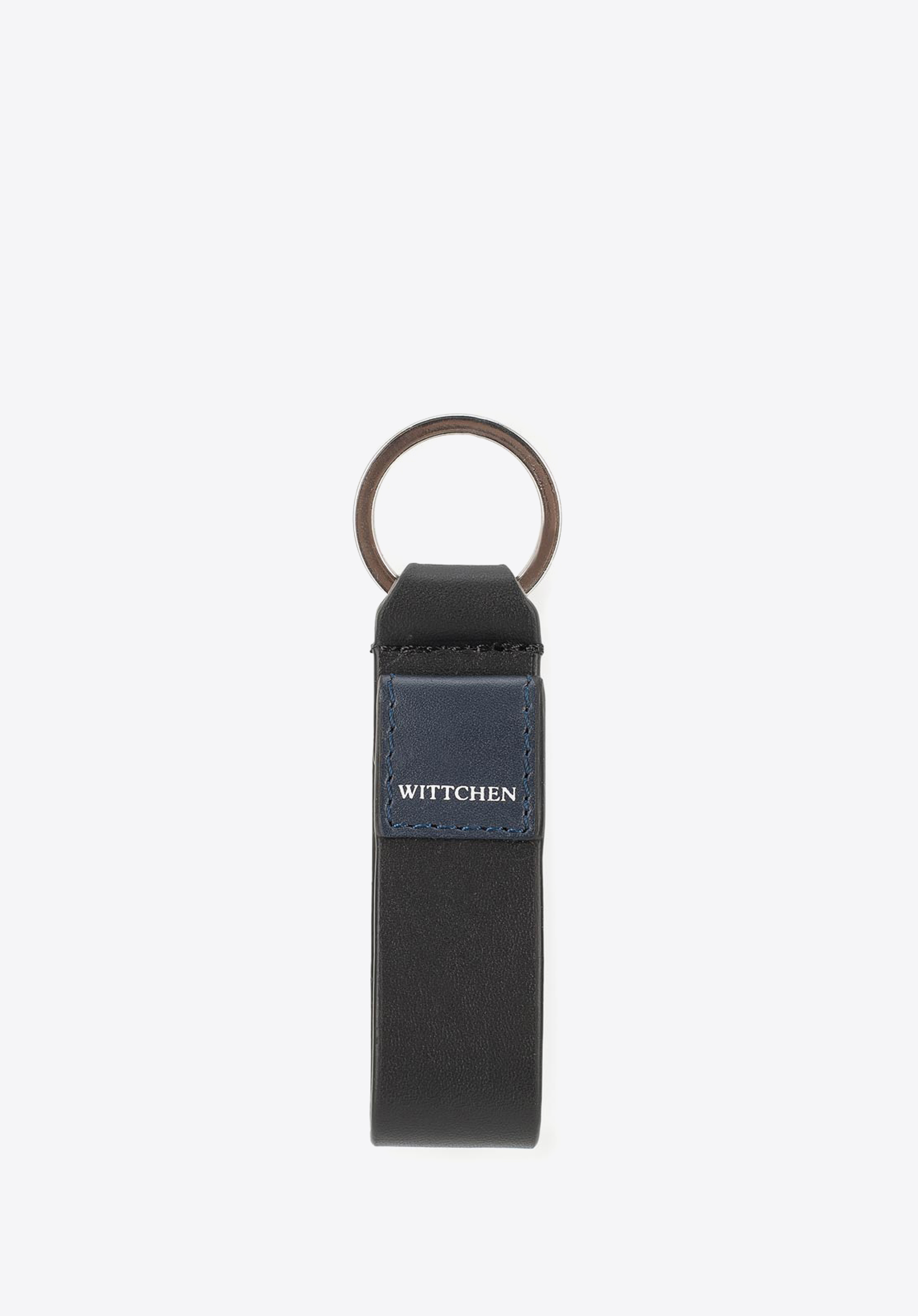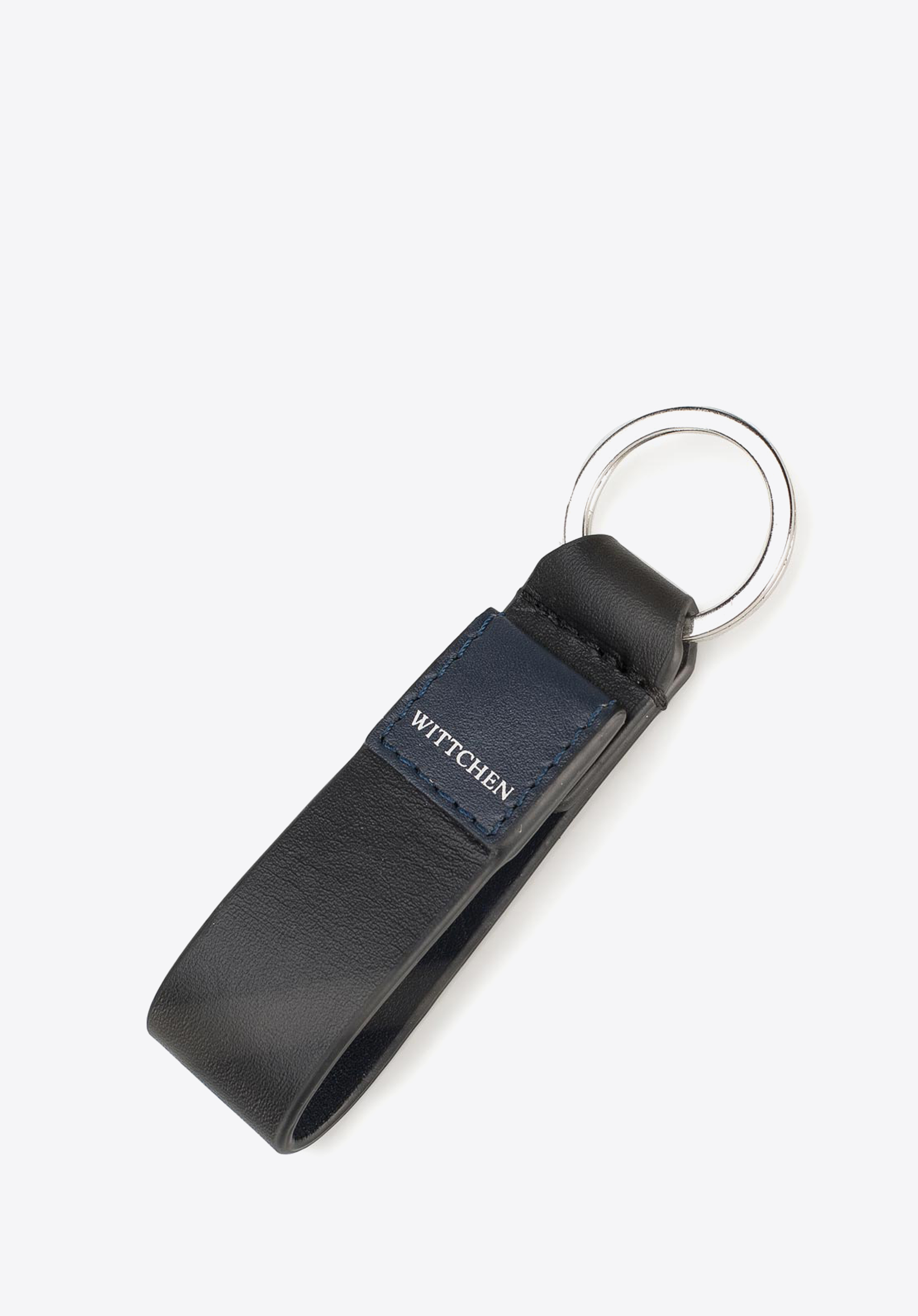 Brelok ze skóry zdobiony eleganckim, naszytym logo.